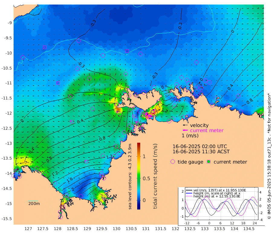 98cm/s 79T +4cm/s rms + 6cm/s 51T. Darwin_C1 52m 68cm/s 92T +4cm/s rms + 7cm/s -161T. Darwin_CW1 22m 59cm/s 70T +4cm/s rms + 8cm/s 61T. Darwin_CW2 34m 70cm/s 47T +3cm/s rms + 9cm/s 98T. Darwin_CW3 22m 97cm/s 90T +5cm/s rms + 7cm/s 88T. Darwin_C3 56m 54cm/s 66T +2cm/s rms + 9cm/s -126T. Darwin_CTbW 22m 6cm/s -12T +9cm/s rms + 2cm/s -110T. NWSLYN 196m 25cm/s -70T +1cm/s rms + 1cm/s -47T. DARBGF 30m 6cm/s -78T +7cm/s rms + 2cm/s -137T. ITFTIS 464m 10cm/s -52T +9cm/s rms + 1cm/s 74T. ITFMHB 146m 25cm/s -47T +4cm/s rms + 1cm/s -134T. ITFJBG 61m 30cm/s -57T +6cm/s rms + 4cm/s 121T. ITFFTB 108m 42cm/s -48T +4cm/s rms + 3cm/s 80T. NRSDAR 19m 67cm Carronade Island 72cm Guy Point 77cm Napier Broome Bay 110cm Lesueur Island 167cm Reveley Island 124cm Rocky Island 257cm Cape Domett 230cm Lacrosse Island 299cm Adolphus Island 314cm Pender Point 330cm Wyndham 23cm The Boxers 1cm Unnamed Shoal -14cm Loxton Shoal 243cm Pelican Island 0cm Calder Shoal -23cm Evans Shoal 365cm Quoin Island 205cm Port Keats 180cm Jones Point 361cm Catfish Island 117cm Cape Scott Offshore 39cm Cape Ford 120cm Anson Bay -26cm Goodrich Bank 94cm Peron Island North 92cm Point Jenny 90cm Native Point 96cm Fish Reef 107cm Tapa Bay 21cm Point Fawcett (Offshore) 126cm Burge Point 83cm Munkunuwa 73cm Beagle A 115cm Parsons Bank 121cm Fenton Patches -20cm Lynedoch Bank 129cm Hancox Shoal Area 139cm Nightcliff 144cm Darwin 119cm Charles Point Patches 142cm Glyde Point 180cm Chambers Bay 178cm Point Stuart 136cm Cape Hotham 168cm Christine Reef 200cm West Alligator Head 218cm East Field Island 137cm Two Hills Bay 65cm Newby Shoal 138cm Camp Point 104cm Medina Inlet South 6cm South Barlow Point -8cm St. Asaph Bay -30cm Cape Van Dieman -26cm Snake Bay -19cm Cache Point -16cm Echo Shoal -1cm Point Jahleel (Off) 48cm Cape Don -3cm Port Essington -4cm Smith Point - West -6cm NW Peacock Island -12cm North Of Jones Shoal -4cm Peacock Island 2cm Point David -7cm D'urville Point -5cm Money Shoal 5cm Copeland Island 13cm Cape Cockburn 8cm One Tree Point 13cm Hogmany Shoal 12cm New Year Island - West 13cm Grant Island 27cm Aurari Bay 50cm Cuthbert Point 30cm North Goulburn Island 66cm Paxie Shoal 79cm Entrance Island 100cm Yabooma Island