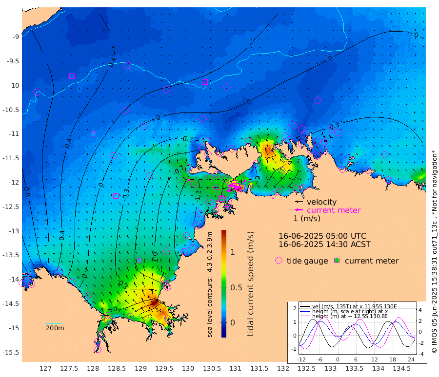 152cm/s -102T +4cm/s rms + 6cm/s 51T. Darwin_C1 52m 98cm/s -89T +4cm/s rms + 7cm/s -161T. Darwin_CW1 22m 73cm/s -109T +4cm/s rms + 8cm/s 61T. Darwin_CW2 34m 59cm/s -126T +3cm/s rms + 9cm/s 98T. Darwin_CW3 22m 82cm/s -92T +5cm/s rms + 7cm/s 88T. Darwin_C3 56m 82cm/s -116T +2cm/s rms + 9cm/s -126T. Darwin_CTbW 22m 4cm/s 139T +9cm/s rms + 2cm/s -110T. NWSLYN 196m 45cm/s -90T +1cm/s rms + 1cm/s -47T. DARBGF 30m 7cm/s 16T +7cm/s rms + 2cm/s -137T. ITFTIS 464m 15cm/s 15T +9cm/s rms + 1cm/s 74T. ITFMHB 146m 34cm/s -17T +4cm/s rms + 1cm/s -134T. ITFJBG 61m 23cm/s -22T +6cm/s rms + 4cm/s 121T. ITFFTB 108m 38cm/s -65T +4cm/s rms + 3cm/s 80T. NRSDAR 19m 139cm Carronade Island 141cm Guy Point 155cm Napier Broome Bay 68cm Lesueur Island -14cm Reveley Island 21cm Rocky Island -14cm Cape Domett -12cm Lacrosse Island 11cm Adolphus Island 109cm Pender Point 149cm Wyndham 25cm The Boxers -8cm Unnamed Shoal 56cm Loxton Shoal -53cm Pelican Island 16cm Calder Shoal 27cm Evans Shoal 31cm Quoin Island -85cm Port Keats -85cm Jones Point 121cm Catfish Island -80cm Cape Scott Offshore -118cm Cape Ford -102cm Anson Bay 6cm Goodrich Bank -96cm Peron Island North -99cm Point Jenny -99cm Native Point -102cm Fish Reef -113cm Tapa Bay -50cm Point Fawcett (Offshore) -114cm Burge Point -127cm Munkunuwa -85cm Beagle A -126cm Parsons Bank -111cm Fenton Patches 21cm Lynedoch Bank -113cm Hancox Shoal Area -123cm Nightcliff -116cm Darwin -103cm Charles Point Patches -51cm Glyde Point 11cm Chambers Bay 21cm Point Stuart -31cm Cape Hotham 7cm Christine Reef 28cm West Alligator Head 61cm East Field Island -2cm Two Hills Bay -24cm Newby Shoal 5cm Camp Point -108cm Medina Inlet South -52cm South Barlow Point -29cm St. Asaph Bay -1cm Cape Van Dieman -7cm Snake Bay 4cm Cache Point 77cm Echo Shoal -6cm Point Jahleel (Off) -16cm Cape Don -11cm Port Essington -19cm Smith Point - West -15cm NW Peacock Island 0cm North Of Jones Shoal -2cm Peacock Island -27cm Point David -23cm D'urville Point -1cm Money Shoal -29cm Copeland Island -33cm Cape Cockburn -19cm One Tree Point -23cm Hogmany Shoal -16cm New Year Island - West -23cm Grant Island -32cm Aurari Bay -27cm Cuthbert Point -29cm North Goulburn Island -17cm Paxie Shoal -29cm Entrance Island -27cm Yabooma Island