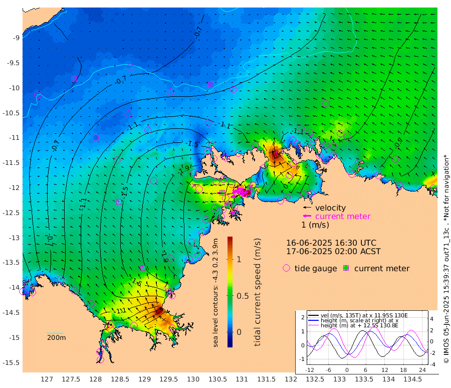 181cm/s -102T +4cm/s rms + 6cm/s 51T. Darwin_C1 52m 132cm/s -89T +4cm/s rms + 7cm/s -161T. Darwin_CW1 22m 98cm/s -108T +4cm/s rms + 8cm/s 61T. Darwin_CW2 34m 72cm/s -124T +3cm/s rms + 9cm/s 98T. Darwin_CW3 22m 128cm/s -91T +5cm/s rms + 7cm/s 88T. Darwin_C3 56m 100cm/s -116T +2cm/s rms + 9cm/s -126T. Darwin_CTbW 22m 9cm/s -47T +9cm/s rms + 2cm/s -110T. NWSLYN 196m 62cm/s -93T +1cm/s rms + 1cm/s -47T. DARBGF 30m 9cm/s -153T +7cm/s rms + 2cm/s -137T. ITFTIS 464m 8cm/s -38T +9cm/s rms + 1cm/s 74T. ITFMHB 146m 32cm/s -23T +4cm/s rms + 1cm/s -134T. ITFJBG 61m 27cm/s -52T +6cm/s rms + 4cm/s 121T. ITFFTB 108m 50cm/s -63T +4cm/s rms + 3cm/s 80T. NRSDAR 19m 14cm Carronade Island 15cm Guy Point 5cm Napier Broome Bay -47cm Lesueur Island -95cm Reveley Island -80cm Rocky Island -104cm Cape Domett -92cm Lacrosse Island -55cm Adolphus Island 21cm Pender Point 67cm Wyndham -111cm The Boxers -122cm Unnamed Shoal -70cm Loxton Shoal -115cm Pelican Island -108cm Calder Shoal -76cm Evans Shoal -22cm Quoin Island -183cm Port Keats -159cm Jones Point 73cm Catfish Island -172cm Cape Scott Offshore -285cm Cape Ford -195cm Anson Bay -96cm Goodrich Bank -189cm Peron Island North -205cm Point Jenny -208cm Native Point -205cm Fish Reef -213cm Tapa Bay -164cm Point Fawcett (Offshore) -223cm Burge Point -216cm Munkunuwa -194cm Beagle A -210cm Parsons Bank -209cm Fenton Patches -76cm Lynedoch Bank -187cm Hancox Shoal Area -202cm Nightcliff -216cm Darwin -220cm Charles Point Patches -117cm Glyde Point -15cm Chambers Bay 2cm Point Stuart -72cm Cape Hotham -31cm Christine Reef 15cm West Alligator Head 55cm East Field Island -38cm Two Hills Bay -175cm Newby Shoal -47cm Camp Point -215cm Medina Inlet South -161cm South Barlow Point -136cm St. Asaph Bay -103cm Cape Van Dieman -108cm Snake Bay -97cm Cache Point -31cm Echo Shoal -91cm Point Jahleel (Off) -94cm Cape Don -94cm Port Essington -94cm Smith Point - West -87cm NW Peacock Island -81cm North Of Jones Shoal -28cm Peacock Island -73cm Point David -92cm D'urville Point -76cm Money Shoal -67cm Copeland Island -92cm Cape Cockburn -77cm One Tree Point -82cm Hogmany Shoal -74cm New Year Island - West -78cm Grant Island -54cm Aurari Bay -55cm Cuthbert Point -67cm North Goulburn Island -44cm Paxie Shoal -27cm Entrance Island 11cm Yabooma Island