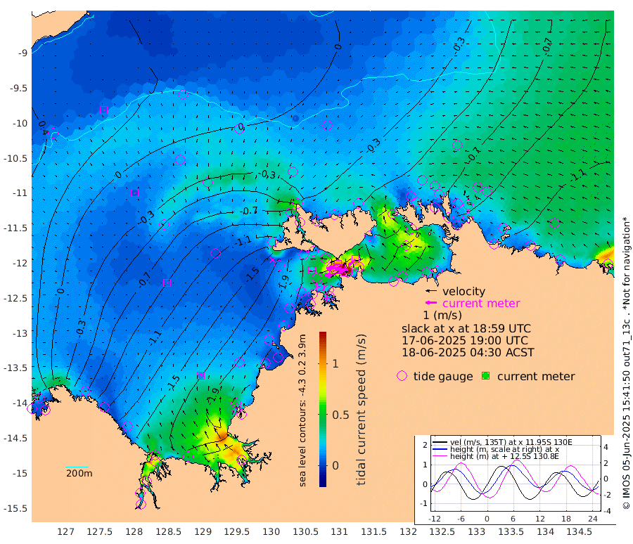 176cm/s -102T +4cm/s rms + 6cm/s 51T. Darwin_C1 52m 121cm/s -90T +4cm/s rms + 7cm/s -161T. Darwin_CW1 22m 89cm/s -107T +4cm/s rms + 8cm/s 61T. Darwin_CW2 34m 86cm/s -132T +3cm/s rms + 9cm/s 98T. Darwin_CW3 22m 134cm/s -91T +5cm/s rms + 7cm/s 88T. Darwin_C3 56m 98cm/s -115T +2cm/s rms + 9cm/s -126T. Darwin_CTbW 22m 5cm/s -60T +9cm/s rms + 2cm/s -110T. NWSLYN 196m 27cm/s -100T +1cm/s rms + 1cm/s -47T. DARBGF 30m 7cm/s 145T +7cm/s rms + 2cm/s -137T. ITFTIS 464m 6cm/s 129T +9cm/s rms + 1cm/s 74T. ITFMHB 146m 11cm/s 16T +4cm/s rms + 1cm/s -134T. ITFJBG 61m 6cm/s 85T +6cm/s rms + 4cm/s 121T. ITFFTB 108m 19cm/s -84T +4cm/s rms + 3cm/s 80T. NRSDAR 19m 35cm Carronade Island 33cm Guy Point 27cm Napier Broome Bay -41cm Lesueur Island -126cm Reveley Island -73cm Rocky Island -186cm Cape Domett -158cm Lacrosse Island -175cm Adolphus Island -128cm Pender Point -101cm Wyndham -42cm The Boxers -58cm Unnamed Shoal 13cm Loxton Shoal -201cm Pelican Island -24cm Calder Shoal 1cm Evans Shoal -193cm Quoin Island -218cm Port Keats -200cm Jones Point -128cm Catfish Island -159cm Cape Scott Offshore -182cm Cape Ford -183cm Anson Bay -19cm Goodrich Bank -160cm Peron Island North -168cm Point Jenny -168cm Native Point -169cm Fish Reef -187cm Tapa Bay -90cm Point Fawcett (Offshore) -200cm Burge Point -176cm Munkunuwa -138cm Beagle A -201cm Parsons Bank -184cm Fenton Patches -10cm Lynedoch Bank -193cm Hancox Shoal Area -198cm Nightcliff -215cm Darwin -198cm Charles Point Patches -151cm Glyde Point -111cm Chambers Bay -101cm Point Stuart -122cm Cape Hotham -109cm Christine Reef -104cm West Alligator Head -84cm East Field Island -101cm Two Hills Bay -103cm Newby Shoal -103cm Camp Point -183cm Medina Inlet South -83cm South Barlow Point -53cm St. Asaph Bay -24cm Cape Van Dieman -31cm Snake Bay -26cm Cache Point 46cm Echo Shoal -38cm Point Jahleel (Off) -81cm Cape Don -52cm Port Essington -51cm Smith Point - West -49cm NW Peacock Island -31cm North Of Jones Shoal -13cm Peacock Island -69cm Point David -55cm D'urville Point -46cm Money Shoal -68cm Copeland Island -88cm Cape Cockburn -66cm One Tree Point -87cm Hogmany Shoal -66cm New Year Island - West -74cm Grant Island -78cm Aurari Bay -101cm Cuthbert Point -89cm North Goulburn Island -107cm Paxie Shoal -113cm Entrance Island -116cm Yabooma Island