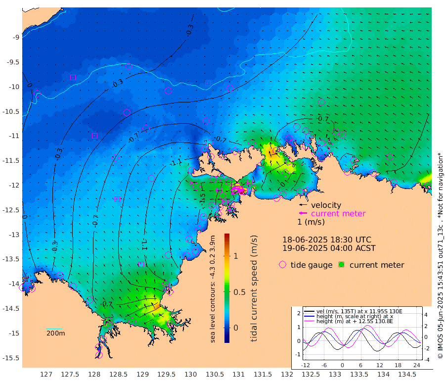 135cm/s -102T +4cm/s rms + 6cm/s 51T. Darwin_C1 52m 90cm/s -89T +4cm/s rms + 7cm/s -161T. Darwin_CW1 22m 74cm/s -108T +4cm/s rms + 8cm/s 61T. Darwin_CW2 34m 53cm/s -124T +3cm/s rms + 9cm/s 98T. Darwin_CW3 22m 97cm/s -91T +5cm/s rms + 7cm/s 88T. Darwin_C3 56m 75cm/s -115T +2cm/s rms + 9cm/s -126T. Darwin_CTbW 22m 7cm/s -38T +9cm/s rms + 2cm/s -110T. NWSLYN 196m 44cm/s -92T +1cm/s rms + 1cm/s -47T. DARBGF 30m 5cm/s -160T +7cm/s rms + 2cm/s -137T. ITFTIS 464m 4cm/s -16T +9cm/s rms + 1cm/s 74T. ITFMHB 146m 24cm/s -21T +4cm/s rms + 1cm/s -134T. ITFJBG 61m 17cm/s -43T +6cm/s rms + 4cm/s 121T. ITFFTB 108m 37cm/s -66T +4cm/s rms + 3cm/s 80T. NRSDAR 19m 45cm Carronade Island 48cm Guy Point 36cm Napier Broome Bay 2cm Lesueur Island -46cm Reveley Island -51cm Rocky Island -56cm Cape Domett -41cm Lacrosse Island -17cm Adolphus Island 33cm Pender Point 72cm Wyndham -56cm The Boxers -74cm Unnamed Shoal -27cm Loxton Shoal -65cm Pelican Island -53cm Calder Shoal -36cm Evans Shoal 3cm Quoin Island -115cm Port Keats -101cm Jones Point 66cm Catfish Island -106cm Cape Scott Offshore -169cm Cape Ford -125cm Anson Bay -51cm Goodrich Bank -121cm Peron Island North -128cm Point Jenny -130cm Native Point -130cm Fish Reef -135cm Tapa Bay -99cm Point Fawcett (Offshore) -143cm Burge Point -146cm Munkunuwa -114cm Beagle A -143cm Parsons Bank -127cm Fenton Patches -39cm Lynedoch Bank -121cm Hancox Shoal Area -127cm Nightcliff -142cm Darwin -139cm Charles Point Patches -71cm Glyde Point -2cm Chambers Bay 7cm Point Stuart -42cm Cape Hotham -10cm Christine Reef 16cm West Alligator Head 49cm East Field Island -22cm Two Hills Bay -97cm Newby Shoal -21cm Camp Point -141cm Medina Inlet South -100cm South Barlow Point -77cm St. Asaph Bay -57cm Cape Van Dieman -63cm Snake Bay -52cm Cache Point 7cm Echo Shoal -50cm Point Jahleel (Off) -59cm Cape Don -59cm Port Essington -58cm Smith Point - West -54cm NW Peacock Island -47cm North Of Jones Shoal -17cm Peacock Island -53cm Point David -59cm D'urville Point -47cm Money Shoal -49cm Copeland Island -67cm Cape Cockburn -54cm One Tree Point -58cm Hogmany Shoal -50cm New Year Island - West -55cm Grant Island -41cm Aurari Bay -46cm Cuthbert Point -54cm North Goulburn Island -40cm Paxie Shoal -31cm Entrance Island -7cm Yabooma Island