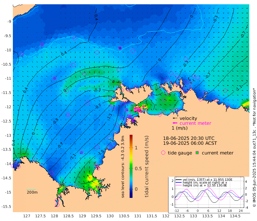 118cm/s -101T +4cm/s rms + 6cm/s 51T. Darwin_C1 52m 75cm/s -90T +4cm/s rms + 7cm/s -161T. Darwin_CW1 22m 63cm/s -107T +4cm/s rms + 8cm/s 61T. Darwin_CW2 34m 62cm/s -133T +3cm/s rms + 9cm/s 98T. Darwin_CW3 22m 100cm/s -91T +5cm/s rms + 7cm/s 88T. Darwin_C3 56m 68cm/s -115T +2cm/s rms + 9cm/s -126T. Darwin_CTbW 22m 3cm/s -63T +9cm/s rms + 2cm/s -110T. NWSLYN 196m 8cm/s -121T +1cm/s rms + 1cm/s -47T. DARBGF 30m 6cm/s 117T +7cm/s rms + 2cm/s -137T. ITFTIS 464m 8cm/s 125T +9cm/s rms + 1cm/s 74T. ITFMHB 146m 9cm/s 62T +4cm/s rms + 1cm/s -134T. ITFJBG 61m 13cm/s 104T +6cm/s rms + 4cm/s 121T. ITFFTB 108m 7cm/s -141T +4cm/s rms + 3cm/s 80T. NRSDAR 19m 40cm Carronade Island 38cm Guy Point 33cm Napier Broome Bay -16cm Lesueur Island -94cm Reveley Island -47cm Rocky Island -153cm Cape Domett -127cm Lacrosse Island -152cm Adolphus Island -130cm Pender Point -115cm Wyndham -2cm The Boxers -16cm Unnamed Shoal 46cm Loxton Shoal -167cm Pelican Island 17cm Calder Shoal 33cm Evans Shoal -181cm Quoin Island -163cm Port Keats -154cm Jones Point -149cm Catfish Island -108cm Cape Scott Offshore -95cm Cape Ford -127cm Anson Bay 17cm Goodrich Bank -103cm Peron Island North -110cm Point Jenny -109cm Native Point -109cm Fish Reef -126cm Tapa Bay -38cm Point Fawcett (Offshore) -136cm Burge Point -115cm Munkunuwa -78cm Beagle A -142cm Parsons Bank -122cm Fenton Patches 22cm Lynedoch Bank -140cm Hancox Shoal Area -140cm Nightcliff -152cm Darwin -131cm Charles Point Patches -117cm Glyde Point -109cm Chambers Bay -104cm Point Stuart -101cm Cape Hotham -101cm Christine Reef -111cm West Alligator Head -101cm East Field Island -90cm Two Hills Bay -45cm Newby Shoal -89cm Camp Point -120cm Medina Inlet South -30cm South Barlow Point -6cm St. Asaph Bay 14cm Cape Van Dieman 9cm Snake Bay 10cm Cache Point 69cm Echo Shoal -5cm Point Jahleel (Off) -51cm Cape Don -19cm Port Essington -18cm Smith Point - West -18cm NW Peacock Island 0cm North Of Jones Shoal -2cm Peacock Island -45cm Point David -24cm D'urville Point -19cm Money Shoal -47cm Copeland Island -59cm Cape Cockburn -40cm One Tree Point -61cm Hogmany Shoal -41cm New Year Island - West -49cm Grant Island -61cm Aurari Bay -87cm Cuthbert Point -69cm North Goulburn Island -99cm Paxie Shoal -112cm Entrance Island -130cm Yabooma Island