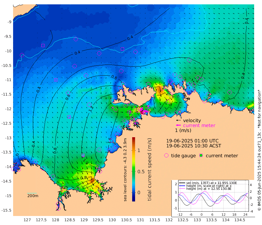 137cm/s 78T +4cm/s rms + 6cm/s 51T. Darwin_C1 52m 89cm/s 90T +4cm/s rms + 7cm/s -161T. Darwin_CW1 22m 78cm/s 73T +4cm/s rms + 8cm/s 61T. Darwin_CW2 34m 58cm/s 50T +3cm/s rms + 9cm/s 98T. Darwin_CW3 22m 107cm/s 89T +5cm/s rms + 7cm/s 88T. Darwin_C3 56m 78cm/s 64T +2cm/s rms + 9cm/s -126T. Darwin_CTbW 22m 1cm/s 11T +9cm/s rms + 2cm/s -110T. NWSLYN 196m 50cm/s 88T +1cm/s rms + 1cm/s -47T. DARBGF 30m 2cm/s 56T +7cm/s rms + 2cm/s -137T. ITFTIS 464m 11cm/s 174T +9cm/s rms + 1cm/s 74T. ITFMHB 146m 27cm/s 165T +4cm/s rms + 1cm/s -134T. ITFJBG 61m 21cm/s 144T +6cm/s rms + 4cm/s 121T. ITFFTB 108m 48cm/s 116T +4cm/s rms + 3cm/s 80T. NRSDAR 19m -31cm Carronade Island -37cm Guy Point -30cm Napier Broome Bay 29cm Lesueur Island 80cm Reveley Island 78cm Rocky Island 88cm Cape Domett 83cm Lacrosse Island 57cm Adolphus Island -17cm Pender Point -51cm Wyndham 65cm The Boxers 85cm Unnamed Shoal 30cm Loxton Shoal 97cm Pelican Island 68cm Calder Shoal 39cm Evans Shoal 32cm Quoin Island 143cm Port Keats 129cm Jones Point -33cm Catfish Island 130cm Cape Scott Offshore 186cm Cape Ford 146cm Anson Bay 54cm Goodrich Bank 148cm Peron Island North 150cm Point Jenny 153cm Native Point 158cm Fish Reef 159cm Tapa Bay 113cm Point Fawcett (Offshore) 170cm Burge Point 168cm Munkunuwa 148cm Beagle A 165cm Parsons Bank 165cm Fenton Patches 40cm Lynedoch Bank 145cm Hancox Shoal Area 161cm Nightcliff 166cm Darwin 156cm Charles Point Patches 94cm Glyde Point 25cm Chambers Bay 15cm Point Stuart 67cm Cape Hotham 30cm Christine Reef 10cm West Alligator Head -21cm East Field Island 42cm Two Hills Bay 124cm Newby Shoal 34cm Camp Point 163cm Medina Inlet South 111cm South Barlow Point 88cm St. Asaph Bay 60cm Cape Van Dieman 67cm Snake Bay 57cm Cache Point 5cm Echo Shoal 59cm Point Jahleel (Off) 63cm Cape Don 56cm Port Essington 61cm Smith Point - West 54cm NW Peacock Island 47cm North Of Jones Shoal 17cm Peacock Island 46cm Point David 59cm D'urville Point 38cm Money Shoal 43cm Copeland Island 62cm Cape Cockburn 47cm One Tree Point 46cm Hogmany Shoal 47cm New Year Island - West 50cm Grant Island 40cm Aurari Bay 35cm Cuthbert Point 46cm North Goulburn Island 19cm Paxie Shoal 24cm Entrance Island -5cm Yabooma Island