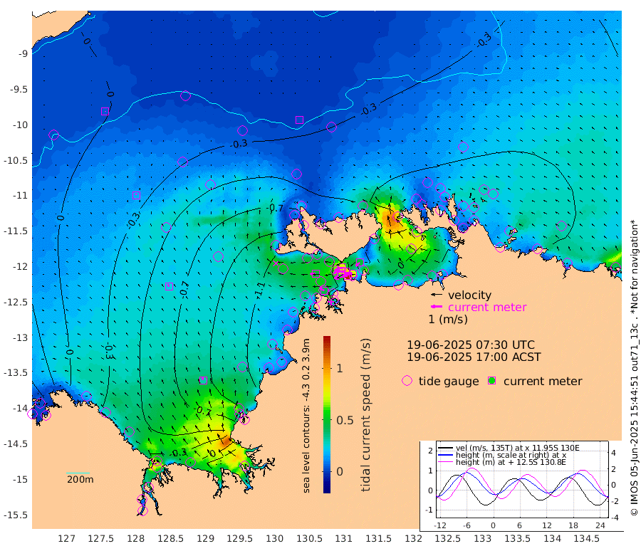 123cm/s -102T +4cm/s rms + 6cm/s 51T. Darwin_C1 52m 75cm/s -90T +4cm/s rms + 7cm/s -161T. Darwin_CW1 22m 69cm/s -107T +4cm/s rms + 8cm/s 61T. Darwin_CW2 34m 46cm/s -130T +3cm/s rms + 9cm/s 98T. Darwin_CW3 22m 88cm/s -92T +5cm/s rms + 7cm/s 88T. Darwin_C3 56m 72cm/s -115T +2cm/s rms + 9cm/s -126T. Darwin_CTbW 22m 1cm/s -156T +9cm/s rms + 2cm/s -110T. NWSLYN 196m 47cm/s -91T +1cm/s rms + 1cm/s -47T. DARBGF 30m 4cm/s 14T +7cm/s rms + 2cm/s -137T. ITFTIS 464m 15cm/s 3T +9cm/s rms + 1cm/s 74T. ITFMHB 146m 30cm/s -17T +4cm/s rms + 1cm/s -134T. ITFJBG 61m 23cm/s -30T +6cm/s rms + 4cm/s 121T. ITFFTB 108m 44cm/s -63T +4cm/s rms + 3cm/s 80T. NRSDAR 19m 54cm Carronade Island 55cm Guy Point 67cm Napier Broome Bay -7cm Lesueur Island -57cm Reveley Island -19cm Rocky Island -61cm Cape Domett -60cm Lacrosse Island -41cm Adolphus Island 48cm Pender Point 76cm Wyndham -34cm The Boxers -50cm Unnamed Shoal -1cm Loxton Shoal -90cm Pelican Island -39cm Calder Shoal -22cm Evans Shoal -13cm Quoin Island -115cm Port Keats -112cm Jones Point 25cm Catfish Island -112cm Cape Scott Offshore -169cm Cape Ford -127cm Anson Bay -37cm Goodrich Bank -130cm Peron Island North -132cm Point Jenny -131cm Native Point -135cm Fish Reef -141cm Tapa Bay -94cm Point Fawcett (Offshore) -140cm Burge Point -140cm Munkunuwa -124cm Beagle A -144cm Parsons Bank -140cm Fenton Patches -20cm Lynedoch Bank -135cm Hancox Shoal Area -142cm Nightcliff -140cm Darwin -135cm Charles Point Patches -82cm Glyde Point -32cm Chambers Bay -17cm Point Stuart -63cm Cape Hotham -31cm Christine Reef -13cm West Alligator Head 16cm East Field Island -40cm Two Hills Bay -82cm Newby Shoal -28cm Camp Point -134cm Medina Inlet South -87cm South Barlow Point -69cm St. Asaph Bay -43cm Cape Van Dieman -46cm Snake Bay -44cm Cache Point 15cm Echo Shoal -48cm Point Jahleel (Off) -55cm Cape Don -50cm Port Essington -59cm Smith Point - West -54cm NW Peacock Island -41cm North Of Jones Shoal -16cm Peacock Island -55cm Point David -61cm D'urville Point -38cm Money Shoal -55cm Copeland Island -73cm Cape Cockburn -51cm One Tree Point -66cm Hogmany Shoal -50cm New Year Island - West -56cm Grant Island -55cm Aurari Bay -56cm Cuthbert Point -59cm North Goulburn Island -37cm Paxie Shoal -54cm Entrance Island -43cm Yabooma Island