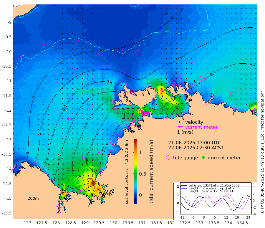 121cm/s 78T +4cm/s rms + 6cm/s 51T. Darwin_C1 52m 84cm/s 89T +4cm/s rms + 7cm/s -161T. Darwin_CW1 22m 75cm/s 74T +4cm/s rms + 8cm/s 61T. Darwin_CW2 34m 48cm/s 51T +3cm/s rms + 9cm/s 98T. Darwin_CW3 22m 104cm/s 88T +5cm/s rms + 7cm/s 88T. Darwin_C3 56m 73cm/s 65T +2cm/s rms + 9cm/s -126T. Darwin_CTbW 22m 2cm/s 117T +9cm/s rms + 2cm/s -110T. NWSLYN 196m 42cm/s 87T +1cm/s rms + 1cm/s -47T. DARBGF 30m 4cm/s -155T +7cm/s rms + 2cm/s -137T. ITFTIS 464m 18cm/s -173T +9cm/s rms + 1cm/s 74T. ITFMHB 146m 26cm/s 168T +4cm/s rms + 1cm/s -134T. ITFJBG 61m 21cm/s 154T +6cm/s rms + 4cm/s 121T. ITFFTB 108m 38cm/s 114T +4cm/s rms + 3cm/s 80T. NRSDAR 19m -39cm Carronade Island -35cm Guy Point -45cm Napier Broome Bay 13cm Lesueur Island 81cm Reveley Island 19cm Rocky Island 106cm Cape Domett 100cm Lacrosse Island 83cm Adolphus Island 17cm Pender Point -6cm Wyndham 22cm The Boxers 24cm Unnamed Shoal -23cm Loxton Shoal 134cm Pelican Island 22cm Calder Shoal 1cm Evans Shoal 81cm Quoin Island 142cm Port Keats 141cm Jones Point 71cm Catfish Island 134cm Cape Scott Offshore 171cm Cape Ford 151cm Anson Bay 12cm Goodrich Bank 137cm Peron Island North 151cm Point Jenny 147cm Native Point 148cm Fish Reef 158cm Tapa Bay 91cm Point Fawcett (Offshore) 159cm Burge Point 150cm Munkunuwa 127cm Beagle A 156cm Parsons Bank 154cm Fenton Patches -5cm Lynedoch Bank 154cm Hancox Shoal Area 164cm Nightcliff 156cm Darwin 149cm Charles Point Patches 104cm Glyde Point 73cm Chambers Bay 55cm Point Stuart 84cm Cape Hotham 70cm Christine Reef 57cm West Alligator Head 32cm East Field Island 62cm Two Hills Bay 75cm Newby Shoal 54cm Camp Point 146cm Medina Inlet South 69cm South Barlow Point 53cm St. Asaph Bay 18cm Cape Van Dieman 15cm Snake Bay 23cm Cache Point -35cm Echo Shoal 29cm Point Jahleel (Off) 54cm Cape Don 33cm Port Essington 39cm Smith Point - West 32cm NW Peacock Island 22cm North Of Jones Shoal 9cm Peacock Island 36cm Point David 38cm D'urville Point 21cm Money Shoal 39cm Copeland Island 52cm Cape Cockburn 35cm One Tree Point 49cm Hogmany Shoal 31cm New Year Island - West 37cm Grant Island 42cm Aurari Bay 54cm Cuthbert Point 47cm North Goulburn Island 51cm Paxie Shoal 65cm Entrance Island 72cm Yabooma Island