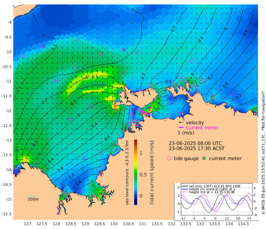 80cm/s 78T +4cm/s rms + 6cm/s 51T. Darwin_C1 52m 74cm/s 92T +4cm/s rms + 7cm/s -161T. Darwin_CW1 22m 35cm/s 69T +4cm/s rms + 8cm/s 61T. Darwin_CW2 34m 61cm/s 40T +3cm/s rms + 9cm/s 98T. Darwin_CW3 22m 65cm/s 90T +5cm/s rms + 7cm/s 88T. Darwin_C3 56m 36cm/s 65T +2cm/s rms + 9cm/s -126T. Darwin_CTbW 22m 10cm/s -26T +9cm/s rms + 2cm/s -110T. NWSLYN 196m 26cm/s -79T +1cm/s rms + 1cm/s -47T. DARBGF 30m 10cm/s -77T +7cm/s rms + 2cm/s -137T. ITFTIS 464m 21cm/s -30T +9cm/s rms + 1cm/s 74T. ITFMHB 146m 17cm/s -63T +4cm/s rms + 1cm/s -134T. ITFJBG 61m 33cm/s -58T +6cm/s rms + 4cm/s 121T. ITFFTB 108m 31cm/s -50T +4cm/s rms + 3cm/s 80T. NRSDAR 19m -79cm Carronade Island -86cm Guy Point -79cm Napier Broome Bay -8cm Lesueur Island 74cm Reveley Island 23cm Rocky Island 142cm Cape Domett 121cm Lacrosse Island 163cm Adolphus Island 156cm Pender Point 157cm Wyndham -64cm The Boxers -26cm Unnamed Shoal -115cm Loxton Shoal 155cm Pelican Island -89cm Calder Shoal -101cm Evans Shoal 214cm Quoin Island 128cm Port Keats 140cm Jones Point 174cm Catfish Island 49cm Cape Scott Offshore 25cm Cape Ford 65cm Anson Bay -79cm Goodrich Bank 42cm Peron Island North 41cm Point Jenny 41cm Native Point 52cm Fish Reef 63cm Tapa Bay -42cm Point Fawcett (Offshore) 85cm Burge Point 51cm Munkunuwa 21cm Beagle A 89cm Parsons Bank 80cm Fenton Patches -76cm Lynedoch Bank 93cm Hancox Shoal Area 89cm Nightcliff 106cm Darwin 72cm Charles Point Patches 104cm Glyde Point 113cm Chambers Bay 133cm Point Stuart 101cm Cape Hotham 103cm Christine Reef 147cm West Alligator Head 159cm East Field Island 91cm Two Hills Bay -22cm Newby Shoal 94cm Camp Point 57cm Medina Inlet South -43cm South Barlow Point -68cm St. Asaph Bay -77cm Cape Van Dieman -71cm Snake Bay -74cm Cache Point -126cm Echo Shoal -48cm Point Jahleel (Off) 7cm Cape Don -34cm Port Essington -38cm Smith Point - West -32cm NW Peacock Island -59cm North Of Jones Shoal -17cm Peacock Island 13cm Point David -27cm D'urville Point -26cm Money Shoal 18cm Copeland Island 17cm Cape Cockburn 1cm One Tree Point 22cm Hogmany Shoal 10cm New Year Island - West 15cm Grant Island 49cm Aurari Bay 72cm Cuthbert Point 38cm North Goulburn Island 89cm Paxie Shoal 112cm Entrance Island 150cm Yabooma Island