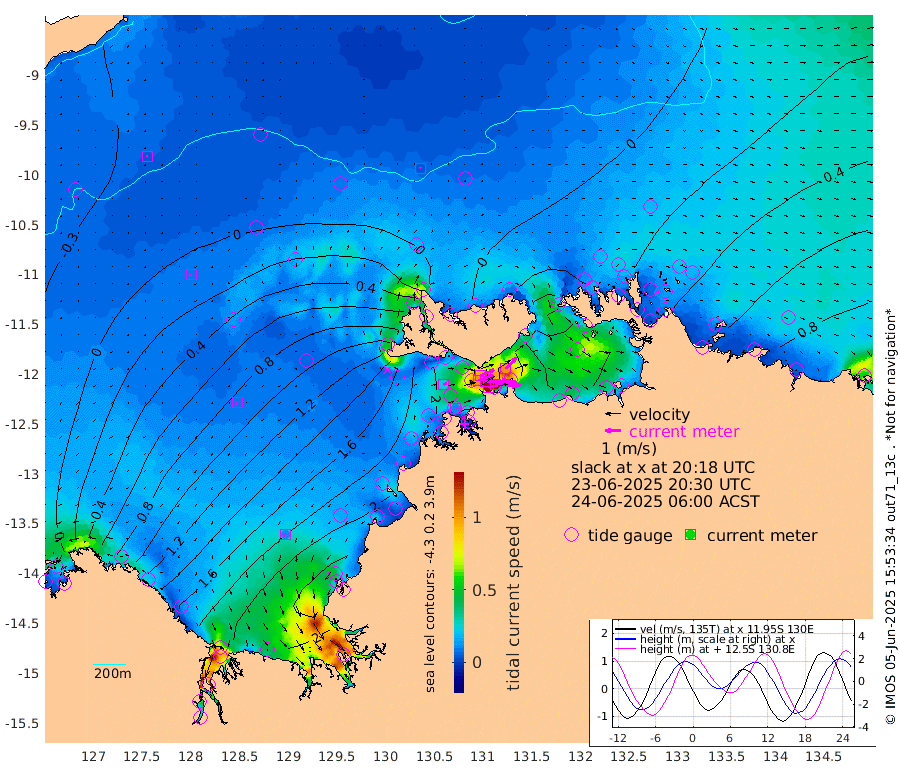 183cm/s 78T +4cm/s rms + 6cm/s 51T. Darwin_C1 52m 160cm/s 92T +4cm/s rms + 7cm/s -161T. Darwin_CW1 22m 100cm/s 72T +4cm/s rms + 8cm/s 61T. Darwin_CW2 34m 101cm/s 45T +3cm/s rms + 9cm/s 98T. Darwin_CW3 22m 160cm/s 90T +5cm/s rms + 7cm/s 88T. Darwin_C3 56m 94cm/s 66T +2cm/s rms + 9cm/s -126T. Darwin_CTbW 22m 5cm/s 11T +9cm/s rms + 2cm/s -110T. NWSLYN 196m 23cm/s 68T +1cm/s rms + 1cm/s -47T. DARBGF 30m 5cm/s -92T +7cm/s rms + 2cm/s -137T. ITFTIS 464m 10cm/s -145T +9cm/s rms + 1cm/s 74T. ITFMHB 146m 13cm/s -139T +4cm/s rms + 1cm/s -134T. ITFJBG 61m 9cm/s -102T +6cm/s rms + 4cm/s 121T. ITFFTB 108m 11cm/s 85T +4cm/s rms + 3cm/s 80T. NRSDAR 19m 17cm Carronade Island 24cm Guy Point 14cm Napier Broome Bay 100cm Lesueur Island 196cm Reveley Island 89cm Rocky Island 271cm Cape Domett 254cm Lacrosse Island 275cm Adolphus Island 226cm Pender Point 214cm Wyndham 42cm The Boxers 31cm Unnamed Shoal -19cm Loxton Shoal 284cm Pelican Island 30cm Calder Shoal -7cm Evans Shoal 317cm Quoin Island 272cm Port Keats 257cm Jones Point 261cm Catfish Island 201cm Cape Scott Offshore 233cm Cape Ford 216cm Anson Bay 2cm Goodrich Bank 192cm Peron Island North 200cm Point Jenny 196cm Native Point 205cm Fish Reef 220cm Tapa Bay 102cm Point Fawcett (Offshore) 239cm Burge Point 199cm Munkunuwa 174cm Beagle A 219cm Parsons Bank 230cm Fenton Patches -11cm Lynedoch Bank 226cm Hancox Shoal Area 243cm Nightcliff 245cm Darwin 223cm Charles Point Patches 190cm Glyde Point 170cm Chambers Bay 162cm Point Stuart 167cm Cape Hotham 166cm Christine Reef 176cm West Alligator Head 169cm East Field Island 140cm Two Hills Bay 122cm Newby Shoal 142cm Camp Point 208cm Medina Inlet South 73cm South Barlow Point 52cm St. Asaph Bay 4cm Cape Van Dieman 3cm Snake Bay 13cm Cache Point -30cm Echo Shoal 29cm Point Jahleel (Off) 76cm Cape Don 26cm Port Essington 29cm Smith Point - West 21cm NW Peacock Island 12cm North Of Jones Shoal 4cm Peacock Island 26cm Point David 24cm D'urville Point 13cm Money Shoal 29cm Copeland Island 44cm Cape Cockburn 29cm One Tree Point 43cm Hogmany Shoal 29cm New Year Island - West 33cm Grant Island 43cm Aurari Bay 62cm Cuthbert Point 46cm North Goulburn Island 73cm Paxie Shoal 82cm Entrance Island 98cm Yabooma Island