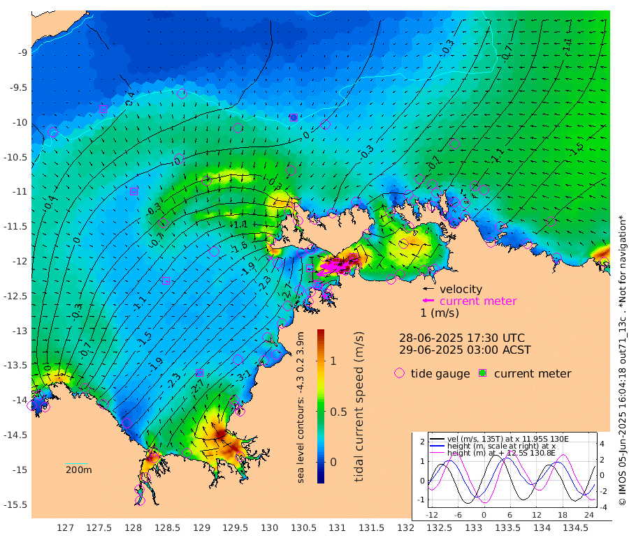 229cm/s -101T +4cm/s rms + 6cm/s 51T. Darwin_C1 52m 175cm/s -91T +4cm/s rms + 7cm/s -161T. Darwin_CW1 22m 105cm/s -106T +4cm/s rms + 8cm/s 61T. Darwin_CW2 34m 120cm/s -135T +3cm/s rms + 9cm/s 98T. Darwin_CW3 22m 175cm/s -90T +5cm/s rms + 7cm/s 88T. Darwin_C3 56m 124cm/s -115T +2cm/s rms + 9cm/s -126T. Darwin_CTbW 22m 5cm/s -99T +9cm/s rms + 2cm/s -110T. NWSLYN 196m 20cm/s -114T +1cm/s rms + 1cm/s -47T. DARBGF 30m 11cm/s 141T +7cm/s rms + 2cm/s -137T. ITFTIS 464m 13cm/s 147T +9cm/s rms + 1cm/s 74T. ITFMHB 146m 12cm/s 63T +4cm/s rms + 1cm/s -134T. ITFJBG 61m 19cm/s 117T +6cm/s rms + 4cm/s 121T. ITFFTB 108m 12cm/s -120T +4cm/s rms + 3cm/s 80T. NRSDAR 19m 23cm Carronade Island 23cm Guy Point 15cm Napier Broome Bay -100cm Lesueur Island -213cm Reveley Island -97cm Rocky Island -313cm Cape Domett -282cm Lacrosse Island -311cm Adolphus Island -266cm Pender Point -245cm Wyndham -53cm The Boxers -79cm Unnamed Shoal 25cm Loxton Shoal -331cm Pelican Island -26cm Calder Shoal 10cm Evans Shoal -382cm Quoin Island -323cm Port Keats -314cm Jones Point -340cm Catfish Island -233cm Cape Scott Offshore -244cm Cape Ford -260cm Anson Bay -11cm Goodrich Bank -232cm Peron Island North -218cm Point Jenny -216cm Native Point -238cm Fish Reef -252cm Tapa Bay -118cm Point Fawcett (Offshore) -273cm Burge Point -231cm Munkunuwa -179cm Beagle A -272cm Parsons Bank -250cm Fenton Patches -3cm Lynedoch Bank -267cm Hancox Shoal Area -271cm Nightcliff -307cm Darwin -278cm Charles Point Patches -236cm Glyde Point -202cm Chambers Bay -206cm Point Stuart -211cm Cape Hotham -182cm Christine Reef -218cm West Alligator Head -206cm East Field Island -184cm Two Hills Bay -129cm Newby Shoal -179cm Camp Point -252cm Medina Inlet South -94cm South Barlow Point -57cm St. Asaph Bay -16cm Cape Van Dieman -28cm Snake Bay -24cm Cache Point 57cm Echo Shoal -46cm Point Jahleel (Off) -114cm Cape Don -63cm Port Essington -56cm Smith Point - West -55cm NW Peacock Island -37cm North Of Jones Shoal -16cm Peacock Island -90cm Point David -62cm D'urville Point -55cm Money Shoal -91cm Copeland Island -121cm Cape Cockburn -89cm One Tree Point -120cm Hogmany Shoal -89cm New Year Island - West -97cm Grant Island -114cm Aurari Bay -141cm Cuthbert Point -122cm North Goulburn Island -162cm Paxie Shoal -167cm Entrance Island -188cm Yabooma Island
