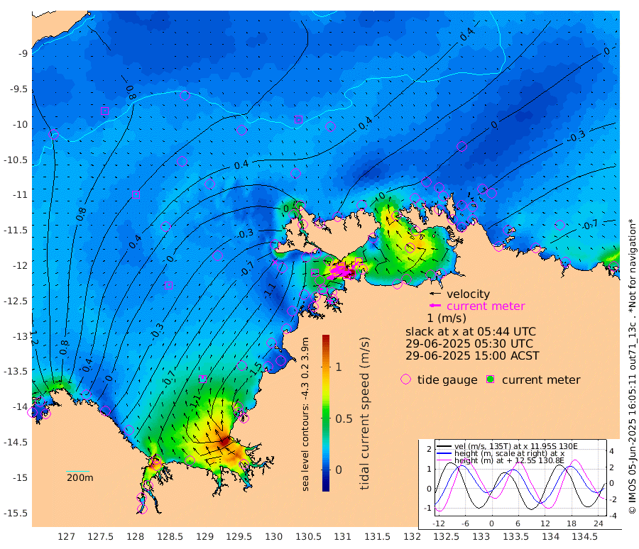 180cm/s -101T +4cm/s rms + 6cm/s 51T. Darwin_C1 52m 128cm/s -90T +4cm/s rms + 7cm/s -161T. Darwin_CW1 22m 82cm/s -106T +4cm/s rms + 8cm/s 61T. Darwin_CW2 34m 82cm/s -135T +3cm/s rms + 9cm/s 98T. Darwin_CW3 22m 117cm/s -91T +5cm/s rms + 7cm/s 88T. Darwin_C3 56m 98cm/s -115T +2cm/s rms + 9cm/s -126T. Darwin_CTbW 22m 9cm/s 145T +9cm/s rms + 2cm/s -110T. NWSLYN 196m 33cm/s -95T +1cm/s rms + 1cm/s -47T. DARBGF 30m 10cm/s 38T +7cm/s rms + 2cm/s -137T. ITFTIS 464m 15cm/s 35T +9cm/s rms + 1cm/s 74T. ITFMHB 146m 25cm/s 0T +4cm/s rms + 1cm/s -134T. ITFJBG 61m 15cm/s 26T +6cm/s rms + 4cm/s 121T. ITFFTB 108m 30cm/s -74T +4cm/s rms + 3cm/s 80T. NRSDAR 19m 134cm Carronade Island 139cm Guy Point 147cm Napier Broome Bay 37cm Lesueur Island -76cm Reveley Island -40cm Rocky Island -131cm Cape Domett -113cm Lacrosse Island -135cm Adolphus Island -40cm Pender Point -10cm Wyndham 34cm The Boxers 18cm Unnamed Shoal 86cm Loxton Shoal -170cm Pelican Island 40cm Calder Shoal 54cm Evans Shoal -160cm Quoin Island -171cm Port Keats -173cm Jones Point -123cm Catfish Island -122cm Cape Scott Offshore -131cm Cape Ford -144cm Anson Bay 36cm Goodrich Bank -133cm Peron Island North -123cm Point Jenny -120cm Native Point -144cm Fish Reef -144cm Tapa Bay -46cm Point Fawcett (Offshore) -157cm Burge Point -149cm Munkunuwa -103cm Beagle A -167cm Parsons Bank -153cm Fenton Patches 47cm Lynedoch Bank -158cm Hancox Shoal Area -165cm Nightcliff -175cm Darwin -150cm Charles Point Patches -117cm Glyde Point -82cm Chambers Bay -79cm Point Stuart -99cm Cape Hotham -70cm Christine Reef -85cm West Alligator Head -65cm East Field Island -74cm Two Hills Bay -28cm Newby Shoal -58cm Camp Point -146cm Medina Inlet South -36cm South Barlow Point -7cm St. Asaph Bay 31cm Cape Van Dieman 26cm Snake Bay 27cm Cache Point 103cm Echo Shoal 8cm Point Jahleel (Off) -33cm Cape Don -3cm Port Essington -8cm Smith Point - West -2cm NW Peacock Island 15cm North Of Jones Shoal 3cm Peacock Island -19cm Point David -11cm D'urville Point 10cm Money Shoal -25cm Copeland Island -35cm Cape Cockburn -17cm One Tree Point -21cm Hogmany Shoal -12cm New Year Island - West -20cm Grant Island -45cm Aurari Bay -55cm Cuthbert Point -40cm North Goulburn Island -45cm Paxie Shoal -69cm Entrance Island -85cm Yabooma Island