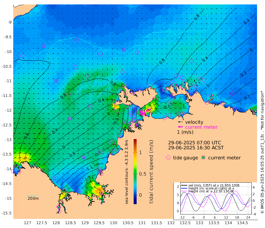 96cm/s -101T +4cm/s rms + 6cm/s 51T. Darwin_C1 52m 67cm/s -91T +4cm/s rms + 7cm/s -161T. Darwin_CW1 22m 42cm/s -107T +4cm/s rms + 8cm/s 61T. Darwin_CW2 34m 73cm/s -137T +3cm/s rms + 9cm/s 98T. Darwin_CW3 22m 77cm/s -91T +5cm/s rms + 7cm/s 88T. Darwin_C3 56m 43cm/s -116T +2cm/s rms + 9cm/s -126T. Darwin_CTbW 22m 14cm/s 146T +9cm/s rms + 2cm/s -110T. NWSLYN 196m 21cm/s 107T +1cm/s rms + 1cm/s -47T. DARBGF 30m 13cm/s 46T +7cm/s rms + 2cm/s -137T. ITFTIS 464m 14cm/s 68T +9cm/s rms + 1cm/s 74T. ITFMHB 146m 18cm/s 94T +4cm/s rms + 1cm/s -134T. ITFJBG 61m 27cm/s 100T +6cm/s rms + 4cm/s 121T. ITFFTB 108m 25cm/s 141T +4cm/s rms + 3cm/s 80T. NRSDAR 19m 58cm Carronade Island 60cm Guy Point 68cm Napier Broome Bay -3cm Lesueur Island -99cm Reveley Island -70cm Rocky Island -175cm Cape Domett -151cm Lacrosse Island -214cm Adolphus Island -189cm Pender Point -188cm Wyndham 61cm The Boxers 66cm Unnamed Shoal 98cm Loxton Shoal -188cm Pelican Island 73cm Calder Shoal 80cm Evans Shoal -263cm Quoin Island -144cm Port Keats -149cm Jones Point -246cm Catfish Island -65cm Cape Scott Offshore -40cm Cape Ford -69cm Anson Bay 77cm Goodrich Bank -62cm Peron Island North -50cm Point Jenny -46cm Native Point -67cm Fish Reef -67cm Tapa Bay 26cm Point Fawcett (Offshore) -88cm Burge Point -64cm Munkunuwa -33cm Beagle A -92cm Parsons Bank -87cm Fenton Patches 77cm Lynedoch Bank -97cm Hancox Shoal Area -96cm Nightcliff -105cm Darwin -72cm Charles Point Patches -103cm Glyde Point -133cm Chambers Bay -141cm Point Stuart -105cm Cape Hotham -115cm Christine Reef -162cm West Alligator Head -172cm East Field Island -101cm Two Hills Bay 18cm Newby Shoal -84cm Camp Point -66cm Medina Inlet South 38cm South Barlow Point 56cm St. Asaph Bay 78cm Cape Van Dieman 77cm Snake Bay 68cm Cache Point 99cm Echo Shoal 44cm Point Jahleel (Off) -5cm Cape Don 40cm Port Essington 36cm Smith Point - West 39cm NW Peacock Island 58cm North Of Jones Shoal 18cm Peacock Island 20cm Point David 35cm D'urville Point 47cm Money Shoal 13cm Copeland Island 12cm Cape Cockburn 23cm One Tree Point 14cm Hogmany Shoal 22cm New Year Island - West 16cm Grant Island -13cm Aurari Bay -35cm Cuthbert Point -8cm North Goulburn Island -34cm Paxie Shoal -71cm Entrance Island -102cm Yabooma Island