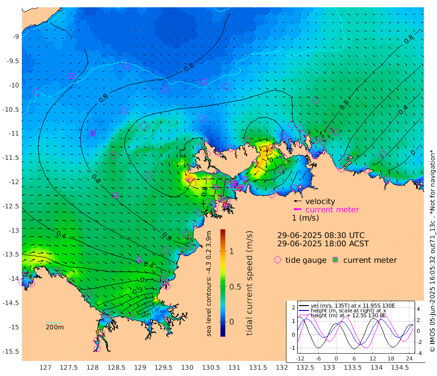 50cm/s 80T +4cm/s rms + 6cm/s 51T. Darwin_C1 52m 41cm/s 81T +4cm/s rms + 7cm/s -161T. Darwin_CW1 22m 12cm/s 81T +4cm/s rms + 8cm/s 61T. Darwin_CW2 34m 17cm/s -165T +3cm/s rms + 9cm/s 98T. Darwin_CW3 22m 2cm/s 32T +5cm/s rms + 7cm/s 88T. Darwin_C3 56m 42cm/s 61T +2cm/s rms + 9cm/s -126T. Darwin_CTbW 22m 14cm/s 142T +9cm/s rms + 2cm/s -110T. NWSLYN 196m 51cm/s 95T +1cm/s rms + 1cm/s -47T. DARBGF 30m 11cm/s 39T +7cm/s rms + 2cm/s -137T. ITFTIS 464m 10cm/s 87T +9cm/s rms + 1cm/s 74T. ITFMHB 146m 34cm/s 137T +4cm/s rms + 1cm/s -134T. ITFJBG 61m 34cm/s 117T +6cm/s rms + 4cm/s 121T. ITFFTB 108m 51cm/s 125T +4cm/s rms + 3cm/s 80T. NRSDAR 19m -37cm Carronade Island -39cm Guy Point -33cm Napier Broome Bay -25cm Lesueur Island -53cm Reveley Island -62cm Rocky Island -101cm Cape Domett -86cm Lacrosse Island -156cm Adolphus Island -204cm Pender Point -231cm Wyndham 65cm The Boxers 92cm Unnamed Shoal 63cm Loxton Shoal -83cm Pelican Island 72cm Calder Shoal 68cm Evans Shoal -193cm Quoin Island -21cm Port Keats -26cm Jones Point -204cm Catfish Island 41cm Cape Scott Offshore 82cm Cape Ford 58cm Anson Bay 81cm Goodrich Bank 55cm Peron Island North 60cm Point Jenny 63cm Native Point 55cm Fish Reef 58cm Tapa Bay 92cm Point Fawcett (Offshore) 42cm Burge Point 64cm Munkunuwa 60cm Beagle A 45cm Parsons Bank 36cm Fenton Patches 71cm Lynedoch Bank 30cm Hancox Shoal Area 37cm Nightcliff 39cm Darwin 61cm Charles Point Patches -17cm Glyde Point -94cm Chambers Bay -108cm Point Stuart -38cm Cape Hotham -84cm Christine Reef -131cm West Alligator Head -165cm East Field Island -56cm Two Hills Bay 63cm Newby Shoal -47cm Camp Point 62cm Medina Inlet South 97cm South Barlow Point 93cm St. Asaph Bay 88cm Cape Van Dieman 93cm Snake Bay 79cm Cache Point 44cm Echo Shoal 63cm Point Jahleel (Off) 38cm Cape Don 71cm Port Essington 69cm Smith Point - West 68cm NW Peacock Island 77cm North Of Jones Shoal 27cm Peacock Island 63cm Point David 71cm D'urville Point 71cm Money Shoal 58cm Copeland Island 71cm Cape Cockburn 64cm One Tree Point 62cm Hogmany Shoal 60cm New Year Island - West 58cm Grant Island 42cm Aurari Bay 23cm Cuthbert Point 45cm North Goulburn Island 21cm Paxie Shoal -13cm Entrance Island -38cm Yabooma Island