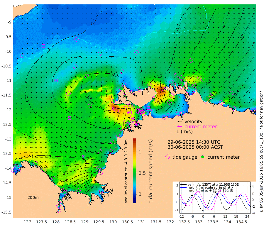76cm/s -103T +4cm/s rms + 6cm/s 51T. Darwin_C1 52m 57cm/s -86T +4cm/s rms + 7cm/s -161T. Darwin_CW1 22m 48cm/s -108T +4cm/s rms + 8cm/s 61T. Darwin_CW2 34m 14cm/s -88T +3cm/s rms + 9cm/s 98T. Darwin_CW3 22m 54cm/s -93T +5cm/s rms + 7cm/s 88T. Darwin_C3 56m 46cm/s -116T +2cm/s rms + 9cm/s -126T. Darwin_CTbW 22m 11cm/s -36T +9cm/s rms + 2cm/s -110T. NWSLYN 196m 69cm/s -89T +1cm/s rms + 1cm/s -47T. DARBGF 30m 14cm/s -123T +7cm/s rms + 2cm/s -137T. ITFTIS 464m 17cm/s -48T +9cm/s rms + 1cm/s 74T. ITFMHB 146m 38cm/s -36T +4cm/s rms + 1cm/s -134T. ITFJBG 61m 45cm/s -58T +6cm/s rms + 4cm/s 121T. ITFFTB 108m 69cm/s -56T +4cm/s rms + 3cm/s 80T. NRSDAR 19m -21cm Carronade Island -19cm Guy Point -31cm Napier Broome Bay -34cm Lesueur Island -5cm Reveley Island -36cm Rocky Island 46cm Cape Domett 29cm Lacrosse Island 109cm Adolphus Island 163cm Pender Point 199cm Wyndham -125cm The Boxers -133cm Unnamed Shoal -120cm Loxton Shoal 42cm Pelican Island -136cm Calder Shoal -111cm Evans Shoal 162cm Quoin Island -33cm Port Keats -16cm Jones Point 201cm Catfish Island -93cm Cape Scott Offshore -160cm Cape Ford -105cm Anson Bay -119cm Goodrich Bank -102cm Peron Island North -119cm Point Jenny -125cm Native Point -112cm Fish Reef -115cm Tapa Bay -145cm Point Fawcett (Offshore) -100cm Burge Point -124cm Munkunuwa -130cm Beagle A -85cm Parsons Bank -101cm Fenton Patches -103cm Lynedoch Bank -67cm Hancox Shoal Area -90cm Nightcliff -84cm Darwin -108cm Charles Point Patches -6cm Glyde Point 92cm Chambers Bay 115cm Point Stuart 30cm Cape Hotham 74cm Christine Reef 137cm West Alligator Head 176cm East Field Island 55cm Two Hills Bay -140cm Newby Shoal 41cm Camp Point -118cm Medina Inlet South -146cm South Barlow Point -143cm St. Asaph Bay -124cm Cape Van Dieman -127cm Snake Bay -112cm Cache Point -101cm Echo Shoal -91cm Point Jahleel (Off) -48cm Cape Don -78cm Port Essington -80cm Smith Point - West -71cm NW Peacock Island -87cm North Of Jones Shoal -28cm Peacock Island -34cm Point David -71cm D'urville Point -60cm Money Shoal -24cm Copeland Island -32cm Cape Cockburn -41cm One Tree Point -21cm Hogmany Shoal -38cm New Year Island - West -32cm Grant Island 2cm Aurari Bay 33cm Cuthbert Point -2cm North Goulburn Island 46cm Paxie Shoal 85cm Entrance Island 145cm Yabooma Island