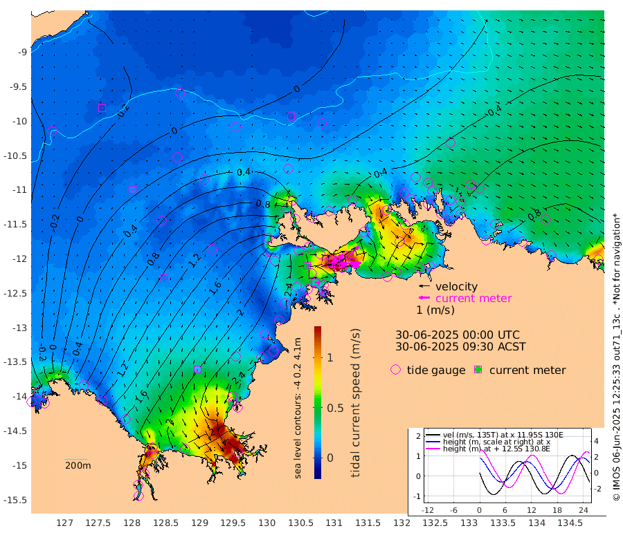 220cm/s 78T +4cm/s rms + 6cm/s 51T. Darwin_C1 52m 155cm/s 93T +4cm/s rms + 7cm/s -161T. Darwin_CW1 22m 127cm/s 72T +4cm/s rms + 8cm/s 61T. Darwin_CW2 34m 117cm/s 47T +3cm/s rms + 9cm/s 98T. Darwin_CW3 22m 191cm/s 89T +5cm/s rms + 7cm/s 88T. Darwin_C3 56m 110cm/s 66T +2cm/s rms + 9cm/s -126T. Darwin_CTbW 22m 5cm/s -12T +9cm/s rms + 2cm/s -110T. NWSLYN 196m 43cm/s 80T +1cm/s rms + 1cm/s -47T. DARBGF 30m 3cm/s -96T +7cm/s rms + 2cm/s -137T. ITFTIS 464m 10cm/s -150T +9cm/s rms + 1cm/s 74T. ITFMHB 146m 21cm/s -168T +4cm/s rms + 1cm/s -134T. ITFJBG 61m 10cm/s -160T +6cm/s rms + 4cm/s 121T. ITFFTB 108m 34cm/s 105T +4cm/s rms + 3cm/s 80T. NRSDAR 19m -43cm Carronade Island -47cm Guy Point -40cm Napier Broome Bay 69cm Lesueur Island 176cm Reveley Island 138cm Rocky Island 248cm Cape Domett 225cm Lacrosse Island 240cm Adolphus Island 161cm Pender Point 128cm Wyndham 58cm The Boxers 68cm Unnamed Shoal -8cm Loxton Shoal 268cm Pelican Island 45cm Calder Shoal 6cm Evans Shoal 274cm Quoin Island 278cm Port Keats 266cm Jones Point 225cm Catfish Island 215cm Cape Scott Offshore 235cm Cape Ford 237cm Anson Bay 23cm Goodrich Bank 219cm Peron Island North 213cm Point Jenny 212cm Native Point 233cm Fish Reef 238cm Tapa Bay 127cm Point Fawcett (Offshore) 254cm Burge Point 234cm Munkunuwa 192cm Beagle A 247cm Parsons Bank 246cm Fenton Patches 9cm Lynedoch Bank 236cm Hancox Shoal Area 253cm Nightcliff 272cm Darwin 249cm Charles Point Patches 189cm Glyde Point 134cm Chambers Bay 125cm Point Stuart 155cm Cape Hotham 122cm Christine Reef 134cm West Alligator Head 111cm East Field Island 124cm Two Hills Bay 136cm Newby Shoal 116cm Camp Point 241cm Medina Inlet South 109cm South Barlow Point 76cm St. Asaph Bay 27cm Cape Van Dieman 35cm Snake Bay 30cm Cache Point -33cm Echo Shoal 46cm Point Jahleel (Off) 85cm Cape Don 46cm Port Essington 49cm Smith Point - West 39cm NW Peacock Island 27cm North Of Jones Shoal 10cm Peacock Island 40cm Point David 45cm D'urville Point 22cm Money Shoal 40cm Copeland Island 59cm Cape Cockburn 44cm One Tree Point 47cm Hogmany Shoal 43cm New Year Island - West 46cm Grant Island 54cm Aurari Bay 62cm Cuthbert Point 56cm North Goulburn Island 57cm Paxie Shoal 67cm Entrance Island 58cm Yabooma Island