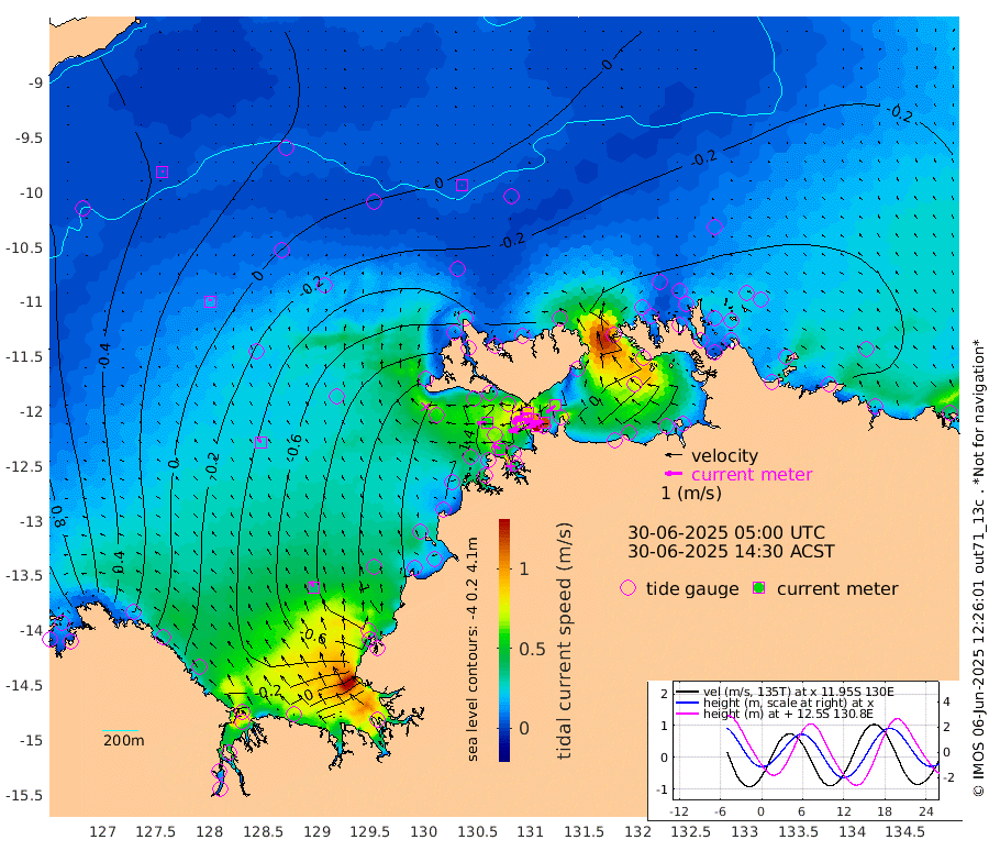 165cm/s -102T +4cm/s rms + 6cm/s 51T. Darwin_C1 52m 117cm/s -90T +4cm/s rms + 7cm/s -161T. Darwin_CW1 22m 85cm/s -108T +4cm/s rms + 8cm/s 61T. Darwin_CW2 34m 63cm/s -129T +3cm/s rms + 9cm/s 98T. Darwin_CW3 22m 104cm/s -91T +5cm/s rms + 7cm/s 88T. Darwin_C3 56m 91cm/s -115T +2cm/s rms + 9cm/s -126T. Darwin_CTbW 22m 2cm/s 144T +9cm/s rms + 2cm/s -110T. NWSLYN 196m 58cm/s -90T +1cm/s rms + 1cm/s -47T. DARBGF 30m 6cm/s 11T +7cm/s rms + 2cm/s -137T. ITFTIS 464m 16cm/s 9T +9cm/s rms + 1cm/s 74T. ITFMHB 146m 37cm/s -20T +4cm/s rms + 1cm/s -134T. ITFJBG 61m 26cm/s -28T +6cm/s rms + 4cm/s 121T. ITFFTB 108m 51cm/s -64T +4cm/s rms + 3cm/s 80T. NRSDAR 19m 134cm Carronade Island 139cm Guy Point 148cm Napier Broome Bay 54cm Lesueur Island -20cm Reveley Island 4cm Rocky Island -34cm Cape Domett -30cm Lacrosse Island -15cm Adolphus Island 101cm Pender Point 139cm Wyndham 0cm The Boxers -20cm Unnamed Shoal 36cm Loxton Shoal -77cm Pelican Island -5cm Calder Shoal 6cm Evans Shoal -8cm Quoin Island -112cm Port Keats -108cm Jones Point 28cm Catfish Island -112cm Cape Scott Offshore -131cm Cape Ford -136cm Anson Bay -13cm Goodrich Bank -129cm Peron Island North -123cm Point Jenny -121cm Native Point -138cm Fish Reef -137cm Tapa Bay -83cm Point Fawcett (Offshore) -137cm Burge Point -146cm Munkunuwa -111cm Beagle A -148cm Parsons Bank -135cm Fenton Patches 2cm Lynedoch Bank -133cm Hancox Shoal Area -145cm Nightcliff -148cm Darwin -140cm Charles Point Patches -72cm Glyde Point -5cm Chambers Bay 10cm Point Stuart -47cm Cape Hotham -1cm Christine Reef 17cm West Alligator Head 52cm East Field Island -18cm Two Hills Bay -51cm Newby Shoal -7cm Camp Point -140cm Medina Inlet South -79cm South Barlow Point -54cm St. Asaph Bay -20cm Cape Van Dieman -26cm Snake Bay -18cm Cache Point 55cm Echo Shoal -25cm Point Jahleel (Off) -39cm Cape Don -35cm Port Essington -42cm Smith Point - West -35cm NW Peacock Island -28cm North Of Jones Shoal -12cm Peacock Island -39cm Point David -44cm D'urville Point -23cm Money Shoal -41cm Copeland Island -56cm Cape Cockburn -39cm One Tree Point -35cm Hogmany Shoal -32cm New Year Island - West -36cm Grant Island -48cm Aurari Bay -42cm Cuthbert Point -45cm North Goulburn Island -27cm Paxie Shoal -33cm Entrance Island -31cm Yabooma Island