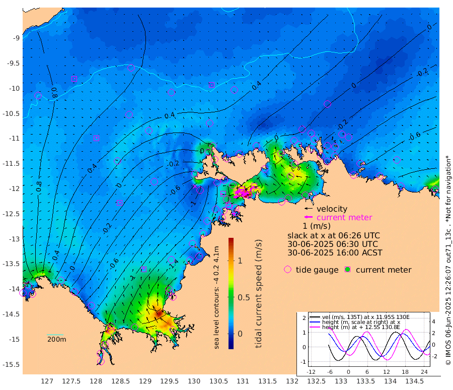 158cm/s -101T +4cm/s rms + 6cm/s 51T. Darwin_C1 52m 111cm/s -91T +4cm/s rms + 7cm/s -161T. Darwin_CW1 22m 74cm/s -106T +4cm/s rms + 8cm/s 61T. Darwin_CW2 34m 77cm/s -135T +3cm/s rms + 9cm/s 98T. Darwin_CW3 22m 115cm/s -91T +5cm/s rms + 7cm/s 88T. Darwin_C3 56m 85cm/s -116T +2cm/s rms + 9cm/s -126T. Darwin_CTbW 22m 9cm/s 149T +9cm/s rms + 2cm/s -110T. NWSLYN 196m 22cm/s -100T +1cm/s rms + 1cm/s -47T. DARBGF 30m 10cm/s 43T +7cm/s rms + 2cm/s -137T. ITFTIS 464m 13cm/s 41T +9cm/s rms + 1cm/s 74T. ITFMHB 146m 18cm/s 15T +4cm/s rms + 1cm/s -134T. ITFJBG 61m 14cm/s 51T +6cm/s rms + 4cm/s 121T. ITFFTB 108m 19cm/s -83T +4cm/s rms + 3cm/s 80T. NRSDAR 19m 98cm Carronade Island 102cm Guy Point 109cm Napier Broome Bay 9cm Lesueur Island -93cm Reveley Island -53cm Rocky Island -156cm Cape Domett -137cm Lacrosse Island -170cm Adolphus Island -90cm Pender Point -71cm Wyndham 25cm The Boxers 17cm Unnamed Shoal 73cm Loxton Shoal -187cm Pelican Island 32cm Calder Shoal 46cm Evans Shoal -204cm Quoin Island -177cm Port Keats -176cm Jones Point -184cm Catfish Island -123cm Cape Scott Offshore -113cm Cape Ford -140cm Anson Bay 33cm Goodrich Bank -131cm Peron Island North -117cm Point Jenny -113cm Native Point -138cm Fish Reef -137cm Tapa Bay -44cm Point Fawcett (Offshore) -151cm Burge Point -136cm Munkunuwa -98cm Beagle A -159cm Parsons Bank -148cm Fenton Patches 41cm Lynedoch Bank -154cm Hancox Shoal Area -161cm Nightcliff -171cm Darwin -145cm Charles Point Patches -125cm Glyde Point -107cm Chambers Bay -104cm Point Stuart -112cm Cape Hotham -91cm Christine Reef -114cm West Alligator Head -101cm East Field Island -93cm Two Hills Bay -35cm Newby Shoal -75cm Camp Point -139cm Medina Inlet South -32cm South Barlow Point -5cm St. Asaph Bay 30cm Cape Van Dieman 25cm Snake Bay 23cm Cache Point 86cm Echo Shoal 3cm Point Jahleel (Off) -40cm Cape Don -7cm Port Essington -11cm Smith Point - West -6cm NW Peacock Island 9cm North Of Jones Shoal 1cm Peacock Island -21cm Point David -14cm D'urville Point 5cm Money Shoal -27cm Copeland Island -41cm Cape Cockburn -21cm One Tree Point -27cm Hogmany Shoal -18cm New Year Island - West -24cm Grant Island -49cm Aurari Bay -62cm Cuthbert Point -46cm North Goulburn Island -54cm Paxie Shoal -81cm Entrance Island -101cm Yabooma Island