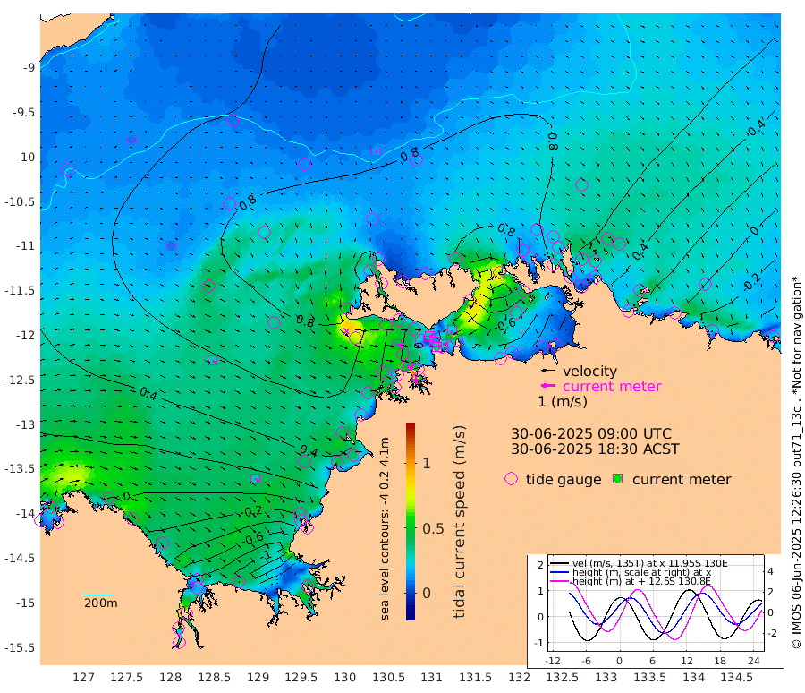 32cm/s 81T +4cm/s rms + 6cm/s 51T. Darwin_C1 52m 31cm/s 81T +4cm/s rms + 7cm/s -161T. Darwin_CW1 22m 5cm/s 84T +4cm/s rms + 8cm/s 61T. Darwin_CW2 34m 22cm/s -155T +3cm/s rms + 9cm/s 98T. Darwin_CW3 22m 11cm/s -82T +5cm/s rms + 7cm/s 88T. Darwin_C3 56m 30cm/s 61T +2cm/s rms + 9cm/s -126T. Darwin_CTbW 22m 13cm/s 145T +9cm/s rms + 2cm/s -110T. NWSLYN 196m 45cm/s 96T +1cm/s rms + 1cm/s -47T. DARBGF 30m 10cm/s 44T +7cm/s rms + 2cm/s -137T. ITFTIS 464m 9cm/s 92T +9cm/s rms + 1cm/s 74T. ITFMHB 146m 31cm/s 136T +4cm/s rms + 1cm/s -134T. ITFJBG 61m 31cm/s 117T +6cm/s rms + 4cm/s 121T. ITFFTB 108m 46cm/s 126T +4cm/s rms + 3cm/s 80T. NRSDAR 19m -39cm Carronade Island -39cm Guy Point -36cm Napier Broome Bay -37cm Lesueur Island -67cm Reveley Island -70cm Rocky Island -121cm Cape Domett -106cm Lacrosse Island -172cm Adolphus Island -208cm Pender Point -235cm Wyndham 49cm The Boxers 73cm Unnamed Shoal 57cm Loxton Shoal -105cm Pelican Island 59cm Calder Shoal 59cm Evans Shoal -211cm Quoin Island -47cm Port Keats -53cm Jones Point -236cm Catfish Island 15cm Cape Scott Offshore 50cm Cape Ford 29cm Anson Bay 70cm Goodrich Bank 24cm Peron Island North 31cm Point Jenny 35cm Native Point 23cm Fish Reef 30cm Tapa Bay 68cm Point Fawcett (Offshore) 10cm Burge Point 38cm Munkunuwa 32cm Beagle A 15cm Parsons Bank 5cm Fenton Patches 61cm Lynedoch Bank 3cm Hancox Shoal Area 8cm Nightcliff 6cm Darwin 28cm Charles Point Patches -42cm Glyde Point -110cm Chambers Bay -125cm Point Stuart -60cm Cape Hotham -99cm Christine Reef -147cm West Alligator Head -178cm East Field Island -75cm Two Hills Bay 37cm Newby Shoal -63cm Camp Point 31cm Medina Inlet South 76cm South Barlow Point 76cm St. Asaph Bay 76cm Cape Van Dieman 79cm Snake Bay 64cm Cache Point 41cm Echo Shoal 48cm Point Jahleel (Off) 18cm Cape Don 53cm Port Essington 51cm Smith Point - West 51cm NW Peacock Island 61cm North Of Jones Shoal 21cm Peacock Island 45cm Point David 52cm D'urville Point 53cm Money Shoal 39cm Copeland Island 43cm Cape Cockburn 44cm One Tree Point 40cm Hogmany Shoal 40cm New Year Island - West 38cm Grant Island 20cm Aurari Bay -1cm Cuthbert Point 23cm North Goulburn Island 0cm Paxie Shoal -35cm Entrance Island -61cm Yabooma Island