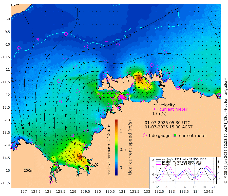 148cm/s -102T +4cm/s rms + 6cm/s 51T. Darwin_C1 52m 106cm/s -90T +4cm/s rms + 7cm/s -161T. Darwin_CW1 22m 80cm/s -108T +4cm/s rms + 8cm/s 61T. Darwin_CW2 34m 56cm/s -128T +3cm/s rms + 9cm/s 98T. Darwin_CW3 22m 99cm/s -92T +5cm/s rms + 7cm/s 88T. Darwin_C3 56m 82cm/s -115T +2cm/s rms + 9cm/s -126T. Darwin_CTbW 22m 1cm/s -165T +9cm/s rms + 2cm/s -110T. NWSLYN 196m 56cm/s -90T +1cm/s rms + 1cm/s -47T. DARBGF 30m 5cm/s 2T +7cm/s rms + 2cm/s -137T. ITFTIS 464m 16cm/s 4T +9cm/s rms + 1cm/s 74T. ITFMHB 146m 35cm/s -21T +4cm/s rms + 1cm/s -134T. ITFJBG 61m 26cm/s -32T +6cm/s rms + 4cm/s 121T. ITFFTB 108m 49cm/s -64T +4cm/s rms + 3cm/s 80T. NRSDAR 19m 108cm Carronade Island 110cm Guy Point 121cm Napier Broome Bay 38cm Lesueur Island -21cm Reveley Island 8cm Rocky Island -29cm Cape Domett -27cm Lacrosse Island -10cm Adolphus Island 99cm Pender Point 133cm Wyndham -13cm The Boxers -28cm Unnamed Shoal 14cm Loxton Shoal -66cm Pelican Island -22cm Calder Shoal -10cm Evans Shoal 0cm Quoin Island -102cm Port Keats -92cm Jones Point 36cm Catfish Island -109cm Cape Scott Offshore -118cm Cape Ford -131cm Anson Bay -25cm Goodrich Bank -124cm Peron Island North -118cm Point Jenny -116cm Native Point -128cm Fish Reef -129cm Tapa Bay -88cm Point Fawcett (Offshore) -126cm Burge Point -137cm Munkunuwa -108cm Beagle A -136cm Parsons Bank -125cm Fenton Patches -12cm Lynedoch Bank -124cm Hancox Shoal Area -138cm Nightcliff -136cm Darwin -132cm Charles Point Patches -63cm Glyde Point -1cm Chambers Bay 18cm Point Stuart -40cm Cape Hotham 2cm Christine Reef 26cm West Alligator Head 60cm East Field Island -13cm Two Hills Bay -58cm Newby Shoal -4cm Camp Point -133cm Medina Inlet South -84cm South Barlow Point -64cm St. Asaph Bay -32cm Cape Van Dieman -38cm Snake Bay -30cm Cache Point 32cm Echo Shoal -34cm Point Jahleel (Off) -42cm Cape Don -42cm Port Essington -48cm Smith Point - West -42cm NW Peacock Island -39cm North Of Jones Shoal -15cm Peacock Island -41cm Point David -49cm D'urville Point -31cm Money Shoal -43cm Copeland Island -59cm Cape Cockburn -43cm One Tree Point -37cm Hogmany Shoal -36cm New Year Island - West -39cm Grant Island -47cm Aurari Bay -38cm Cuthbert Point -45cm North Goulburn Island -25cm Paxie Shoal -26cm Entrance Island -22cm Yabooma Island