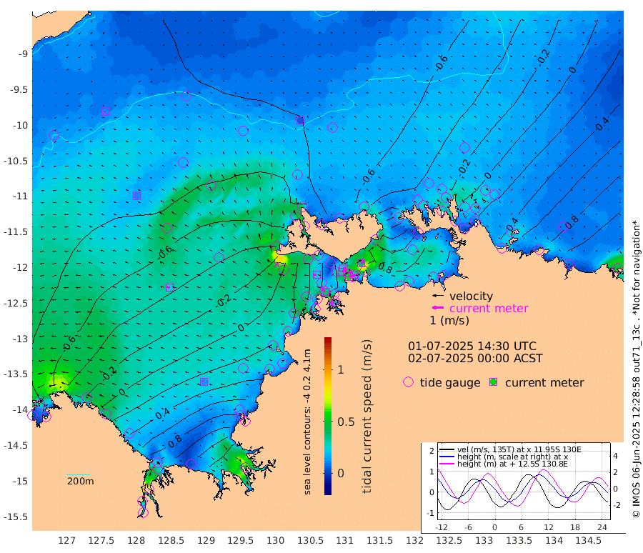 53cm/s 81T +4cm/s rms + 6cm/s 51T. Darwin_C1 52m 31cm/s 90T +4cm/s rms + 7cm/s -161T. Darwin_CW1 22m 30cm/s 69T +4cm/s rms + 8cm/s 61T. Darwin_CW2 34m 38cm/s 46T +3cm/s rms + 9cm/s 98T. Darwin_CW3 22m 54cm/s 89T +5cm/s rms + 7cm/s 88T. Darwin_C3 56m 24cm/s 65T +2cm/s rms + 9cm/s -126T. Darwin_CTbW 22m 5cm/s -23T +9cm/s rms + 2cm/s -110T. NWSLYN 196m 23cm/s -80T +1cm/s rms + 1cm/s -47T. DARBGF 30m 11cm/s -122T +7cm/s rms + 2cm/s -137T. ITFTIS 464m 11cm/s -80T +9cm/s rms + 1cm/s 74T. ITFMHB 146m 15cm/s -62T +4cm/s rms + 1cm/s -134T. ITFJBG 61m 25cm/s -70T +6cm/s rms + 4cm/s 121T. ITFFTB 108m 37cm/s -51T +4cm/s rms + 3cm/s 80T. NRSDAR 19m -53cm Carronade Island -51cm Guy Point -60cm Napier Broome Bay -10cm Lesueur Island 56cm Reveley Island -14cm Rocky Island 115cm Cape Domett 100cm Lacrosse Island 143cm Adolphus Island 140cm Pender Point 149cm Wyndham -67cm The Boxers -58cm Unnamed Shoal -93cm Loxton Shoal 133cm Pelican Island -77cm Calder Shoal -72cm Evans Shoal 207cm Quoin Island 83cm Port Keats 96cm Jones Point 250cm Catfish Island 38cm Cape Scott Offshore -25cm Cape Ford 44cm Anson Bay -71cm Goodrich Bank 35cm Peron Island North 12cm Point Jenny 6cm Native Point 27cm Fish Reef 28cm Tapa Bay -32cm Point Fawcett (Offshore) 34cm Burge Point 19cm Munkunuwa -14cm Beagle A 52cm Parsons Bank 25cm Fenton Patches -66cm Lynedoch Bank 60cm Hancox Shoal Area 50cm Nightcliff 61cm Darwin 37cm Charles Point Patches 74cm Glyde Point 118cm Chambers Bay 129cm Point Stuart 89cm Cape Hotham 92cm Christine Reef 145cm West Alligator Head 154cm East Field Island 93cm Two Hills Bay -53cm Newby Shoal 72cm Camp Point 26cm Medina Inlet South -49cm South Barlow Point -60cm St. Asaph Bay -70cm Cape Van Dieman -67cm Snake Bay -59cm Cache Point -91cm Echo Shoal -37cm Point Jahleel (Off) 12cm Cape Don -22cm Port Essington -24cm Smith Point - West -21cm NW Peacock Island -32cm North Of Jones Shoal -8cm Peacock Island 16cm Point David -16cm D'urville Point -17cm Money Shoal 23cm Copeland Island 31cm Cape Cockburn 12cm One Tree Point 32cm Hogmany Shoal 9cm New Year Island - West 16cm Grant Island 48cm Aurari Bay 71cm Cuthbert Point 47cm North Goulburn Island 87cm Paxie Shoal 110cm Entrance Island 160cm Yabooma Island