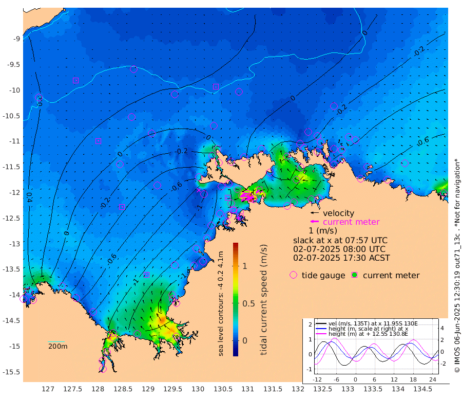 118cm/s -100T +4cm/s rms + 6cm/s 51T. Darwin_C1 52m 84cm/s -91T +4cm/s rms + 7cm/s -161T. Darwin_CW1 22m 66cm/s -105T +4cm/s rms + 8cm/s 61T. Darwin_CW2 34m 59cm/s -136T +3cm/s rms + 9cm/s 98T. Darwin_CW3 22m 110cm/s -91T +5cm/s rms + 7cm/s 88T. Darwin_C3 56m 67cm/s -115T +2cm/s rms + 9cm/s -126T. Darwin_CTbW 22m 7cm/s 161T +9cm/s rms + 2cm/s -110T. NWSLYN 196m 20cm/s -102T +1cm/s rms + 1cm/s -47T. DARBGF 30m 7cm/s 48T +7cm/s rms + 2cm/s -137T. ITFTIS 464m 10cm/s 36T +9cm/s rms + 1cm/s 74T. ITFMHB 146m 13cm/s 25T +4cm/s rms + 1cm/s -134T. ITFJBG 61m 10cm/s 55T +6cm/s rms + 4cm/s 121T. ITFFTB 108m 14cm/s -85T +4cm/s rms + 3cm/s 80T. NRSDAR 19m 37cm Carronade Island 39cm Guy Point 43cm Napier Broome Bay -34cm Lesueur Island -102cm Reveley Island -57cm Rocky Island -158cm Cape Domett -145cm Lacrosse Island -173cm Adolphus Island -109cm Pender Point -103cm Wyndham -8cm The Boxers -10cm Unnamed Shoal 32cm Loxton Shoal -176cm Pelican Island -3cm Calder Shoal 14cm Evans Shoal -208cm Quoin Island -164cm Port Keats -158cm Jones Point -220cm Catfish Island -126cm Cape Scott Offshore -89cm Cape Ford -139cm Anson Bay 8cm Goodrich Bank -130cm Peron Island North -114cm Point Jenny -110cm Native Point -132cm Fish Reef -129cm Tapa Bay -61cm Point Fawcett (Offshore) -140cm Burge Point -122cm Munkunuwa -100cm Beagle A -144cm Parsons Bank -137cm Fenton Patches 13cm Lynedoch Bank -142cm Hancox Shoal Area -153cm Nightcliff -158cm Darwin -138cm Charles Point Patches -122cm Glyde Point -115cm Chambers Bay -109cm Point Stuart -113cm Cape Hotham -99cm Christine Reef -119cm West Alligator Head -110cm East Field Island -100cm Two Hills Bay -60cm Newby Shoal -82cm Camp Point -132cm Medina Inlet South -45cm South Barlow Point -25cm St. Asaph Bay 6cm Cape Van Dieman 0cm Snake Bay -3cm Cache Point 38cm Echo Shoal -18cm Point Jahleel (Off) -55cm Cape Don -24cm Port Essington -29cm Smith Point - West -24cm NW Peacock Island -17cm North Of Jones Shoal -7cm Peacock Island -33cm Point David -30cm D'urville Point -15cm Money Shoal -37cm Copeland Island -58cm Cape Cockburn -37cm One Tree Point -41cm Hogmany Shoal -34cm New Year Island - West -38cm Grant Island -56cm Aurari Bay -66cm Cuthbert Point -56cm North Goulburn Island -62cm Paxie Shoal -82cm Entrance Island -100cm Yabooma Island