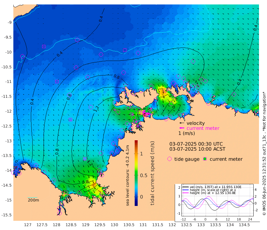 119cm/s 78T +4cm/s rms + 6cm/s 51T. Darwin_C1 52m 83cm/s 90T +4cm/s rms + 7cm/s -161T. Darwin_CW1 22m 72cm/s 74T +4cm/s rms + 8cm/s 61T. Darwin_CW2 34m 55cm/s 48T +3cm/s rms + 9cm/s 98T. Darwin_CW3 22m 103cm/s 89T +5cm/s rms + 7cm/s 88T. Darwin_C3 56m 68cm/s 65T +2cm/s rms + 9cm/s -126T. Darwin_CTbW 22m 2cm/s 41T +9cm/s rms + 2cm/s -110T. NWSLYN 196m 46cm/s 87T +1cm/s rms + 1cm/s -47T. DARBGF 30m 3cm/s 33T +7cm/s rms + 2cm/s -137T. ITFTIS 464m 7cm/s 163T +9cm/s rms + 1cm/s 74T. ITFMHB 146m 22cm/s 166T +4cm/s rms + 1cm/s -134T. ITFJBG 61m 17cm/s 139T +6cm/s rms + 4cm/s 121T. ITFFTB 108m 44cm/s 114T +4cm/s rms + 3cm/s 80T. NRSDAR 19m -24cm Carronade Island -29cm Guy Point -23cm Napier Broome Bay 35cm Lesueur Island 70cm Reveley Island 72cm Rocky Island 88cm Cape Domett 80cm Lacrosse Island 77cm Adolphus Island -4cm Pender Point -29cm Wyndham 71cm The Boxers 77cm Unnamed Shoal 42cm Loxton Shoal 99cm Pelican Island 70cm Calder Shoal 45cm Evans Shoal 62cm Quoin Island 139cm Port Keats 115cm Jones Point 11cm Catfish Island 128cm Cape Scott Offshore 136cm Cape Ford 144cm Anson Bay 59cm Goodrich Bank 137cm Peron Island North 137cm Point Jenny 139cm Native Point 144cm Fish Reef 146cm Tapa Bay 108cm Point Fawcett (Offshore) 152cm Burge Point 146cm Munkunuwa 137cm Beagle A 148cm Parsons Bank 152cm Fenton Patches 49cm Lynedoch Bank 136cm Hancox Shoal Area 155cm Nightcliff 158cm Darwin 154cm Charles Point Patches 88cm Glyde Point 29cm Chambers Bay 8cm Point Stuart 59cm Cape Hotham 31cm Christine Reef 2cm West Alligator Head -23cm East Field Island 36cm Two Hills Bay 121cm Newby Shoal 37cm Camp Point 152cm Medina Inlet South 110cm South Barlow Point 89cm St. Asaph Bay 62cm Cape Van Dieman 71cm Snake Bay 60cm Cache Point 22cm Echo Shoal 60cm Point Jahleel (Off) 65cm Cape Don 61cm Port Essington 66cm Smith Point - West 60cm NW Peacock Island 58cm North Of Jones Shoal 20cm Peacock Island 47cm Point David 64cm D'urville Point 49cm Money Shoal 45cm Copeland Island 65cm Cape Cockburn 53cm One Tree Point 44cm Hogmany Shoal 52cm New Year Island - West 52cm Grant Island 46cm Aurari Bay 39cm Cuthbert Point 49cm North Goulburn Island 24cm Paxie Shoal 24cm Entrance Island 1cm Yabooma Island