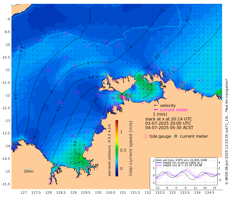 69cm/s -102T +4cm/s rms + 6cm/s 51T. Darwin_C1 52m 39cm/s -90T +4cm/s rms + 7cm/s -161T. Darwin_CW1 22m 48cm/s -107T +4cm/s rms + 8cm/s 61T. Darwin_CW2 34m 28cm/s -129T +3cm/s rms + 9cm/s 98T. Darwin_CW3 22m 70cm/s -92T +5cm/s rms + 7cm/s 88T. Darwin_C3 56m 43cm/s -115T +2cm/s rms + 9cm/s -126T. Darwin_CTbW 22m 2cm/s -17T +9cm/s rms + 2cm/s -110T. NWSLYN 196m 16cm/s -94T +1cm/s rms + 1cm/s -47T. DARBGF 30m 3cm/s 110T +7cm/s rms + 2cm/s -137T. ITFTIS 464m 4cm/s 119T +9cm/s rms + 1cm/s 74T. ITFMHB 146m 8cm/s 4T +4cm/s rms + 1cm/s -134T. ITFJBG 61m 5cm/s 55T +6cm/s rms + 4cm/s 121T. ITFFTB 108m 14cm/s -78T +4cm/s rms + 3cm/s 80T. NRSDAR 19m 74cm Carronade Island 76cm Guy Point 68cm Napier Broome Bay 30cm Lesueur Island -16cm Reveley Island -22cm Rocky Island -41cm Cape Domett -26cm Lacrosse Island -36cm Adolphus Island -7cm Pender Point 10cm Wyndham 6cm The Boxers -15cm Unnamed Shoal 29cm Loxton Shoal -61cm Pelican Island 17cm Calder Shoal 21cm Evans Shoal -55cm Quoin Island -64cm Port Keats -62cm Jones Point -50cm Catfish Island -51cm Cape Scott Offshore -6cm Cape Ford -67cm Anson Bay 7cm Goodrich Bank -49cm Peron Island North -46cm Point Jenny -48cm Native Point -49cm Fish Reef -60cm Tapa Bay -18cm Point Fawcett (Offshore) -52cm Burge Point -59cm Munkunuwa -27cm Beagle A -69cm Parsons Bank -48cm Fenton Patches 8cm Lynedoch Bank -64cm Hancox Shoal Area -62cm Nightcliff -74cm Darwin -65cm Charles Point Patches -42cm Glyde Point -24cm Chambers Bay -16cm Point Stuart -28cm Cape Hotham -15cm Christine Reef -15cm West Alligator Head -1cm East Field Island -22cm Two Hills Bay -4cm Newby Shoal -19cm Camp Point -60cm Medina Inlet South -21cm South Barlow Point -5cm St. Asaph Bay 4cm Cape Van Dieman -3cm Snake Bay 7cm Cache Point 47cm Echo Shoal -1cm Point Jahleel (Off) -20cm Cape Don -13cm Port Essington -12cm Smith Point - West -12cm NW Peacock Island -2cm North Of Jones Shoal -2cm Peacock Island -28cm Point David -17cm D'urville Point -11cm Money Shoal -28cm Copeland Island -30cm Cape Cockburn -25cm One Tree Point -30cm Hogmany Shoal -24cm New Year Island - West -28cm Grant Island -37cm Aurari Bay -43cm Cuthbert Point -37cm North Goulburn Island -45cm Paxie Shoal -49cm Entrance Island -52cm Yabooma Island