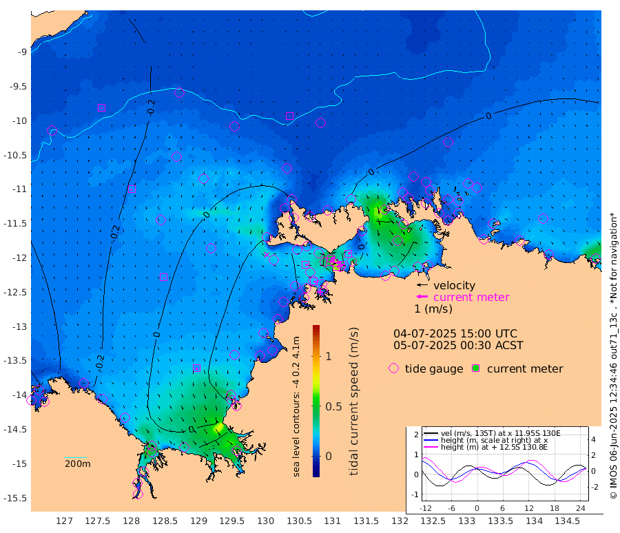 66cm/s 78T +4cm/s rms + 6cm/s 51T. Darwin_C1 52m 37cm/s 92T +4cm/s rms + 7cm/s -161T. Darwin_CW1 22m 47cm/s 73T +4cm/s rms + 8cm/s 61T. Darwin_CW2 34m 24cm/s 54T +3cm/s rms + 9cm/s 98T. Darwin_CW3 22m 66cm/s 87T +5cm/s rms + 7cm/s 88T. Darwin_C3 56m 41cm/s 66T +2cm/s rms + 9cm/s -126T. Darwin_CTbW 22m 2cm/s 156T +9cm/s rms + 2cm/s -110T. NWSLYN 196m 24cm/s 89T +1cm/s rms + 1cm/s -47T. DARBGF 30m 6cm/s -163T +7cm/s rms + 2cm/s -137T. ITFTIS 464m 14cm/s -167T +9cm/s rms + 1cm/s 74T. ITFMHB 146m 15cm/s 170T +4cm/s rms + 1cm/s -134T. ITFJBG 61m 14cm/s 166T +6cm/s rms + 4cm/s 121T. ITFFTB 108m 21cm/s 113T +4cm/s rms + 3cm/s 80T. NRSDAR 19m -63cm Carronade Island -59cm Guy Point -68cm Napier Broome Bay -28cm Lesueur Island 11cm Reveley Island -20cm Rocky Island 19cm Cape Domett 19cm Lacrosse Island 9cm Adolphus Island -29cm Pender Point -43cm Wyndham -14cm The Boxers -4cm Unnamed Shoal -29cm Loxton Shoal 48cm Pelican Island -12cm Calder Shoal -13cm Evans Shoal 27cm Quoin Island 39cm Port Keats 42cm Jones Point 48cm Catfish Island 54cm Cape Scott Offshore 1cm Cape Ford 65cm Anson Bay -9cm Goodrich Bank 49cm Peron Island North 44cm Point Jenny 43cm Native Point 43cm Fish Reef 55cm Tapa Bay 27cm Point Fawcett (Offshore) 36cm Burge Point 54cm Munkunuwa 25cm Beagle A 53cm Parsons Bank 35cm Fenton Patches -15cm Lynedoch Bank 56cm Hancox Shoal Area 59cm Nightcliff 51cm Darwin 48cm Charles Point Patches 26cm Glyde Point 18cm Chambers Bay 4cm Point Stuart 20cm Cape Hotham 6cm Christine Reef 5cm West Alligator Head -12cm East Field Island 13cm Two Hills Bay -12cm Newby Shoal 2cm Camp Point 49cm Medina Inlet South 17cm South Barlow Point 11cm St. Asaph Bay -6cm Cape Van Dieman -3cm Snake Bay -5cm Cache Point -34cm Echo Shoal 1cm Point Jahleel (Off) 11cm Cape Don 4cm Port Essington 9cm Smith Point - West 6cm NW Peacock Island 4cm North Of Jones Shoal 2cm Peacock Island 15cm Point David 10cm D'urville Point -1cm Money Shoal 17cm Copeland Island 15cm Cape Cockburn 12cm One Tree Point 17cm Hogmany Shoal 8cm New Year Island - West 11cm Grant Island 21cm Aurari Bay 20cm Cuthbert Point 20cm North Goulburn Island 23cm Paxie Shoal 26cm Entrance Island 34cm Yabooma Island