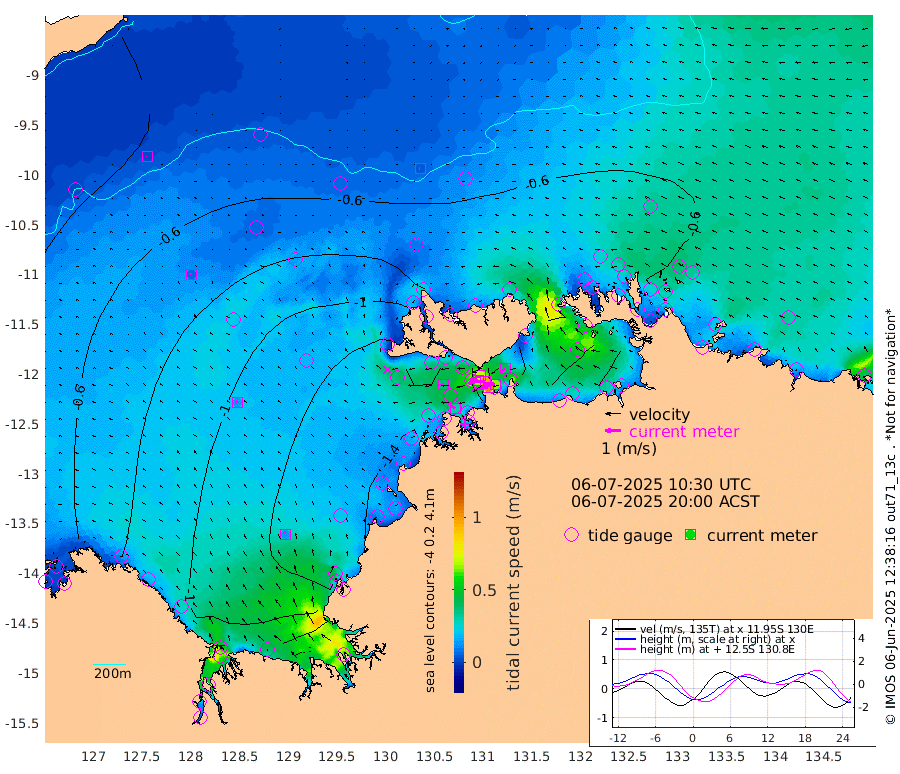 102cm/s -102T +4cm/s rms + 6cm/s 51T. Darwin_C1 52m 66cm/s -90T +4cm/s rms + 7cm/s -161T. Darwin_CW1 22m 67cm/s -107T +4cm/s rms + 8cm/s 61T. Darwin_CW2 34m 39cm/s -130T +3cm/s rms + 9cm/s 98T. Darwin_CW3 22m 95cm/s -91T +5cm/s rms + 7cm/s 88T. Darwin_C3 56m 71cm/s -115T +2cm/s rms + 9cm/s -126T. Darwin_CTbW 22m 4cm/s -105T +9cm/s rms + 2cm/s -110T. NWSLYN 196m 38cm/s -94T +1cm/s rms + 1cm/s -47T. DARBGF 30m 3cm/s -157T +7cm/s rms + 2cm/s -137T. ITFTIS 464m 8cm/s -17T +9cm/s rms + 1cm/s 74T. ITFMHB 146m 15cm/s -16T +4cm/s rms + 1cm/s -134T. ITFJBG 61m 14cm/s -46T +6cm/s rms + 4cm/s 121T. ITFFTB 108m 30cm/s -64T +4cm/s rms + 3cm/s 80T. NRSDAR 19m -41cm Carronade Island -42cm Guy Point -44cm Napier Broome Bay -94cm Lesueur Island -108cm Reveley Island -50cm Rocky Island -126cm Cape Domett -132cm Lacrosse Island -113cm Adolphus Island -63cm Pender Point -59cm Wyndham -81cm The Boxers -90cm Unnamed Shoal -46cm Loxton Shoal -135cm Pelican Island -80cm Calder Shoal -48cm Evans Shoal -124cm Quoin Island -144cm Port Keats -131cm Jones Point -140cm Catfish Island -146cm Cape Scott Offshore -116cm Cape Ford -158cm Anson Bay -55cm Goodrich Bank -144cm Peron Island North -142cm Point Jenny -141cm Native Point -144cm Fish Reef -151cm Tapa Bay -114cm Point Fawcett (Offshore) -147cm Burge Point -133cm Munkunuwa -135cm Beagle A -139cm Parsons Bank -149cm Fenton Patches -46cm Lynedoch Bank -142cm Hancox Shoal Area -163cm Nightcliff -153cm Darwin -150cm Charles Point Patches -109cm Glyde Point -82cm Chambers Bay -66cm Point Stuart -93cm Cape Hotham -76cm Christine Reef -67cm West Alligator Head -52cm East Field Island -78cm Two Hills Bay -122cm Newby Shoal -73cm Camp Point -145cm Medina Inlet South -97cm South Barlow Point -86cm St. Asaph Bay -58cm Cape Van Dieman -65cm Snake Bay -63cm Cache Point -41cm Echo Shoal -66cm Point Jahleel (Off) -75cm Cape Don -60cm Port Essington -65cm Smith Point - West -60cm NW Peacock Island -62cm North Of Jones Shoal -22cm Peacock Island -56cm Point David -63cm D'urville Point -51cm Money Shoal -54cm Copeland Island -75cm Cape Cockburn -60cm One Tree Point -65cm Hogmany Shoal -62cm New Year Island - West -60cm Grant Island -60cm Aurari Bay -55cm Cuthbert Point -60cm North Goulburn Island -55cm Paxie Shoal -54cm Entrance Island -47cm Yabooma Island