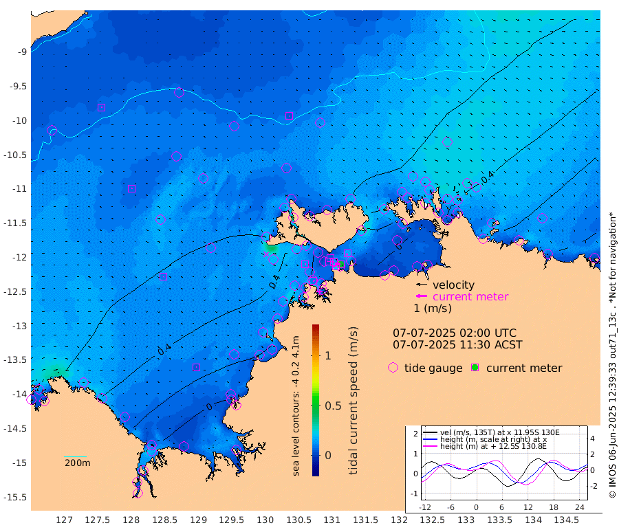 22cm/s -99T +4cm/s rms + 6cm/s 51T. Darwin_C1 52m 47cm/s -91T +4cm/s rms + 7cm/s -161T. Darwin_CW1 22m 2cm/s -105T +4cm/s rms + 8cm/s 61T. Darwin_CW2 34m 16cm/s -138T +3cm/s rms + 9cm/s 98T. Darwin_CW3 22m 14cm/s -92T +5cm/s rms + 7cm/s 88T. Darwin_C3 56m 4cm/s -109T +2cm/s rms + 9cm/s -126T. Darwin_CTbW 22m 5cm/s 122T +9cm/s rms + 2cm/s -110T. NWSLYN 196m 11cm/s 94T +1cm/s rms + 1cm/s -47T. DARBGF 30m 7cm/s 29T +7cm/s rms + 2cm/s -137T. ITFTIS 464m 7cm/s 51T +9cm/s rms + 1cm/s 74T. ITFMHB 146m 4cm/s 81T +4cm/s rms + 1cm/s -134T. ITFJBG 61m 9cm/s 87T +6cm/s rms + 4cm/s 121T. ITFFTB 108m 10cm/s 129T +4cm/s rms + 3cm/s 80T. NRSDAR 19m 62cm Carronade Island 61cm Guy Point 66cm Napier Broome Bay 53cm Lesueur Island 16cm Reveley Island 12cm Rocky Island -5cm Cape Domett 0cm Lacrosse Island -16cm Adolphus Island -19cm Pender Point -19cm Wyndham 65cm The Boxers 71cm Unnamed Shoal 73cm Loxton Shoal -21cm Pelican Island 72cm Calder Shoal 61cm Evans Shoal -49cm Quoin Island 5cm Port Keats -9cm Jones Point -89cm Catfish Island 18cm Cape Scott Offshore 44cm Cape Ford 17cm Anson Bay 63cm Goodrich Bank 26cm Peron Island North 28cm Point Jenny 31cm Native Point 21cm Fish Reef 24cm Tapa Bay 48cm Point Fawcett (Offshore) 25cm Burge Point 21cm Munkunuwa 39cm Beagle A 21cm Parsons Bank 24cm Fenton Patches 62cm Lynedoch Bank 15cm Hancox Shoal Area 20cm Nightcliff 17cm Darwin 25cm Charles Point Patches 5cm Glyde Point -14cm Chambers Bay -22cm Point Stuart 1cm Cape Hotham -5cm Christine Reef -29cm West Alligator Head -36cm East Field Island -1cm Two Hills Bay 70cm Newby Shoal 3cm Camp Point 25cm Medina Inlet South 57cm South Barlow Point 57cm St. Asaph Bay 64cm Cape Van Dieman 69cm Snake Bay 61cm Cache Point 67cm Echo Shoal 53cm Point Jahleel (Off) 35cm Cape Don 49cm Port Essington 50cm Smith Point - West 52cm NW Peacock Island 55cm North Of Jones Shoal 19cm Peacock Island 45cm Point David 51cm D'urville Point 51cm Money Shoal 40cm Copeland Island 54cm Cape Cockburn 45cm One Tree Point 50cm Hogmany Shoal 49cm New Year Island - West 48cm Grant Island 28cm Aurari Bay 23cm Cuthbert Point 38cm North Goulburn Island 17cm Paxie Shoal 14cm Entrance Island -7cm Yabooma Island