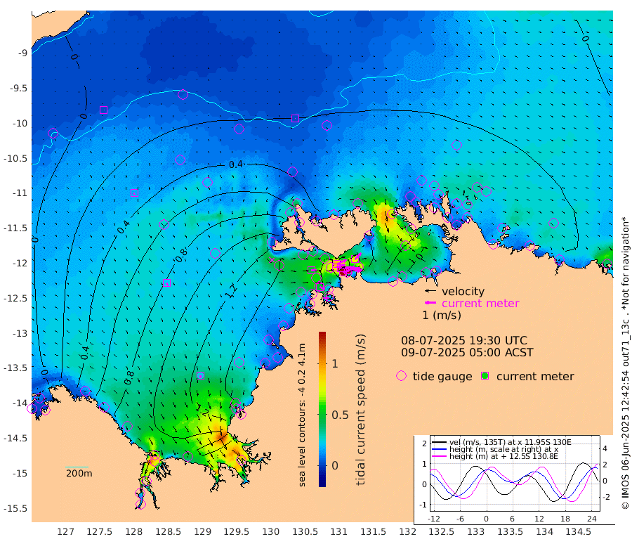 163cm/s 77T +4cm/s rms + 6cm/s 51T. Darwin_C1 52m 129cm/s 91T +4cm/s rms + 7cm/s -161T. Darwin_CW1 22m 84cm/s 74T +4cm/s rms + 8cm/s 61T. Darwin_CW2 34m 78cm/s 47T +3cm/s rms + 9cm/s 98T. Darwin_CW3 22m 121cm/s 89T +5cm/s rms + 7cm/s 88T. Darwin_C3 56m 92cm/s 66T +2cm/s rms + 9cm/s -126T. Darwin_CTbW 22m 2cm/s 42T +9cm/s rms + 2cm/s -110T. NWSLYN 196m 49cm/s 86T +1cm/s rms + 1cm/s -47T. DARBGF 30m 2cm/s 154T +7cm/s rms + 2cm/s -137T. ITFTIS 464m 17cm/s 178T +9cm/s rms + 1cm/s 74T. ITFMHB 146m 24cm/s 168T +4cm/s rms + 1cm/s -134T. ITFJBG 61m 21cm/s 147T +6cm/s rms + 4cm/s 121T. ITFFTB 108m 47cm/s 115T +4cm/s rms + 3cm/s 80T. NRSDAR 19m -11cm Carronade Island -7cm Guy Point -13cm Napier Broome Bay 55cm Lesueur Island 108cm Reveley Island 64cm Rocky Island 139cm Cape Domett 137cm Lacrosse Island 125cm Adolphus Island 55cm Pender Point 35cm Wyndham 54cm The Boxers 49cm Unnamed Shoal 9cm Loxton Shoal 163cm Pelican Island 50cm Calder Shoal 20cm Evans Shoal 136cm Quoin Island 173cm Port Keats 161cm Jones Point 127cm Catfish Island 161cm Cape Scott Offshore 164cm Cape Ford 177cm Anson Bay 29cm Goodrich Bank 152cm Peron Island North 166cm Point Jenny 164cm Native Point 166cm Fish Reef 177cm Tapa Bay 109cm Point Fawcett (Offshore) 173cm Burge Point 163cm Munkunuwa 152cm Beagle A 160cm Parsons Bank 177cm Fenton Patches 14cm Lynedoch Bank 164cm Hancox Shoal Area 186cm Nightcliff 176cm Darwin 172cm Charles Point Patches 116cm Glyde Point 73cm Chambers Bay 53cm Point Stuart 86cm Cape Hotham 72cm Christine Reef 55cm West Alligator Head 36cm East Field Island 61cm Two Hills Bay 107cm Newby Shoal 64cm Camp Point 167cm Medina Inlet South 87cm South Barlow Point 75cm St. Asaph Bay 32cm Cape Van Dieman 31cm Snake Bay 35cm Cache Point 1cm Echo Shoal 39cm Point Jahleel (Off) 54cm Cape Don 32cm Port Essington 39cm Smith Point - West 28cm NW Peacock Island 27cm North Of Jones Shoal 9cm Peacock Island 16cm Point David 32cm D'urville Point 15cm Money Shoal 16cm Copeland Island 22cm Cape Cockburn 19cm One Tree Point 17cm Hogmany Shoal 19cm New Year Island - West 18cm Grant Island 22cm Aurari Bay 19cm Cuthbert Point 17cm North Goulburn Island 16cm Paxie Shoal 12cm Entrance Island 3cm Yabooma Island