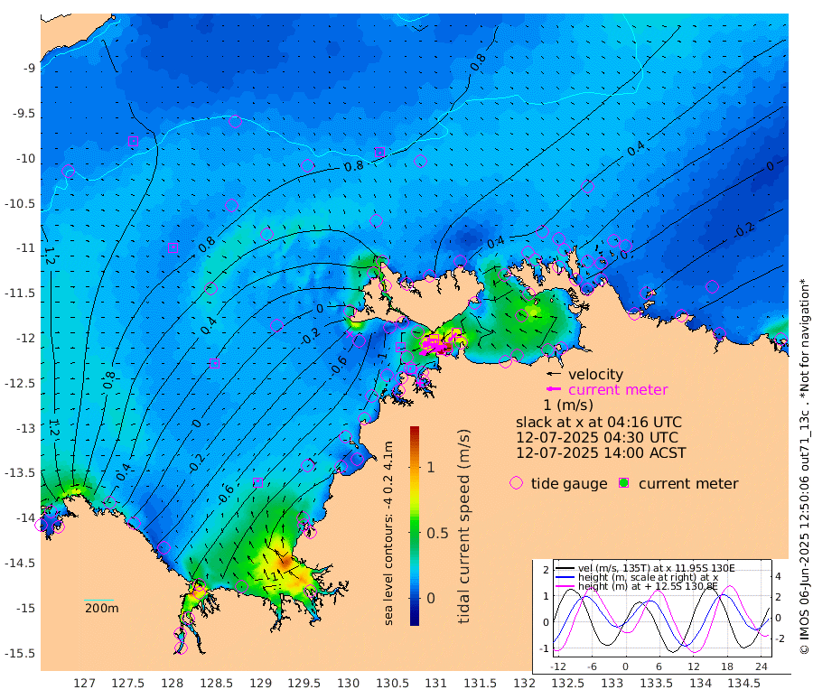 155cm/s -101T +4cm/s rms + 6cm/s 51T. Darwin_C1 52m 117cm/s -91T +4cm/s rms + 7cm/s -161T. Darwin_CW1 22m 68cm/s -107T +4cm/s rms + 8cm/s 61T. Darwin_CW2 34m 77cm/s -135T +3cm/s rms + 9cm/s 98T. Darwin_CW3 22m 96cm/s -91T +5cm/s rms + 7cm/s 88T. Darwin_C3 56m 86cm/s -115T +2cm/s rms + 9cm/s -126T. Darwin_CTbW 22m 10cm/s 146T +9cm/s rms + 2cm/s -110T. NWSLYN 196m 17cm/s -101T +1cm/s rms + 1cm/s -47T. DARBGF 30m 10cm/s 39T +7cm/s rms + 2cm/s -137T. ITFTIS 464m 13cm/s 46T +9cm/s rms + 1cm/s 74T. ITFMHB 146m 17cm/s 14T +4cm/s rms + 1cm/s -134T. ITFJBG 61m 14cm/s 59T +6cm/s rms + 4cm/s 121T. ITFFTB 108m 16cm/s -88T +4cm/s rms + 3cm/s 80T. NRSDAR 19m 124cm Carronade Island 123cm Guy Point 134cm Napier Broome Bay 41cm Lesueur Island -69cm Reveley Island -21cm Rocky Island -129cm Cape Domett -113cm Lacrosse Island -143cm Adolphus Island -75cm Pender Point -53cm Wyndham 61cm The Boxers 48cm Unnamed Shoal 101cm Loxton Shoal -158cm Pelican Island 64cm Calder Shoal 79cm Evans Shoal -184cm Quoin Island -152cm Port Keats -143cm Jones Point -113cm Catfish Island -95cm Cape Scott Offshore -46cm Cape Ford -116cm Anson Bay 66cm Goodrich Bank -88cm Peron Island North -85cm Point Jenny -83cm Native Point -96cm Fish Reef -107cm Tapa Bay -4cm Point Fawcett (Offshore) -120cm Burge Point -111cm Munkunuwa -63cm Beagle A -126cm Parsons Bank -116cm Fenton Patches 71cm Lynedoch Bank -127cm Hancox Shoal Area -143cm Nightcliff -136cm Darwin -106cm Charles Point Patches -93cm Glyde Point -79cm Chambers Bay -71cm Point Stuart -79cm Cape Hotham -69cm Christine Reef -81cm West Alligator Head -71cm East Field Island -56cm Two Hills Bay 6cm Newby Shoal -53cm Camp Point -105cm Medina Inlet South 3cm South Barlow Point 27cm St. Asaph Bay 63cm Cape Van Dieman 58cm Snake Bay 62cm Cache Point 112cm Echo Shoal 39cm Point Jahleel (Off) -2cm Cape Don 36cm Port Essington 31cm Smith Point - West 36cm NW Peacock Island 47cm North Of Jones Shoal 15cm Peacock Island 17cm Point David 30cm D'urville Point 42cm Money Shoal 11cm Copeland Island 15cm Cape Cockburn 20cm One Tree Point 28cm Hogmany Shoal 22cm New Year Island - West 18cm Grant Island -12cm Aurari Bay -15cm Cuthbert Point -2cm North Goulburn Island -24cm Paxie Shoal -40cm Entrance Island -66cm Yabooma Island