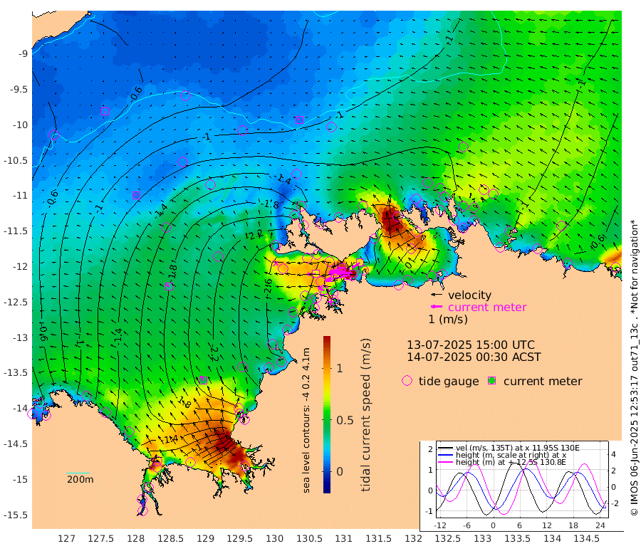 207cm/s -102T +4cm/s rms + 6cm/s 51T. Darwin_C1 52m 147cm/s -89T +4cm/s rms + 7cm/s -161T. Darwin_CW1 22m 117cm/s -108T +4cm/s rms + 8cm/s 61T. Darwin_CW2 34m 82cm/s -125T +3cm/s rms + 9cm/s 98T. Darwin_CW3 22m 145cm/s -91T +5cm/s rms + 7cm/s 88T. Darwin_C3 56m 117cm/s -116T +2cm/s rms + 9cm/s -126T. Darwin_CTbW 22m 10cm/s -50T +9cm/s rms + 2cm/s -110T. NWSLYN 196m 78cm/s -92T +1cm/s rms + 1cm/s -47T. DARBGF 30m 11cm/s -151T +7cm/s rms + 2cm/s -137T. ITFTIS 464m 10cm/s -40T +9cm/s rms + 1cm/s 74T. ITFMHB 146m 41cm/s -25T +4cm/s rms + 1cm/s -134T. ITFJBG 61m 35cm/s -52T +6cm/s rms + 4cm/s 121T. ITFFTB 108m 65cm/s -62T +4cm/s rms + 3cm/s 80T. NRSDAR 19m 13cm Carronade Island 15cm Guy Point 7cm Napier Broome Bay -66cm Lesueur Island -119cm Reveley Island -81cm Rocky Island -130cm Cape Domett -122cm Lacrosse Island -71cm Adolphus Island 28cm Pender Point 79cm Wyndham -132cm The Boxers -147cm Unnamed Shoal -73cm Loxton Shoal -149cm Pelican Island -127cm Calder Shoal -82cm Evans Shoal -29cm Quoin Island -225cm Port Keats -202cm Jones Point 65cm Catfish Island -217cm Cape Scott Offshore -344cm Cape Ford -246cm Anson Bay -109cm Goodrich Bank -231cm Peron Island North -258cm Point Jenny -261cm Native Point -255cm Fish Reef -268cm Tapa Bay -200cm Point Fawcett (Offshore) -276cm Burge Point -262cm Munkunuwa -246cm Beagle A -256cm Parsons Bank -266cm Fenton Patches -83cm Lynedoch Bank -235cm Hancox Shoal Area -257cm Nightcliff -266cm Darwin -271cm Charles Point Patches -149cm Glyde Point -34cm Chambers Bay -7cm Point Stuart -95cm Cape Hotham -49cm Christine Reef 8cm West Alligator Head 54cm East Field Island -51cm Two Hills Bay -213cm Newby Shoal -66cm Camp Point -263cm Medina Inlet South -190cm South Barlow Point -162cm St. Asaph Bay -118cm Cape Van Dieman -122cm Snake Bay -113cm Cache Point -34cm Echo Shoal -106cm Point Jahleel (Off) -111cm Cape Don -108cm Port Essington -110cm Smith Point - West -100cm NW Peacock Island -93cm North Of Jones Shoal -32cm Peacock Island -86cm Point David -107cm D'urville Point -88cm Money Shoal -80cm Copeland Island -107cm Cape Cockburn -88cm One Tree Point -96cm Hogmany Shoal -87cm New Year Island - West -90cm Grant Island -68cm Aurari Bay -67cm Cuthbert Point -80cm North Goulburn Island -56cm Paxie Shoal -41cm Entrance Island -1cm Yabooma Island