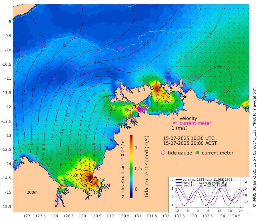 166cm/s 78T +4cm/s rms + 6cm/s 51T. Darwin_C1 52m 121cm/s 88T +4cm/s rms + 7cm/s -161T. Darwin_CW1 22m 77cm/s 74T +4cm/s rms + 8cm/s 61T. Darwin_CW2 34m 69cm/s 51T +3cm/s rms + 9cm/s 98T. Darwin_CW3 22m 102cm/s 88T +5cm/s rms + 7cm/s 88T. Darwin_C3 56m 90cm/s 64T +2cm/s rms + 9cm/s -126T. Darwin_CTbW 22m 9cm/s 135T +9cm/s rms + 2cm/s -110T. NWSLYN 196m 56cm/s 90T +1cm/s rms + 1cm/s -47T. DARBGF 30m 5cm/s -6T +7cm/s rms + 2cm/s -137T. ITFTIS 464m 4cm/s 178T +9cm/s rms + 1cm/s 74T. ITFMHB 146m 36cm/s 163T +4cm/s rms + 1cm/s -134T. ITFJBG 61m 22cm/s 141T +6cm/s rms + 4cm/s 121T. ITFFTB 108m 54cm/s 116T +4cm/s rms + 3cm/s 80T. NRSDAR 19m -114cm Carronade Island -114cm Guy Point -122cm Napier Broome Bay -29cm Lesueur Island 46cm Reveley Island -17cm Rocky Island 56cm Cape Domett 45cm Lacrosse Island 13cm Adolphus Island -86cm Pender Point -136cm Wyndham 35cm The Boxers 68cm Unnamed Shoal -13cm Loxton Shoal 100cm Pelican Island 31cm Calder Shoal 14cm Evans Shoal -12cm Quoin Island 148cm Port Keats 145cm Jones Point -97cm Catfish Island 140cm Cape Scott Offshore 240cm Cape Ford 171cm Anson Bay 45cm Goodrich Bank 157cm Peron Island North 168cm Point Jenny 170cm Native Point 169cm Fish Reef 186cm Tapa Bay 115cm Point Fawcett (Offshore) 184cm Burge Point 185cm Munkunuwa 145cm Beagle A 192cm Parsons Bank 172cm Fenton Patches 24cm Lynedoch Bank 176cm Hancox Shoal Area 177cm Nightcliff 192cm Darwin 191cm Charles Point Patches 100cm Glyde Point 13cm Chambers Bay -4cm Point Stuart 65cm Cape Hotham 16cm Christine Reef -17cm West Alligator Head -59cm East Field Island 28cm Two Hills Bay 88cm Newby Shoal 33cm Camp Point 179cm Medina Inlet South 111cm South Barlow Point 83cm St. Asaph Bay 54cm Cape Van Dieman 59cm Snake Bay 49cm Cache Point -50cm Echo Shoal 52cm Point Jahleel (Off) 69cm Cape Don 70cm Port Essington 71cm Smith Point - West 68cm NW Peacock Island 50cm North Of Jones Shoal 20cm Peacock Island 84cm Point David 77cm D'urville Point 61cm Money Shoal 84cm Copeland Island 101cm Cape Cockburn 76cm One Tree Point 101cm Hogmany Shoal 73cm New Year Island - West 82cm Grant Island 81cm Aurari Bay 88cm Cuthbert Point 88cm North Goulburn Island 82cm Paxie Shoal 82cm Entrance Island 75cm Yabooma Island