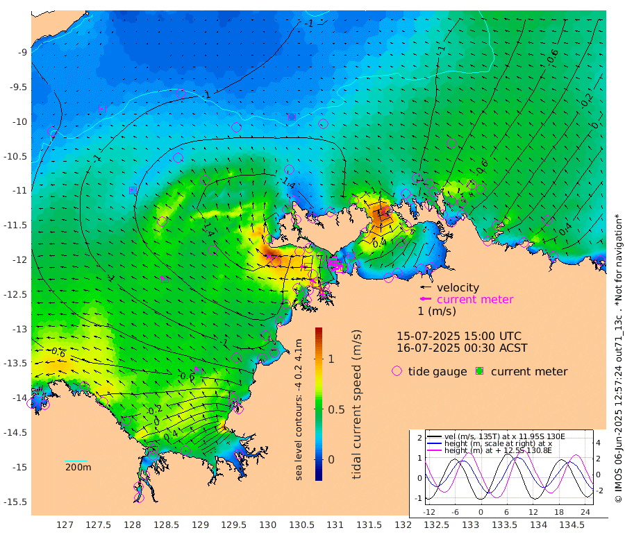 70cm/s -103T +4cm/s rms + 6cm/s 51T. Darwin_C1 52m 54cm/s -87T +4cm/s rms + 7cm/s -161T. Darwin_CW1 22m 44cm/s -107T +4cm/s rms + 8cm/s 61T. Darwin_CW2 34m 11cm/s -91T +3cm/s rms + 9cm/s 98T. Darwin_CW3 22m 44cm/s -93T +5cm/s rms + 7cm/s 88T. Darwin_C3 56m 40cm/s -116T +2cm/s rms + 9cm/s -126T. Darwin_CTbW 22m 10cm/s -32T +9cm/s rms + 2cm/s -110T. NWSLYN 196m 71cm/s -88T +1cm/s rms + 1cm/s -47T. DARBGF 30m 13cm/s -124T +7cm/s rms + 2cm/s -137T. ITFTIS 464m 17cm/s -46T +9cm/s rms + 1cm/s 74T. ITFMHB 146m 43cm/s -34T +4cm/s rms + 1cm/s -134T. ITFJBG 61m 47cm/s -56T +6cm/s rms + 4cm/s 121T. ITFFTB 108m 77cm/s -56T +4cm/s rms + 3cm/s 80T. NRSDAR 19m 6cm Carronade Island 13cm Guy Point -3cm Napier Broome Bay 1cm Lesueur Island 15cm Reveley Island -32cm Rocky Island 66cm Cape Domett 56cm Lacrosse Island 138cm Adolphus Island 196cm Pender Point 242cm Wyndham -108cm The Boxers -116cm Unnamed Shoal -101cm Loxton Shoal 66cm Pelican Island -121cm Calder Shoal -100cm Evans Shoal 209cm Quoin Island -25cm Port Keats -13cm Jones Point 262cm Catfish Island -76cm Cape Scott Offshore -205cm Cape Ford -89cm Anson Bay -110cm Goodrich Bank -100cm Peron Island North -118cm Point Jenny -122cm Native Point -117cm Fish Reef -108cm Tapa Bay -140cm Point Fawcett (Offshore) -110cm Burge Point -130cm Munkunuwa -130cm Beagle A -93cm Parsons Bank -102cm Fenton Patches -92cm Lynedoch Bank -62cm Hancox Shoal Area -79cm Nightcliff -83cm Darwin -104cm Charles Point Patches -1cm Glyde Point 104cm Chambers Bay 122cm Point Stuart 34cm Cape Hotham 84cm Christine Reef 145cm West Alligator Head 188cm East Field Island 60cm Two Hills Bay -135cm Newby Shoal 52cm Camp Point -118cm Medina Inlet South -144cm South Barlow Point -135cm St. Asaph Bay -117cm Cape Van Dieman -118cm Snake Bay -106cm Cache Point -76cm Echo Shoal -84cm Point Jahleel (Off) -47cm Cape Don -78cm Port Essington -78cm Smith Point - West -69cm NW Peacock Island -80cm North Of Jones Shoal -26cm Peacock Island -34cm Point David -71cm D'urville Point -59cm Money Shoal -25cm Copeland Island -40cm Cape Cockburn -42cm One Tree Point -22cm Hogmany Shoal -35cm New Year Island - West -33cm Grant Island 4cm Aurari Bay 25cm Cuthbert Point -8cm North Goulburn Island 45cm Paxie Shoal 75cm Entrance Island 134cm Yabooma Island