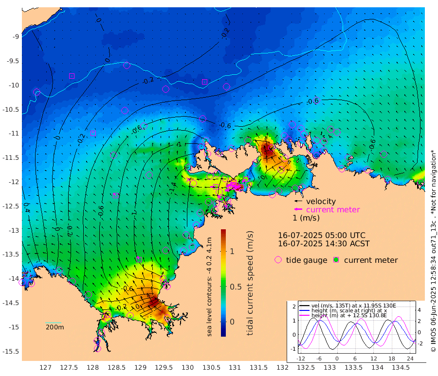 168cm/s -102T +4cm/s rms + 6cm/s 51T. Darwin_C1 52m 118cm/s -90T +4cm/s rms + 7cm/s -161T. Darwin_CW1 22m 95cm/s -108T +4cm/s rms + 8cm/s 61T. Darwin_CW2 34m 63cm/s -126T +3cm/s rms + 9cm/s 98T. Darwin_CW3 22m 112cm/s -92T +5cm/s rms + 7cm/s 88T. Darwin_C3 56m 93cm/s -116T +2cm/s rms + 9cm/s -126T. Darwin_CTbW 22m 1cm/s -106T +9cm/s rms + 2cm/s -110T. NWSLYN 196m 66cm/s -90T +1cm/s rms + 1cm/s -47T. DARBGF 30m 3cm/s -9T +7cm/s rms + 2cm/s -137T. ITFTIS 464m 16cm/s 0T +9cm/s rms + 1cm/s 74T. ITFMHB 146m 44cm/s -20T +4cm/s rms + 1cm/s -134T. ITFJBG 61m 33cm/s -36T +6cm/s rms + 4cm/s 121T. ITFFTB 108m 58cm/s -62T +4cm/s rms + 3cm/s 80T. NRSDAR 19m 114cm Carronade Island 117cm Guy Point 130cm Napier Broome Bay 25cm Lesueur Island -44cm Reveley Island 2cm Rocky Island -45cm Cape Domett -43cm Lacrosse Island -5cm Adolphus Island 118cm Pender Point 168cm Wyndham -34cm The Boxers -64cm Unnamed Shoal 7cm Loxton Shoal -87cm Pelican Island -43cm Calder Shoal -21cm Evans Shoal 34cm Quoin Island -137cm Port Keats -135cm Jones Point 125cm Catfish Island -139cm Cape Scott Offshore -239cm Cape Ford -164cm Anson Bay -47cm Goodrich Bank -163cm Peron Island North -167cm Point Jenny -168cm Native Point -174cm Fish Reef -182cm Tapa Bay -121cm Point Fawcett (Offshore) -182cm Burge Point -189cm Munkunuwa -157cm Beagle A -186cm Parsons Bank -179cm Fenton Patches -24cm Lynedoch Bank -169cm Hancox Shoal Area -179cm Nightcliff -182cm Darwin -178cm Charles Point Patches -90cm Glyde Point 1cm Chambers Bay 20cm Point Stuart -57cm Cape Hotham -2cm Christine Reef 32cm West Alligator Head 75cm East Field Island -18cm Two Hills Bay -95cm Newby Shoal -14cm Camp Point -177cm Medina Inlet South -117cm South Barlow Point -92cm St. Asaph Bay -56cm Cape Van Dieman -61cm Snake Bay -52cm Cache Point 35cm Echo Shoal -54cm Point Jahleel (Off) -57cm Cape Don -59cm Port Essington -67cm Smith Point - West -60cm NW Peacock Island -47cm North Of Jones Shoal -18cm Peacock Island -62cm Point David -69cm D'urville Point -43cm Money Shoal -62cm Copeland Island -78cm Cape Cockburn -56cm One Tree Point -68cm Hogmany Shoal -54cm New Year Island - West -60cm Grant Island -58cm Aurari Bay -52cm Cuthbert Point -61cm North Goulburn Island -33cm Paxie Shoal -41cm Entrance Island -24cm Yabooma Island