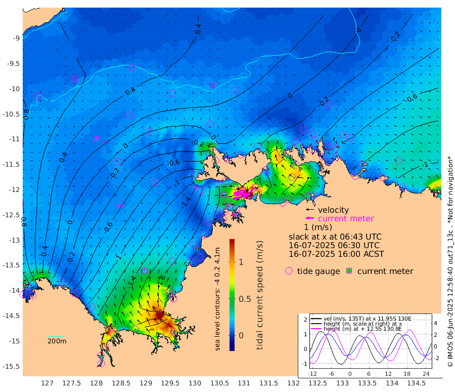 183cm/s -101T +4cm/s rms + 6cm/s 51T. Darwin_C1 52m 130cm/s -90T +4cm/s rms + 7cm/s -161T. Darwin_CW1 22m 100cm/s -107T +4cm/s rms + 8cm/s 61T. Darwin_CW2 34m 86cm/s -135T +3cm/s rms + 9cm/s 98T. Darwin_CW3 22m 147cm/s -91T +5cm/s rms + 7cm/s 88T. Darwin_C3 56m 102cm/s -115T +2cm/s rms + 9cm/s -126T. Darwin_CTbW 22m 8cm/s 164T +9cm/s rms + 2cm/s -110T. NWSLYN 196m 34cm/s -97T +1cm/s rms + 1cm/s -47T. DARBGF 30m 8cm/s 57T +7cm/s rms + 2cm/s -137T. ITFTIS 464m 11cm/s 44T +9cm/s rms + 1cm/s 74T. ITFMHB 146m 22cm/s 8T +4cm/s rms + 1cm/s -134T. ITFJBG 61m 12cm/s 40T +6cm/s rms + 4cm/s 121T. ITFFTB 108m 28cm/s -77T +4cm/s rms + 3cm/s 80T. NRSDAR 19m 93cm Carronade Island 93cm Guy Point 106cm Napier Broome Bay -21cm Lesueur Island -132cm Reveley Island -51cm Rocky Island -193cm Cape Domett -175cm Lacrosse Island -195cm Adolphus Island -97cm Pender Point -68cm Wyndham -2cm The Boxers -27cm Unnamed Shoal 58cm Loxton Shoal -228cm Pelican Island 3cm Calder Shoal 32cm Evans Shoal -211cm Quoin Island -230cm Port Keats -224cm Jones Point -118cm Catfish Island -170cm Cape Scott Offshore -193cm Cape Ford -193cm Anson Bay 8cm Goodrich Bank -177cm Peron Island North -174cm Point Jenny -173cm Native Point -184cm Fish Reef -201cm Tapa Bay -80cm Point Fawcett (Offshore) -213cm Burge Point -193cm Munkunuwa -151cm Beagle A -218cm Parsons Bank -209cm Fenton Patches 23cm Lynedoch Bank -215cm Hancox Shoal Area -225cm Nightcliff -230cm Darwin -202cm Charles Point Patches -161cm Glyde Point -120cm Chambers Bay -109cm Point Stuart -138cm Cape Hotham -111cm Christine Reef -116cm West Alligator Head -94cm East Field Island -106cm Two Hills Bay -80cm Newby Shoal -98cm Camp Point -192cm Medina Inlet South -70cm South Barlow Point -38cm St. Asaph Bay 3cm Cape Van Dieman -5cm Snake Bay -1cm Cache Point 81cm Echo Shoal -22cm Point Jahleel (Off) -62cm Cape Don -27cm Port Essington -35cm Smith Point - West -30cm NW Peacock Island -7cm North Of Jones Shoal -5cm Peacock Island -52cm Point David -39cm D'urville Point -16cm Money Shoal -55cm Copeland Island -71cm Cape Cockburn -44cm One Tree Point -64cm Hogmany Shoal -47cm New Year Island - West -55cm Grant Island -73cm Aurari Bay -84cm Cuthbert Point -72cm North Goulburn Island -80cm Paxie Shoal -109cm Entrance Island -121cm Yabooma Island