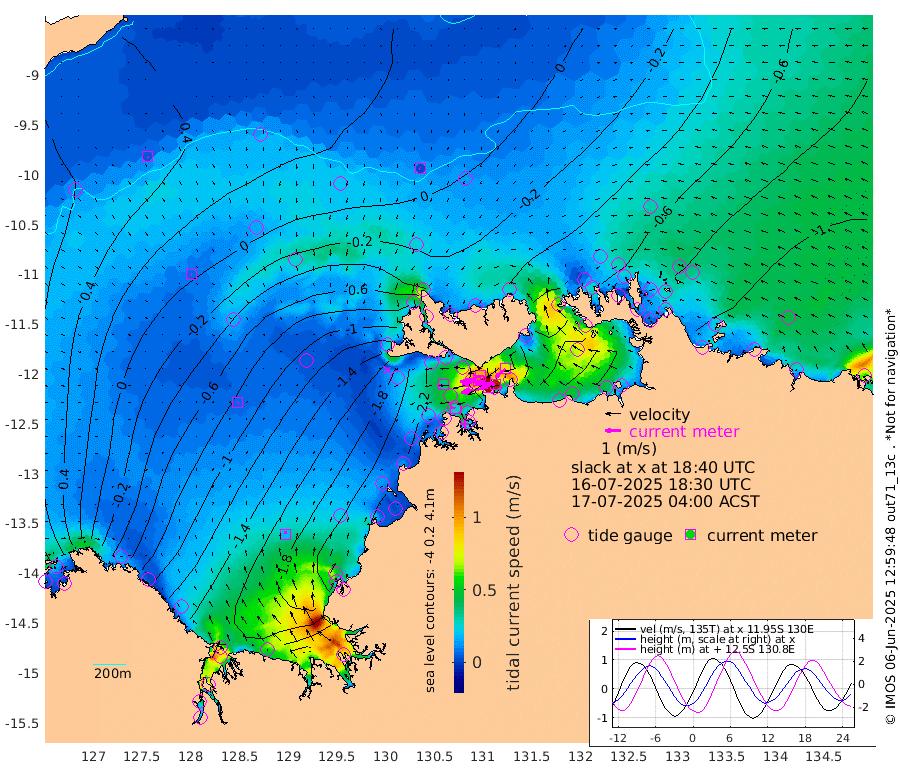 176cm/s -102T +4cm/s rms + 6cm/s 51T. Darwin_C1 52m 125cm/s -90T +4cm/s rms + 7cm/s -161T. Darwin_CW1 22m 108cm/s -107T +4cm/s rms + 8cm/s 61T. Darwin_CW2 34m 82cm/s -131T +3cm/s rms + 9cm/s 98T. Darwin_CW3 22m 158cm/s -91T +5cm/s rms + 7cm/s 88T. Darwin_C3 56m 97cm/s -115T +2cm/s rms + 9cm/s -126T. Darwin_CTbW 22m 3cm/s -68T +9cm/s rms + 2cm/s -110T. NWSLYN 196m 36cm/s -98T +1cm/s rms + 1cm/s -47T. DARBGF 30m 6cm/s 130T +7cm/s rms + 2cm/s -137T. ITFTIS 464m 6cm/s 95T +9cm/s rms + 1cm/s 74T. ITFMHB 146m 18cm/s 7T +4cm/s rms + 1cm/s -134T. ITFJBG 61m 8cm/s 50T +6cm/s rms + 4cm/s 121T. ITFFTB 108m 28cm/s -78T +4cm/s rms + 3cm/s 80T. NRSDAR 19m 84cm Carronade Island 85cm Guy Point 79cm Napier Broome Bay -8cm Lesueur Island -122cm Reveley Island -70cm Rocky Island -183cm Cape Domett -153cm Lacrosse Island -164cm Adolphus Island -100cm Pender Point -61cm Wyndham -25cm The Boxers -49cm Unnamed Shoal 34cm Loxton Shoal -205cm Pelican Island -11cm Calder Shoal 15cm Evans Shoal -185cm Quoin Island -227cm Port Keats -215cm Jones Point -91cm Catfish Island -169cm Cape Scott Offshore -203cm Cape Ford -198cm Anson Bay -8cm Goodrich Bank -175cm Peron Island North -179cm Point Jenny -179cm Native Point -185cm Fish Reef -202cm Tapa Bay -92cm Point Fawcett (Offshore) -219cm Burge Point -202cm Munkunuwa -145cm Beagle A -223cm Parsons Bank -198cm Fenton Patches 4cm Lynedoch Bank -208cm Hancox Shoal Area -215cm Nightcliff -235cm Darwin -212cm Charles Point Patches -154cm Glyde Point -99cm Chambers Bay -88cm Point Stuart -121cm Cape Hotham -94cm Christine Reef -90cm West Alligator Head -62cm East Field Island -92cm Two Hills Bay -93cm Newby Shoal -92cm Camp Point -202cm Medina Inlet South -86cm South Barlow Point -50cm St. Asaph Bay -14cm Cape Van Dieman -23cm Snake Bay -14cm Cache Point 72cm Echo Shoal -29cm Point Jahleel (Off) -74cm Cape Don -44cm Port Essington -42cm Smith Point - West -39cm NW Peacock Island -20cm North Of Jones Shoal -9cm Peacock Island -61cm Point David -47cm D'urville Point -33cm Money Shoal -61cm Copeland Island -79cm Cape Cockburn -58cm One Tree Point -74cm Hogmany Shoal -55cm New Year Island - West -65cm Grant Island -70cm Aurari Bay -90cm Cuthbert Point -80cm North Goulburn Island -97cm Paxie Shoal -107cm Entrance Island -111cm Yabooma Island