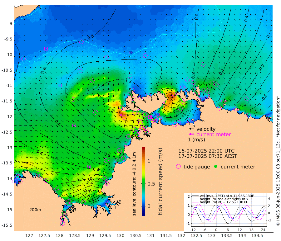 69cm/s 79T +4cm/s rms + 6cm/s 51T. Darwin_C1 52m 54cm/s 87T +4cm/s rms + 7cm/s -161T. Darwin_CW1 22m 38cm/s 74T +4cm/s rms + 8cm/s 61T. Darwin_CW2 34m 8cm/s 161T +3cm/s rms + 9cm/s 98T. Darwin_CW3 22m 28cm/s 85T +5cm/s rms + 7cm/s 88T. Darwin_C3 56m 50cm/s 63T +2cm/s rms + 9cm/s -126T. Darwin_CTbW 22m 3cm/s 141T +9cm/s rms + 2cm/s -110T. NWSLYN 196m 70cm/s 93T +1cm/s rms + 1cm/s -47T. DARBGF 30m 9cm/s 78T +7cm/s rms + 2cm/s -137T. ITFTIS 464m 18cm/s 147T +9cm/s rms + 1cm/s 74T. ITFMHB 146m 47cm/s 147T +4cm/s rms + 1cm/s -134T. ITFJBG 61m 46cm/s 128T +6cm/s rms + 4cm/s 121T. ITFFTB 108m 73cm/s 123T +4cm/s rms + 3cm/s 80T. NRSDAR 19m -34cm Carronade Island -42cm Guy Point -39cm Napier Broome Bay -7cm Lesueur Island -20cm Reveley Island 14cm Rocky Island -71cm Cape Domett -55cm Lacrosse Island -127cm Adolphus Island -210cm Pender Point -252cm Wyndham 83cm The Boxers 99cm Unnamed Shoal 79cm Loxton Shoal -60cm Pelican Island 103cm Calder Shoal 84cm Evans Shoal -198cm Quoin Island 16cm Port Keats 12cm Jones Point -256cm Catfish Island 66cm Cape Scott Offshore 182cm Cape Ford 76cm Anson Bay 95cm Goodrich Bank 95cm Peron Island North 100cm Point Jenny 103cm Native Point 106cm Fish Reef 95cm Tapa Bay 122cm Point Fawcett (Offshore) 93cm Burge Point 116cm Munkunuwa 119cm Beagle A 83cm Parsons Bank 96cm Fenton Patches 77cm Lynedoch Bank 57cm Hancox Shoal Area 74cm Nightcliff 73cm Darwin 89cm Charles Point Patches -1cm Glyde Point -99cm Chambers Bay -114cm Point Stuart -29cm Cape Hotham -86cm Christine Reef -135cm West Alligator Head -175cm East Field Island -57cm Two Hills Bay 110cm Newby Shoal -56cm Camp Point 103cm Medina Inlet South 128cm South Barlow Point 120cm St. Asaph Bay 102cm Cape Van Dieman 105cm Snake Bay 92cm Cache Point 62cm Echo Shoal 75cm Point Jahleel (Off) 35cm Cape Don 66cm Port Essington 71cm Smith Point - West 63cm NW Peacock Island 70cm North Of Jones Shoal 23cm Peacock Island 31cm Point David 65cm D'urville Point 46cm Money Shoal 24cm Copeland Island 38cm Cape Cockburn 35cm One Tree Point 18cm Hogmany Shoal 32cm New Year Island - West 28cm Grant Island 3cm Aurari Bay -27cm Cuthbert Point 6cm North Goulburn Island -55cm Paxie Shoal -70cm Entrance Island -123cm Yabooma Island