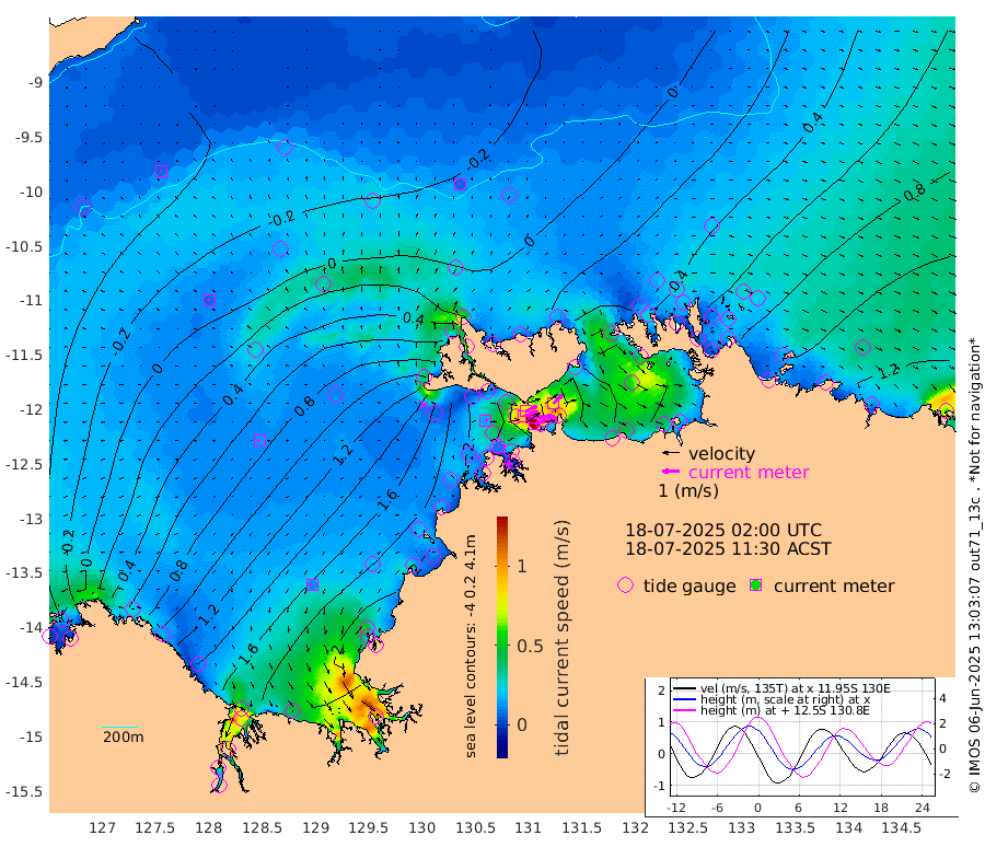 137cm/s 78T +4cm/s rms + 6cm/s 51T. Darwin_C1 52m 88cm/s 91T +4cm/s rms + 7cm/s -161T. Darwin_CW1 22m 89cm/s 73T +4cm/s rms + 8cm/s 61T. Darwin_CW2 34m 76cm/s 45T +3cm/s rms + 9cm/s 98T. Darwin_CW3 22m 140cm/s 89T +5cm/s rms + 7cm/s 88T. Darwin_C3 56m 74cm/s 65T +2cm/s rms + 9cm/s -126T. Darwin_CTbW 22m 8cm/s -16T +9cm/s rms + 2cm/s -110T. NWSLYN 196m 16cm/s 67T +1cm/s rms + 1cm/s -47T. DARBGF 30m 6cm/s -75T +7cm/s rms + 2cm/s -137T. ITFTIS 464m 8cm/s -64T +9cm/s rms + 1cm/s 74T. ITFMHB 146m 12cm/s -128T +4cm/s rms + 1cm/s -134T. ITFJBG 61m 14cm/s -83T +6cm/s rms + 4cm/s 121T. ITFFTB 108m 10cm/s 70T +4cm/s rms + 3cm/s 80T. NRSDAR 19m -43cm Carronade Island -49cm Guy Point -39cm Napier Broome Bay 49cm Lesueur Island 141cm Reveley Island 98cm Rocky Island 206cm Cape Domett 182cm Lacrosse Island 208cm Adolphus Island 157cm Pender Point 139cm Wyndham 22cm The Boxers 51cm Unnamed Shoal -37cm Loxton Shoal 216cm Pelican Island 7cm Calder Shoal -24cm Evans Shoal 235cm Quoin Island 215cm Port Keats 210cm Jones Point 171cm Catfish Island 149cm Cape Scott Offshore 149cm Cape Ford 168cm Anson Bay -4cm Goodrich Bank 154cm Peron Island North 149cm Point Jenny 150cm Native Point 162cm Fish Reef 171cm Tapa Bay 66cm Point Fawcett (Offshore) 192cm Burge Point 165cm Munkunuwa 129cm Beagle A 194cm Parsons Bank 183cm Fenton Patches -11cm Lynedoch Bank 185cm Hancox Shoal Area 194cm Nightcliff 209cm Darwin 178cm Charles Point Patches 159cm Glyde Point 131cm Chambers Bay 131cm Point Stuart 139cm Cape Hotham 121cm Christine Reef 141cm West Alligator Head 128cm East Field Island 119cm Two Hills Bay 90cm Newby Shoal 111cm Camp Point 171cm Medina Inlet South 60cm South Barlow Point 28cm St. Asaph Bay -1cm Cape Van Dieman 11cm Snake Bay 3cm Cache Point -61cm Echo Shoal 23cm Point Jahleel (Off) 68cm Cape Don 30cm Port Essington 31cm Smith Point - West 30cm NW Peacock Island 8cm North Of Jones Shoal 5cm Peacock Island 53cm Point David 36cm D'urville Point 21cm Money Shoal 53cm Copeland Island 73cm Cape Cockburn 48cm One Tree Point 65cm Hogmany Shoal 53cm New Year Island - West 59cm Grant Island 72cm Aurari Bay 89cm Cuthbert Point 74cm North Goulburn Island 90cm Paxie Shoal 115cm Entrance Island 122cm Yabooma Island