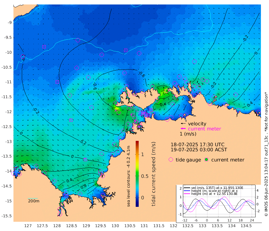 13cm/s -106T +4cm/s rms + 6cm/s 51T. Darwin_C1 52m 5cm/s 89T +4cm/s rms + 7cm/s -161T. Darwin_CW1 22m 21cm/s -112T +4cm/s rms + 8cm/s 61T. Darwin_CW2 34m 13cm/s 11T +3cm/s rms + 9cm/s 98T. Darwin_CW3 22m 8cm/s -108T +5cm/s rms + 7cm/s 88T. Darwin_C3 56m 9cm/s -123T +2cm/s rms + 9cm/s -126T. Darwin_CTbW 22m 6cm/s -16T +9cm/s rms + 2cm/s -110T. NWSLYN 196m 37cm/s -86T +1cm/s rms + 1cm/s -47T. DARBGF 30m 6cm/s -123T +7cm/s rms + 2cm/s -137T. ITFTIS 464m 6cm/s -63T +9cm/s rms + 1cm/s 74T. ITFMHB 146m 26cm/s -34T +4cm/s rms + 1cm/s -134T. ITFJBG 61m 24cm/s -53T +6cm/s rms + 4cm/s 121T. ITFFTB 108m 39cm/s -57T +4cm/s rms + 3cm/s 80T. NRSDAR 19m 71cm Carronade Island 79cm Guy Point 67cm Napier Broome Bay 63cm Lesueur Island 62cm Reveley Island 6cm Rocky Island 101cm Cape Domett 98cm Lacrosse Island 145cm Adolphus Island 178cm Pender Point 214cm Wyndham -27cm The Boxers -51cm Unnamed Shoal -35cm Loxton Shoal 95cm Pelican Island -38cm Calder Shoal -37cm Evans Shoal 184cm Quoin Island 39cm Port Keats 38cm Jones Point 232cm Catfish Island 2cm Cape Scott Offshore -55cm Cape Ford -7cm Anson Bay -47cm Goodrich Bank -19cm Peron Island North -15cm Point Jenny -20cm Native Point -22cm Fish Reef -14cm Tapa Bay -45cm Point Fawcett (Offshore) -12cm Burge Point -43cm Munkunuwa -23cm Beagle A -19cm Parsons Bank -5cm Fenton Patches -40cm Lynedoch Bank 8cm Hancox Shoal Area 6cm Nightcliff -7cm Darwin -16cm Charles Point Patches 41cm Glyde Point 108cm Chambers Bay 113cm Point Stuart 58cm Cape Hotham 102cm Christine Reef 131cm West Alligator Head 160cm East Field Island 71cm Two Hills Bay -23cm Newby Shoal 70cm Camp Point -29cm Medina Inlet South -60cm South Barlow Point -51cm St. Asaph Bay -51cm Cape Van Dieman -58cm Snake Bay -39cm Cache Point -14cm Echo Shoal -28cm Point Jahleel (Off) -3cm Cape Don -32cm Port Essington -29cm Smith Point - West -27cm NW Peacock Island -32cm North Of Jones Shoal -11cm Peacock Island -17cm Point David -29cm D'urville Point -22cm Money Shoal -11cm Copeland Island -15cm Cape Cockburn -18cm One Tree Point -3cm Hogmany Shoal -12cm New Year Island - West -12cm Grant Island 6cm Aurari Bay 24cm Cuthbert Point 0cm North Goulburn Island 35cm Paxie Shoal 51cm Entrance Island 86cm Yabooma Island