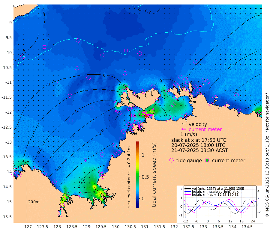 119cm/s 78T +4cm/s rms + 6cm/s 51T. Darwin_C1 52m 101cm/s 91T +4cm/s rms + 7cm/s -161T. Darwin_CW1 22m 56cm/s 74T +4cm/s rms + 8cm/s 61T. Darwin_CW2 34m 62cm/s 45T +3cm/s rms + 9cm/s 98T. Darwin_CW3 22m 92cm/s 90T +5cm/s rms + 7cm/s 88T. Darwin_C3 56m 66cm/s 66T +2cm/s rms + 9cm/s -126T. Darwin_CTbW 22m 3cm/s 16T +9cm/s rms + 2cm/s -110T. NWSLYN 196m 14cm/s 72T +1cm/s rms + 1cm/s -47T. DARBGF 30m 4cm/s -131T +7cm/s rms + 2cm/s -137T. ITFTIS 464m 11cm/s -161T +9cm/s rms + 1cm/s 74T. ITFMHB 146m 8cm/s -146T +4cm/s rms + 1cm/s -134T. ITFJBG 61m 6cm/s -138T +6cm/s rms + 4cm/s 121T. ITFFTB 108m 9cm/s 89T +4cm/s rms + 3cm/s 80T. NRSDAR 19m 33cm Carronade Island 39cm Guy Point 32cm Napier Broome Bay 70cm Lesueur Island 121cm Reveley Island 51cm Rocky Island 167cm Cape Domett 160cm Lacrosse Island 169cm Adolphus Island 146cm Pender Point 147cm Wyndham 22cm The Boxers 9cm Unnamed Shoal -19cm Loxton Shoal 175cm Pelican Island 14cm Calder Shoal -8cm Evans Shoal 195cm Quoin Island 159cm Port Keats 151cm Jones Point 202cm Catfish Island 122cm Cape Scott Offshore 127cm Cape Ford 129cm Anson Bay -7cm Goodrich Bank 112cm Peron Island North 125cm Point Jenny 119cm Native Point 122cm Fish Reef 131cm Tapa Bay 60cm Point Fawcett (Offshore) 139cm Burge Point 112cm Munkunuwa 105cm Beagle A 125cm Parsons Bank 136cm Fenton Patches -16cm Lynedoch Bank 135cm Hancox Shoal Area 147cm Nightcliff 137cm Darwin 124cm Charles Point Patches 118cm Glyde Point 121cm Chambers Bay 116cm Point Stuart 108cm Cape Hotham 120cm Christine Reef 128cm West Alligator Head 127cm East Field Island 97cm Two Hills Bay 72cm Newby Shoal 93cm Camp Point 117cm Medina Inlet South 33cm South Barlow Point 25cm St. Asaph Bay -6cm Cape Van Dieman -10cm Snake Bay 4cm Cache Point -20cm Echo Shoal 14cm Point Jahleel (Off) 47cm Cape Don 10cm Port Essington 15cm Smith Point - West 9cm NW Peacock Island 3cm North Of Jones Shoal 1cm Peacock Island 12cm Point David 12cm D'urville Point 3cm Money Shoal 15cm Copeland Island 25cm Cape Cockburn 13cm One Tree Point 26cm Hogmany Shoal 14cm New Year Island - West 17cm Grant Island 26cm Aurari Bay 43cm Cuthbert Point 28cm North Goulburn Island 49cm Paxie Shoal 58cm Entrance Island 74cm Yabooma Island