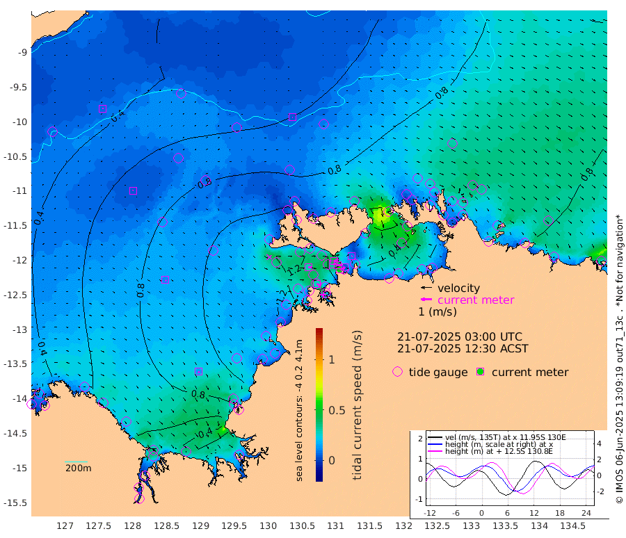 51cm/s 78T +4cm/s rms + 6cm/s 51T. Darwin_C1 52m 5cm/s 78T +4cm/s rms + 7cm/s -161T. Darwin_CW1 22m 33cm/s 75T +4cm/s rms + 8cm/s 61T. Darwin_CW2 34m 8cm/s 60T +3cm/s rms + 9cm/s 98T. Darwin_CW3 22m 40cm/s 89T +5cm/s rms + 7cm/s 88T. Darwin_C3 56m 42cm/s 63T +2cm/s rms + 9cm/s -126T. Darwin_CTbW 22m 4cm/s 120T +9cm/s rms + 2cm/s -110T. NWSLYN 196m 30cm/s 90T +1cm/s rms + 1cm/s -47T. DARBGF 30m 6cm/s 8T +7cm/s rms + 2cm/s -137T. ITFTIS 464m 5cm/s 41T +9cm/s rms + 1cm/s 74T. ITFMHB 146m 14cm/s 150T +4cm/s rms + 1cm/s -134T. ITFJBG 61m 11cm/s 121T +6cm/s rms + 4cm/s 121T. ITFFTB 108m 27cm/s 120T +4cm/s rms + 3cm/s 80T. NRSDAR 19m -3cm Carronade Island -12cm Guy Point 0cm Napier Broome Bay 33cm Lesueur Island 33cm Reveley Island 31cm Rocky Island 31cm Cape Domett 30cm Lacrosse Island 13cm Adolphus Island -32cm Pender Point -42cm Wyndham 64cm The Boxers 89cm Unnamed Shoal 39cm Loxton Shoal 40cm Pelican Island 58cm Calder Shoal 46cm Evans Shoal -5cm Quoin Island 63cm Port Keats 66cm Jones Point 9cm Catfish Island 73cm Cape Scott Offshore 105cm Cape Ford 84cm Anson Bay 60cm Goodrich Bank 93cm Peron Island North 86cm Point Jenny 87cm Native Point 94cm Fish Reef 89cm Tapa Bay 82cm Point Fawcett (Offshore) 91cm Burge Point 84cm Munkunuwa 87cm Beagle A 96cm Parsons Bank 89cm Fenton Patches 54cm Lynedoch Bank 83cm Hancox Shoal Area 81cm Nightcliff 98cm Darwin 99cm Charles Point Patches 62cm Glyde Point 21cm Chambers Bay 20cm Point Stuart 49cm Cape Hotham 19cm Christine Reef 12cm West Alligator Head -6cm East Field Island 41cm Two Hills Bay 88cm Newby Shoal 32cm Camp Point 93cm Medina Inlet South 84cm South Barlow Point 69cm St. Asaph Bay 65cm Cape Van Dieman 73cm Snake Bay 66cm Cache Point 23cm Echo Shoal 63cm Point Jahleel (Off) 67cm Cape Don 74cm Port Essington 75cm Smith Point - West 76cm NW Peacock Island 66cm North Of Jones Shoal 25cm Peacock Island 81cm Point David 80cm D'urville Point 70cm Money Shoal 78cm Copeland Island 105cm Cape Cockburn 80cm One Tree Point 96cm Hogmany Shoal 82cm New Year Island - West 84cm Grant Island 79cm Aurari Bay 83cm Cuthbert Point 84cm North Goulburn Island 67cm Paxie Shoal 74cm Entrance Island 60cm Yabooma Island