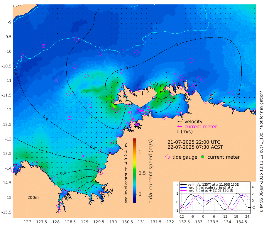 5cm/s -109T +4cm/s rms + 6cm/s 51T. Darwin_C1 52m 39cm/s 88T +4cm/s rms + 7cm/s -161T. Darwin_CW1 22m 3cm/s -124T +4cm/s rms + 8cm/s 61T. Darwin_CW2 34m 23cm/s 29T +3cm/s rms + 9cm/s 98T. Darwin_CW3 22m 21cm/s 97T +5cm/s rms + 7cm/s 88T. Darwin_C3 56m 13cm/s -121T +2cm/s rms + 9cm/s -126T. Darwin_CTbW 22m 4cm/s 34T +9cm/s rms + 2cm/s -110T. NWSLYN 196m 25cm/s -80T +1cm/s rms + 1cm/s -47T. DARBGF 30m 5cm/s -8T +7cm/s rms + 2cm/s -137T. ITFTIS 464m 9cm/s 1T +9cm/s rms + 1cm/s 74T. ITFMHB 146m 24cm/s -28T +4cm/s rms + 1cm/s -134T. ITFJBG 61m 22cm/s -35T +6cm/s rms + 4cm/s 121T. ITFFTB 108m 30cm/s -55T +4cm/s rms + 3cm/s 80T. NRSDAR 19m 111cm Carronade Island 121cm Guy Point 113cm Napier Broome Bay 115cm Lesueur Island 104cm Reveley Island 47cm Rocky Island 146cm Cape Domett 138cm Lacrosse Island 178cm Adolphus Island 207cm Pender Point 227cm Wyndham 43cm The Boxers 10cm Unnamed Shoal 42cm Loxton Shoal 124cm Pelican Island 37cm Calder Shoal 24cm Evans Shoal 203cm Quoin Island 101cm Port Keats 82cm Jones Point 169cm Catfish Island 53cm Cape Scott Offshore 58cm Cape Ford 45cm Anson Bay 14cm Goodrich Bank 37cm Peron Island North 38cm Point Jenny 37cm Native Point 35cm Fish Reef 42cm Tapa Bay 19cm Point Fawcett (Offshore) 54cm Burge Point 20cm Munkunuwa 40cm Beagle A 32cm Parsons Bank 54cm Fenton Patches 18cm Lynedoch Bank 49cm Hancox Shoal Area 55cm Nightcliff 56cm Darwin 55cm Charles Point Patches 66cm Glyde Point 95cm Chambers Bay 90cm Point Stuart 66cm Cape Hotham 93cm Christine Reef 100cm West Alligator Head 123cm East Field Island 66cm Two Hills Bay 57cm Newby Shoal 82cm Camp Point 38cm Medina Inlet South 10cm South Barlow Point 15cm St. Asaph Bay 9cm Cape Van Dieman 7cm Snake Bay 15cm Cache Point 51cm Echo Shoal 17cm Point Jahleel (Off) 26cm Cape Don 7cm Port Essington 4cm Smith Point - West 4cm NW Peacock Island 11cm North Of Jones Shoal 2cm Peacock Island -3cm Point David -1cm D'urville Point 11cm Money Shoal -4cm Copeland Island 0cm Cape Cockburn 2cm One Tree Point 6cm Hogmany Shoal 6cm New Year Island - West 3cm Grant Island -1cm Aurari Bay 6cm Cuthbert Point 3cm North Goulburn Island 20cm Paxie Shoal 16cm Entrance Island 22cm Yabooma Island
