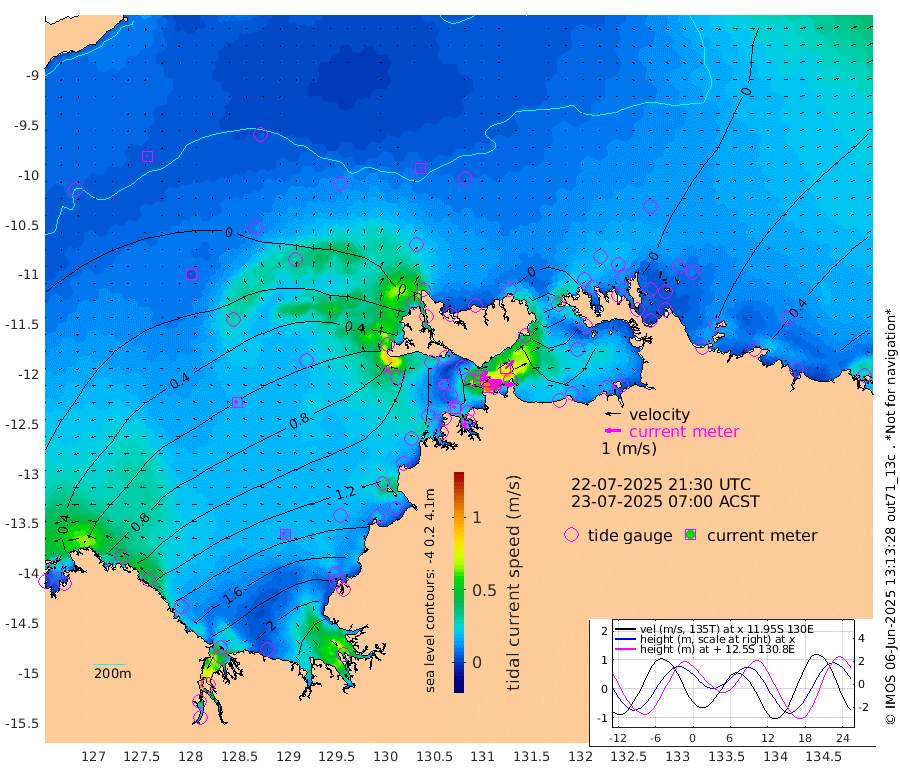 104cm/s 79T +4cm/s rms + 6cm/s 51T. Darwin_C1 52m 118cm/s 91T +4cm/s rms + 7cm/s -161T. Darwin_CW1 22m 59cm/s 71T +4cm/s rms + 8cm/s 61T. Darwin_CW2 34m 73cm/s 44T +3cm/s rms + 9cm/s 98T. Darwin_CW3 22m 103cm/s 90T +5cm/s rms + 7cm/s 88T. Darwin_C3 56m 51cm/s 66T +2cm/s rms + 9cm/s -126T. Darwin_CTbW 22m 6cm/s 14T +9cm/s rms + 2cm/s -110T. NWSLYN 196m 11cm/s -45T +1cm/s rms + 1cm/s -47T. DARBGF 30m 5cm/s -46T +7cm/s rms + 2cm/s -137T. ITFTIS 464m 5cm/s -56T +9cm/s rms + 1cm/s 74T. ITFMHB 146m 15cm/s -56T +4cm/s rms + 1cm/s -134T. ITFJBG 61m 19cm/s -54T +6cm/s rms + 4cm/s 121T. ITFFTB 108m 22cm/s -45T +4cm/s rms + 3cm/s 80T. NRSDAR 19m 72cm Carronade Island 81cm Guy Point 75cm Napier Broome Bay 124cm Lesueur Island 177cm Reveley Island 88cm Rocky Island 251cm Cape Domett 234cm Lacrosse Island 272cm Adolphus Island 272cm Pender Point 274cm Wyndham 43cm The Boxers 21cm Unnamed Shoal 5cm Loxton Shoal 242cm Pelican Island 31cm Calder Shoal 0cm Evans Shoal 314cm Quoin Island 221cm Port Keats 203cm Jones Point 257cm Catfish Island 143cm Cape Scott Offshore 163cm Cape Ford 147cm Anson Bay 0cm Goodrich Bank 127cm Peron Island North 132cm Point Jenny 129cm Native Point 134cm Fish Reef 147cm Tapa Bay 61cm Point Fawcett (Offshore) 168cm Burge Point 124cm Munkunuwa 117cm Beagle A 143cm Parsons Bank 161cm Fenton Patches -4cm Lynedoch Bank 155cm Hancox Shoal Area 169cm Nightcliff 172cm Darwin 156cm Charles Point Patches 150cm Glyde Point 159cm Chambers Bay 154cm Point Stuart 137cm Cape Hotham 153cm Christine Reef 170cm West Alligator Head 181cm East Field Island 122cm Two Hills Bay 96cm Newby Shoal 133cm Camp Point 139cm Medina Inlet South 38cm South Barlow Point 28cm St. Asaph Bay -3cm Cape Van Dieman -3cm Snake Bay 6cm Cache Point 2cm Echo Shoal 18cm Point Jahleel (Off) 54cm Cape Don 10cm Port Essington 8cm Smith Point - West 4cm NW Peacock Island 2cm North Of Jones Shoal 0cm Peacock Island 6cm Point David 3cm D'urville Point 4cm Money Shoal 7cm Copeland Island 15cm Cape Cockburn 10cm One Tree Point 19cm Hogmany Shoal 13cm New Year Island - West 14cm Grant Island 18cm Aurari Bay 33cm Cuthbert Point 23cm North Goulburn Island 52cm Paxie Shoal 55cm Entrance Island 68cm Yabooma Island