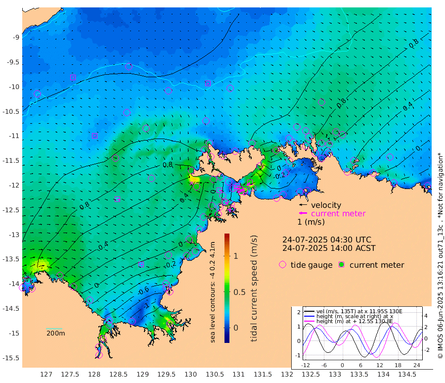 51cm/s -101T +4cm/s rms + 6cm/s 51T. Darwin_C1 52m 64cm/s -90T +4cm/s rms + 7cm/s -161T. Darwin_CW1 22m 26cm/s -110T +4cm/s rms + 8cm/s 61T. Darwin_CW2 34m 55cm/s -138T +3cm/s rms + 9cm/s 98T. Darwin_CW3 22m 51cm/s -92T +5cm/s rms + 7cm/s 88T. Darwin_C3 56m 11cm/s -110T +2cm/s rms + 9cm/s -126T. Darwin_CTbW 22m 13cm/s 144T +9cm/s rms + 2cm/s -110T. NWSLYN 196m 28cm/s 100T +1cm/s rms + 1cm/s -47T. DARBGF 30m 11cm/s 41T +7cm/s rms + 2cm/s -137T. ITFTIS 464m 12cm/s 71T +9cm/s rms + 1cm/s 74T. ITFMHB 146m 18cm/s 106T +4cm/s rms + 1cm/s -134T. ITFJBG 61m 26cm/s 105T +6cm/s rms + 4cm/s 121T. ITFFTB 108m 29cm/s 135T +4cm/s rms + 3cm/s 80T. NRSDAR 19m 60cm Carronade Island 56cm Guy Point 68cm Napier Broome Bay 21cm Lesueur Island -62cm Reveley Island -37cm Rocky Island -120cm Cape Domett -101cm Lacrosse Island -151cm Adolphus Island -152cm Pender Point -147cm Wyndham 80cm The Boxers 88cm Unnamed Shoal 98cm Loxton Shoal -126cm Pelican Island 86cm Calder Shoal 90cm Evans Shoal -191cm Quoin Island -90cm Port Keats -92cm Jones Point -120cm Catfish Island -18cm Cape Scott Offshore -7cm Cape Ford -19cm Anson Bay 89cm Goodrich Bank -5cm Peron Island North -5cm Point Jenny -3cm Native Point -11cm Fish Reef -21cm Tapa Bay 60cm Point Fawcett (Offshore) -36cm Burge Point -24cm Munkunuwa 10cm Beagle A -35cm Parsons Bank -35cm Fenton Patches 88cm Lynedoch Bank -43cm Hancox Shoal Area -44cm Nightcliff -44cm Darwin -16cm Charles Point Patches -49cm Glyde Point -77cm Chambers Bay -83cm Point Stuart -50cm Cape Hotham -68cm Christine Reef -100cm West Alligator Head -114cm East Field Island -43cm Two Hills Bay 55cm Newby Shoal -44cm Camp Point -15cm Medina Inlet South 66cm South Barlow Point 75cm St. Asaph Bay 92cm Cape Van Dieman 94cm Snake Bay 89cm Cache Point 97cm Echo Shoal 69cm Point Jahleel (Off) 37cm Cape Don 74cm Port Essington 73cm Smith Point - West 75cm NW Peacock Island 87cm North Of Jones Shoal 30cm Peacock Island 62cm Point David 75cm D'urville Point 79cm Money Shoal 56cm Copeland Island 76cm Cape Cockburn 67cm One Tree Point 69cm Hogmany Shoal 66cm New Year Island - West 61cm Grant Island 40cm Aurari Bay 30cm Cuthbert Point 47cm North Goulburn Island 18cm Paxie Shoal -3cm Entrance Island -28cm Yabooma Island
