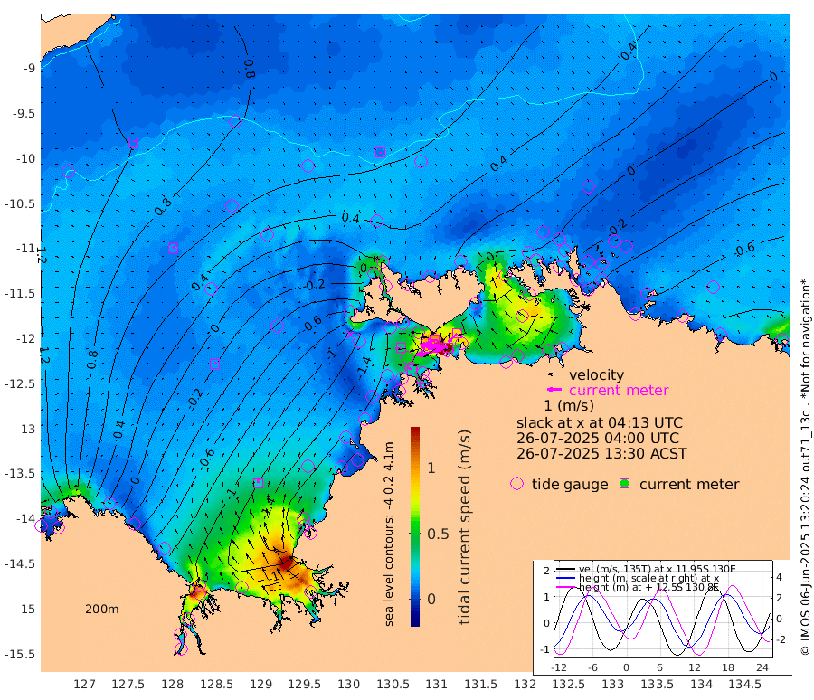 185cm/s -101T +4cm/s rms + 6cm/s 51T. Darwin_C1 52m 140cm/s -90T +4cm/s rms + 7cm/s -161T. Darwin_CW1 22m 87cm/s -107T +4cm/s rms + 8cm/s 61T. Darwin_CW2 34m 85cm/s -135T +3cm/s rms + 9cm/s 98T. Darwin_CW3 22m 121cm/s -91T +5cm/s rms + 7cm/s 88T. Darwin_C3 56m 101cm/s -116T +2cm/s rms + 9cm/s -126T. Darwin_CTbW 22m 9cm/s 147T +9cm/s rms + 2cm/s -110T. NWSLYN 196m 35cm/s -95T +1cm/s rms + 1cm/s -47T. DARBGF 30m 9cm/s 43T +7cm/s rms + 2cm/s -137T. ITFTIS 464m 13cm/s 38T +9cm/s rms + 1cm/s 74T. ITFMHB 146m 28cm/s -2T +4cm/s rms + 1cm/s -134T. ITFJBG 61m 14cm/s 21T +6cm/s rms + 4cm/s 121T. ITFFTB 108m 33cm/s -72T +4cm/s rms + 3cm/s 80T. NRSDAR 19m 144cm Carronade Island 150cm Guy Point 158cm Napier Broome Bay 36cm Lesueur Island -85cm Reveley Island -43cm Rocky Island -146cm Cape Domett -127cm Lacrosse Island -142cm Adolphus Island -46cm Pender Point -10cm Wyndham 36cm The Boxers 14cm Unnamed Shoal 97cm Loxton Shoal -186cm Pelican Island 44cm Calder Shoal 64cm Evans Shoal -165cm Quoin Island -193cm Port Keats -198cm Jones Point -106cm Catfish Island -135cm Cape Scott Offshore -172cm Cape Ford -160cm Anson Bay 41cm Goodrich Bank -145cm Peron Island North -142cm Point Jenny -139cm Native Point -163cm Fish Reef -165cm Tapa Bay -51cm Point Fawcett (Offshore) -182cm Burge Point -170cm Munkunuwa -121cm Beagle A -186cm Parsons Bank -178cm Fenton Patches 55cm Lynedoch Bank -176cm Hancox Shoal Area -185cm Nightcliff -197cm Darwin -169cm Charles Point Patches -131cm Glyde Point -86cm Chambers Bay -84cm Point Stuart -108cm Cape Hotham -75cm Christine Reef -90cm West Alligator Head -70cm East Field Island -76cm Two Hills Bay -37cm Newby Shoal -67cm Camp Point -164cm Medina Inlet South -39cm South Barlow Point -7cm St. Asaph Bay 35cm Cape Van Dieman 32cm Snake Bay 33cm Cache Point 117cm Echo Shoal 12cm Point Jahleel (Off) -31cm Cape Don 3cm Port Essington -1cm Smith Point - West 6cm NW Peacock Island 26cm North Of Jones Shoal 7cm Peacock Island -12cm Point David -3cm D'urville Point 18cm Money Shoal -18cm Copeland Island -24cm Cape Cockburn -8cm One Tree Point -12cm Hogmany Shoal -5cm New Year Island - West -12cm Grant Island -38cm Aurari Bay -47cm Cuthbert Point -32cm North Goulburn Island -41cm Paxie Shoal -65cm Entrance Island -81cm Yabooma Island