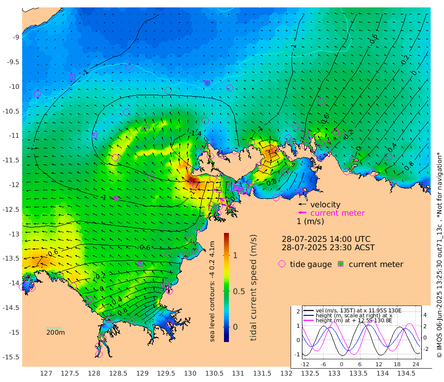 36cm/s -105T +4cm/s rms + 6cm/s 51T. Darwin_C1 52m 25cm/s -83T +4cm/s rms + 7cm/s -161T. Darwin_CW1 22m 26cm/s -109T +4cm/s rms + 8cm/s 61T. Darwin_CW2 34m 11cm/s -3T +3cm/s rms + 9cm/s 98T. Darwin_CW3 22m 14cm/s -99T +5cm/s rms + 7cm/s 88T. Darwin_C3 56m 26cm/s -118T +2cm/s rms + 9cm/s -126T. Darwin_CTbW 22m 10cm/s -30T +9cm/s rms + 2cm/s -110T. NWSLYN 196m 66cm/s -87T +1cm/s rms + 1cm/s -47T. DARBGF 30m 14cm/s -120T +7cm/s rms + 2cm/s -137T. ITFTIS 464m 18cm/s -53T +9cm/s rms + 1cm/s 74T. ITFMHB 146m 41cm/s -39T +4cm/s rms + 1cm/s -134T. ITFJBG 61m 48cm/s -59T +6cm/s rms + 4cm/s 121T. ITFFTB 108m 72cm/s -55T +4cm/s rms + 3cm/s 80T. NRSDAR 19m -10cm Carronade Island -6cm Guy Point -18cm Napier Broome Bay -4cm Lesueur Island 41cm Reveley Island -12cm Rocky Island 108cm Cape Domett 87cm Lacrosse Island 170cm Adolphus Island 220cm Pender Point 254cm Wyndham -106cm The Boxers -115cm Unnamed Shoal -108cm Loxton Shoal 103cm Pelican Island -118cm Calder Shoal -99cm Evans Shoal 244cm Quoin Island 24cm Port Keats 37cm Jones Point 270cm Catfish Island -46cm Cape Scott Offshore -115cm Cape Ford -56cm Anson Bay -109cm Goodrich Bank -55cm Peron Island North -80cm Point Jenny -86cm Native Point -68cm Fish Reef -70cm Tapa Bay -115cm Point Fawcett (Offshore) -53cm Burge Point -80cm Munkunuwa -97cm Beagle A -38cm Parsons Bank -59cm Fenton Patches -93cm Lynedoch Bank -21cm Hancox Shoal Area -41cm Nightcliff -29cm Darwin -57cm Charles Point Patches 34cm Glyde Point 124cm Chambers Bay 151cm Point Stuart 67cm Cape Hotham 105cm Christine Reef 175cm West Alligator Head 211cm East Field Island 88cm Two Hills Bay -110cm Newby Shoal 71cm Camp Point -70cm Medina Inlet South -122cm South Barlow Point -124cm St. Asaph Bay -114cm Cape Van Dieman -114cm Snake Bay -99cm Cache Point -94cm Echo Shoal -76cm Point Jahleel (Off) -26cm Cape Don -63cm Port Essington -66cm Smith Point - West -58cm NW Peacock Island -72cm North Of Jones Shoal -23cm Peacock Island -20cm Point David -58cm D'urville Point -49cm Money Shoal -11cm Copeland Island -12cm Cape Cockburn -24cm One Tree Point -2cm Hogmany Shoal -24cm New Year Island - West -17cm Grant Island 16cm Aurari Bay 49cm Cuthbert Point 14cm North Goulburn Island 67cm Paxie Shoal 100cm Entrance Island 162cm Yabooma Island