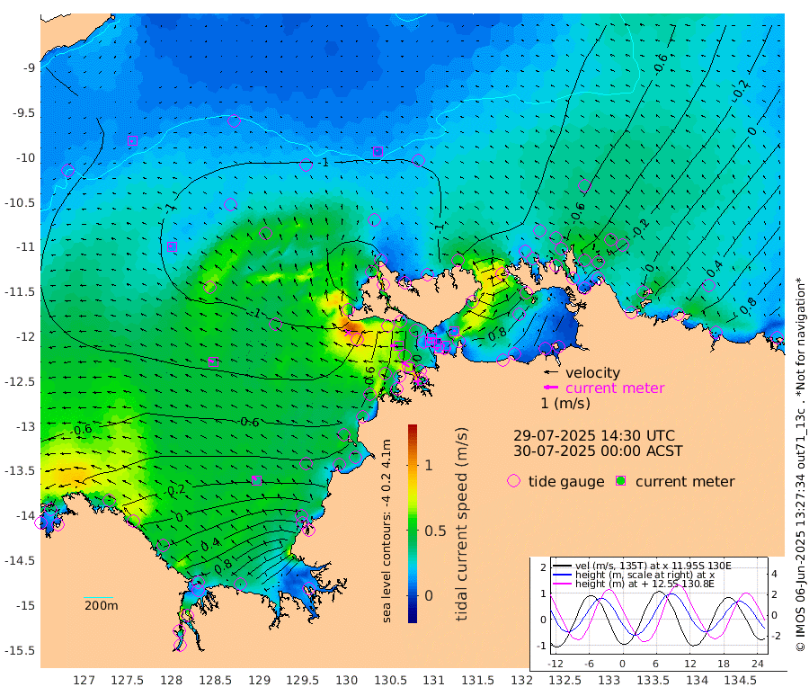 17cm/s -110T +4cm/s rms + 6cm/s 51T. Darwin_C1 52m 11cm/s -78T +4cm/s rms + 7cm/s -161T. Darwin_CW1 22m 15cm/s -109T +4cm/s rms + 8cm/s 61T. Darwin_CW2 34m 13cm/s 20T +3cm/s rms + 9cm/s 98T. Darwin_CW3 22m 3cm/s 137T +5cm/s rms + 7cm/s 88T. Darwin_C3 56m 15cm/s -119T +2cm/s rms + 9cm/s -126T. Darwin_CTbW 22m 8cm/s -27T +9cm/s rms + 2cm/s -110T. NWSLYN 196m 56cm/s -86T +1cm/s rms + 1cm/s -47T. DARBGF 30m 13cm/s -122T +7cm/s rms + 2cm/s -137T. ITFTIS 464m 15cm/s -61T +9cm/s rms + 1cm/s 74T. ITFMHB 146m 36cm/s -40T +4cm/s rms + 1cm/s -134T. ITFJBG 61m 42cm/s -60T +6cm/s rms + 4cm/s 121T. ITFFTB 108m 65cm/s -55T +4cm/s rms + 3cm/s 80T. NRSDAR 19m 1cm Carronade Island 6cm Guy Point -5cm Napier Broome Bay 10cm Lesueur Island 51cm Reveley Island -6cm Rocky Island 113cm Cape Domett 97cm Lacrosse Island 166cm Adolphus Island 212cm Pender Point 245cm Wyndham -87cm The Boxers -96cm Unnamed Shoal -93cm Loxton Shoal 110cm Pelican Island -98cm Calder Shoal -83cm Evans Shoal 242cm Quoin Island 34cm Port Keats 47cm Jones Point 288cm Catfish Island -24cm Cape Scott Offshore -99cm Cape Ford -33cm Anson Bay -94cm Goodrich Bank -34cm Peron Island North -60cm Point Jenny -66cm Native Point -47cm Fish Reef -50cm Tapa Bay -91cm Point Fawcett (Offshore) -37cm Burge Point -60cm Munkunuwa -78cm Beagle A -23cm Parsons Bank -44cm Fenton Patches -81cm Lynedoch Bank -7cm Hancox Shoal Area -24cm Nightcliff -14cm Darwin -39cm Charles Point Patches 42cm Glyde Point 125cm Chambers Bay 150cm Point Stuart 74cm Cape Hotham 105cm Christine Reef 174cm West Alligator Head 205cm East Field Island 93cm Two Hills Bay -91cm Newby Shoal 73cm Camp Point -50cm Medina Inlet South -103cm South Barlow Point -104cm St. Asaph Bay -99cm Cape Van Dieman -98cm Snake Bay -84cm Cache Point -79cm Echo Shoal -62cm Point Jahleel (Off) -15cm Cape Don -52cm Port Essington -54cm Smith Point - West -48cm NW Peacock Island -58cm North Of Jones Shoal -18cm Peacock Island -14cm Point David -48cm D'urville Point -41cm Money Shoal -6cm Copeland Island -5cm Cape Cockburn -17cm One Tree Point 4cm Hogmany Shoal -18cm New Year Island - West -11cm Grant Island 19cm Aurari Bay 48cm Cuthbert Point 18cm North Goulburn Island 66cm Paxie Shoal 94cm Entrance Island 151cm Yabooma Island