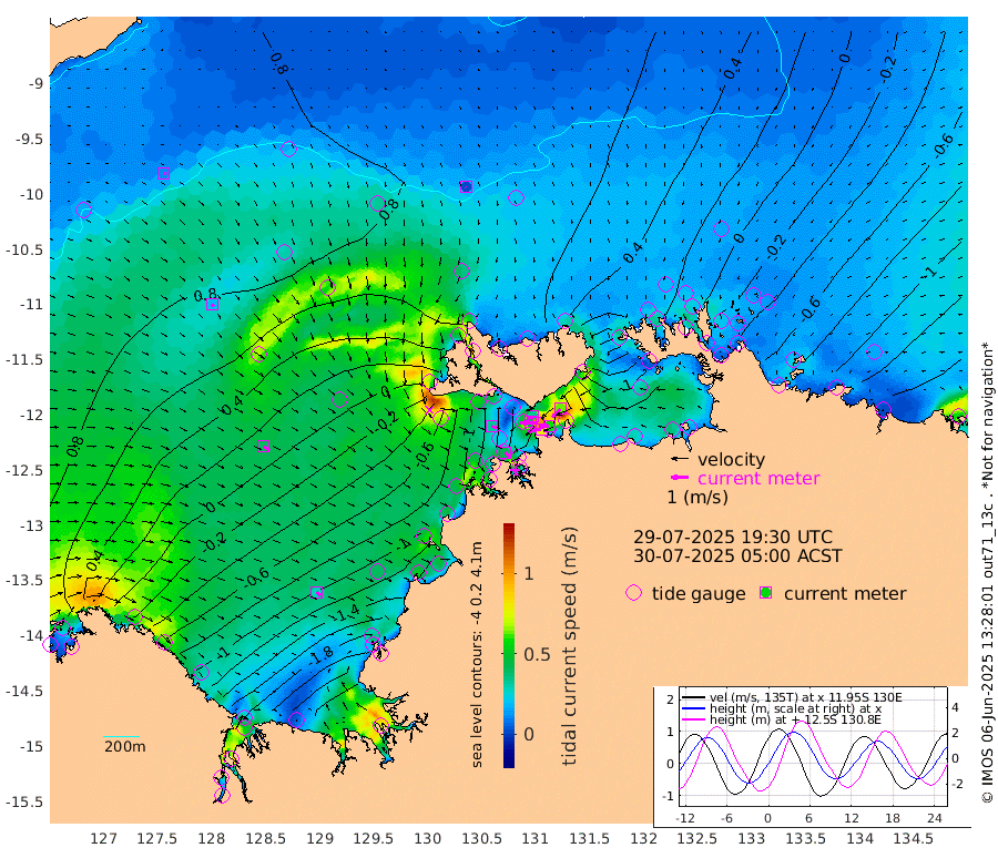 79cm/s -100T +4cm/s rms + 6cm/s 51T. Darwin_C1 52m 59cm/s -92T +4cm/s rms + 7cm/s -161T. Darwin_CW1 22m 44cm/s -106T +4cm/s rms + 8cm/s 61T. Darwin_CW2 34m 64cm/s -136T +3cm/s rms + 9cm/s 98T. Darwin_CW3 22m 100cm/s -91T +5cm/s rms + 7cm/s 88T. Darwin_C3 56m 32cm/s -116T +2cm/s rms + 9cm/s -126T. Darwin_CTbW 22m 3cm/s 170T +9cm/s rms + 2cm/s -110T. NWSLYN 196m 33cm/s 103T +1cm/s rms + 1cm/s -47T. DARBGF 30m 11cm/s 92T +7cm/s rms + 2cm/s -137T. ITFTIS 464m 18cm/s 134T +9cm/s rms + 1cm/s 74T. ITFMHB 146m 29cm/s 123T +4cm/s rms + 1cm/s -134T. ITFJBG 61m 40cm/s 119T +6cm/s rms + 4cm/s 121T. ITFFTB 108m 43cm/s 134T +4cm/s rms + 3cm/s 80T. NRSDAR 19m 46cm Carronade Island 44cm Guy Point 41cm Napier Broome Bay -24cm Lesueur Island -121cm Reveley Island -52cm Rocky Island -208cm Cape Domett -177cm Lacrosse Island -236cm Adolphus Island -254cm Pender Point -256cm Wyndham 45cm The Boxers 29cm Unnamed Shoal 86cm Loxton Shoal -220cm Pelican Island 69cm Calder Shoal 74cm Evans Shoal -327cm Quoin Island -161cm Port Keats -173cm Jones Point -334cm Catfish Island -84cm Cape Scott Offshore -21cm Cape Ford -93cm Anson Bay 67cm Goodrich Bank -72cm Peron Island North -48cm Point Jenny -46cm Native Point -66cm Fish Reef -77cm Tapa Bay 20cm Point Fawcett (Offshore) -87cm Burge Point -65cm Munkunuwa -12cm Beagle A -103cm Parsons Bank -71cm Fenton Patches 61cm Lynedoch Bank -110cm Hancox Shoal Area -96cm Nightcliff -127cm Darwin -95cm Charles Point Patches -125cm Glyde Point -159cm Chambers Bay -175cm Point Stuart -128cm Cape Hotham -131cm Christine Reef -195cm West Alligator Head -206cm East Field Island -129cm Two Hills Bay 27cm Newby Shoal -117cm Camp Point -77cm Medina Inlet South 34cm South Barlow Point 54cm St. Asaph Bay 68cm Cape Van Dieman 60cm Snake Bay 59cm Cache Point 96cm Echo Shoal 33cm Point Jahleel (Off) -29cm Cape Don 16cm Port Essington 23cm Smith Point - West 20cm NW Peacock Island 38cm North Of Jones Shoal 10cm Peacock Island -23cm Point David 16cm D'urville Point 15cm Money Shoal -27cm Copeland Island -32cm Cape Cockburn -18cm One Tree Point -46cm Hogmany Shoal -18cm New Year Island - West -26cm Grant Island -54cm Aurari Bay -85cm Cuthbert Point -55cm North Goulburn Island -109cm Paxie Shoal -129cm Entrance Island -171cm Yabooma Island