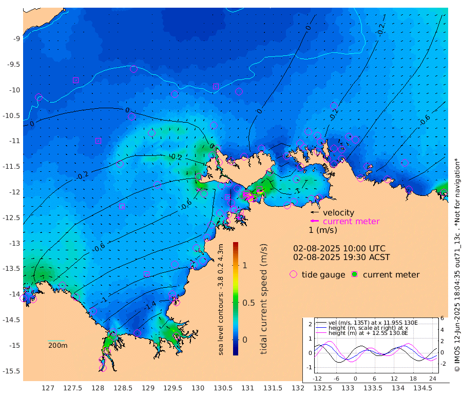 69cm/s -101T +4cm/s rms + 6cm/s 51T. Darwin_C1 52m 61cm/s -92T +4cm/s rms + 7cm/s -161T. Darwin_CW1 22m 31cm/s -104T +4cm/s rms + 8cm/s 61T. Darwin_CW2 34m 47cm/s -138T +3cm/s rms + 9cm/s 98T. Darwin_CW3 22m 74cm/s -89T +5cm/s rms + 7cm/s 88T. Darwin_C3 56m 41cm/s -115T +2cm/s rms + 9cm/s -126T. Darwin_CTbW 22m 6cm/s 180T +9cm/s rms + 2cm/s -110T. NWSLYN 196m 12cm/s 114T +1cm/s rms + 1cm/s -47T. DARBGF 30m 5cm/s 98T +7cm/s rms + 2cm/s -137T. ITFTIS 464m 6cm/s 133T +9cm/s rms + 1cm/s 74T. ITFMHB 146m 17cm/s 132T +4cm/s rms + 1cm/s -134T. ITFJBG 61m 18cm/s 124T +6cm/s rms + 4cm/s 121T. ITFFTB 108m 21cm/s 134T +4cm/s rms + 3cm/s 80T. NRSDAR 19m -61cm Carronade Island -60cm Guy Point -67cm Napier Broome Bay -98cm Lesueur Island -115cm Reveley Island -60cm Rocky Island -168cm Cape Domett -164cm Lacrosse Island -193cm Adolphus Island -195cm Pender Point -218cm Wyndham -27cm The Boxers -29cm Unnamed Shoal 2cm Loxton Shoal -163cm Pelican Island -15cm Calder Shoal 2cm Evans Shoal -251cm Quoin Island -126cm Port Keats -123cm Jones Point -317cm Catfish Island -92cm Cape Scott Offshore -9cm Cape Ford -93cm Anson Bay 6cm Goodrich Bank -84cm Peron Island North -65cm Point Jenny -61cm Native Point -78cm Fish Reef -74cm Tapa Bay -34cm Point Fawcett (Offshore) -83cm Burge Point -53cm Munkunuwa -56cm Beagle A -80cm Parsons Bank -81cm Fenton Patches 1cm Lynedoch Bank -90cm Hancox Shoal Area -98cm Nightcliff -101cm Darwin -85cm Charles Point Patches -109cm Glyde Point -139cm Chambers Bay -147cm Point Stuart -116cm Cape Hotham -122cm Christine Reef -163cm West Alligator Head -175cm East Field Island -120cm Two Hills Bay -53cm Newby Shoal -105cm Camp Point -75cm Medina Inlet South -14cm South Barlow Point -7cm St. Asaph Bay 7cm Cape Van Dieman 0cm Snake Bay -6cm Cache Point -4cm Echo Shoal -19cm Point Jahleel (Off) -53cm Cape Don -20cm Port Essington -20cm Smith Point - West -20cm NW Peacock Island -19cm North Of Jones Shoal -8cm Peacock Island -33cm Point David -21cm D'urville Point -20cm Money Shoal -35cm Copeland Island -55cm Cape Cockburn -38cm One Tree Point -47cm Hogmany Shoal -41cm New Year Island - West -40cm Grant Island -58cm Aurari Bay -68cm Cuthbert Point -54cm North Goulburn Island -78cm Paxie Shoal -86cm Entrance Island -108cm Yabooma Island