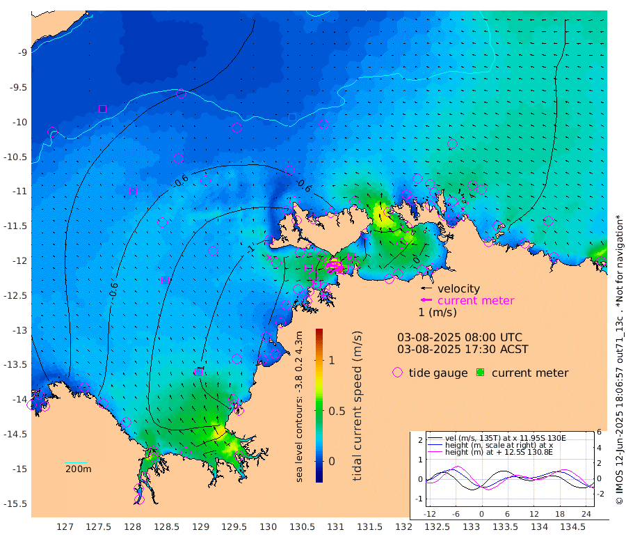 114cm/s -102T +4cm/s rms + 6cm/s 51T. Darwin_C1 52m 62cm/s -90T +4cm/s rms + 7cm/s -161T. Darwin_CW1 22m 67cm/s -106T +4cm/s rms + 8cm/s 61T. Darwin_CW2 34m 44cm/s -130T +3cm/s rms + 9cm/s 98T. Darwin_CW3 22m 94cm/s -91T +5cm/s rms + 7cm/s 88T. Darwin_C3 56m 74cm/s -115T +2cm/s rms + 9cm/s -126T. Darwin_CTbW 22m 4cm/s -93T +9cm/s rms + 2cm/s -110T. NWSLYN 196m 34cm/s -94T +1cm/s rms + 1cm/s -47T. DARBGF 30m 0cm/s -70T +7cm/s rms + 2cm/s -137T. ITFTIS 464m 10cm/s -2T +9cm/s rms + 1cm/s 74T. ITFMHB 146m 13cm/s -8T +4cm/s rms + 1cm/s -134T. ITFJBG 61m 11cm/s -32T +6cm/s rms + 4cm/s 121T. ITFFTB 108m 28cm/s -68T +4cm/s rms + 3cm/s 80T. NRSDAR 19m -15cm Carronade Island -21cm Guy Point -16cm Napier Broome Bay -68cm Lesueur Island -95cm Reveley Island -44cm Rocky Island -115cm Cape Domett -112cm Lacrosse Island -108cm Adolphus Island -56cm Pender Point -43cm Wyndham -65cm The Boxers -70cm Unnamed Shoal -42cm Loxton Shoal -126cm Pelican Island -68cm Calder Shoal -45cm Evans Shoal -110cm Quoin Island -133cm Port Keats -116cm Jones Point -64cm Catfish Island -129cm Cape Scott Offshore -114cm Cape Ford -139cm Anson Bay -51cm Goodrich Bank -127cm Peron Island North -125cm Point Jenny -126cm Native Point -121cm Fish Reef -138cm Tapa Bay -97cm Point Fawcett (Offshore) -130cm Burge Point -126cm Munkunuwa -114cm Beagle A -132cm Parsons Bank -129cm Fenton Patches -42cm Lynedoch Bank -133cm Hancox Shoal Area -146cm Nightcliff -140cm Darwin -137cm Charles Point Patches -92cm Glyde Point -60cm Chambers Bay -41cm Point Stuart -74cm Cape Hotham -59cm Christine Reef -41cm West Alligator Head -22cm East Field Island -57cm Two Hills Bay -99cm Newby Shoal -55cm Camp Point -131cm Medina Inlet South -89cm South Barlow Point -77cm St. Asaph Bay -53cm Cape Van Dieman -60cm Snake Bay -54cm Cache Point -29cm Echo Shoal -58cm Point Jahleel (Off) -63cm Cape Don -53cm Port Essington -60cm Smith Point - West -55cm NW Peacock Island -54cm North Of Jones Shoal -19cm Peacock Island -52cm Point David -58cm D'urville Point -44cm Money Shoal -50cm Copeland Island -65cm Cape Cockburn -52cm One Tree Point -61cm Hogmany Shoal -54cm New Year Island - West -55cm Grant Island -49cm Aurari Bay -46cm Cuthbert Point -53cm North Goulburn Island -44cm Paxie Shoal -45cm Entrance Island -34cm Yabooma Island